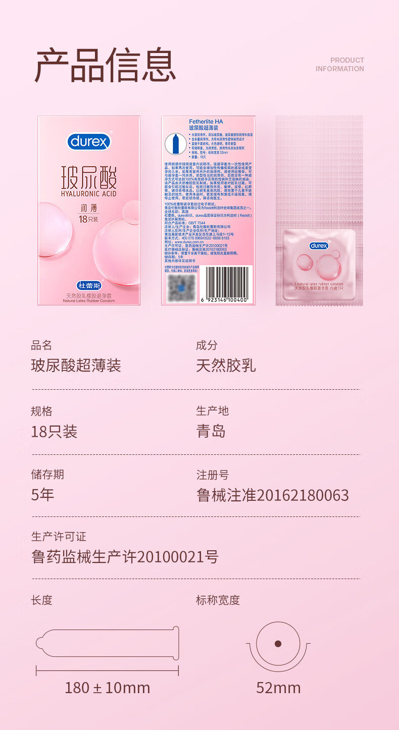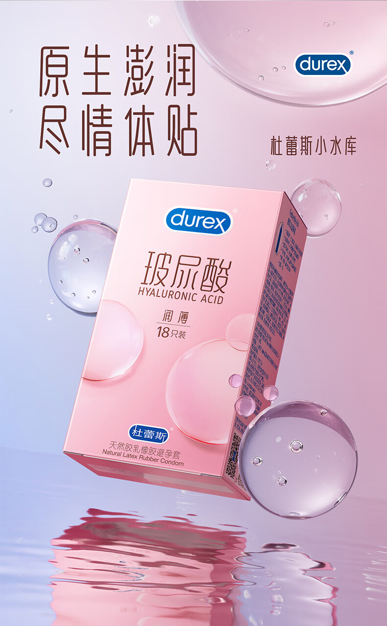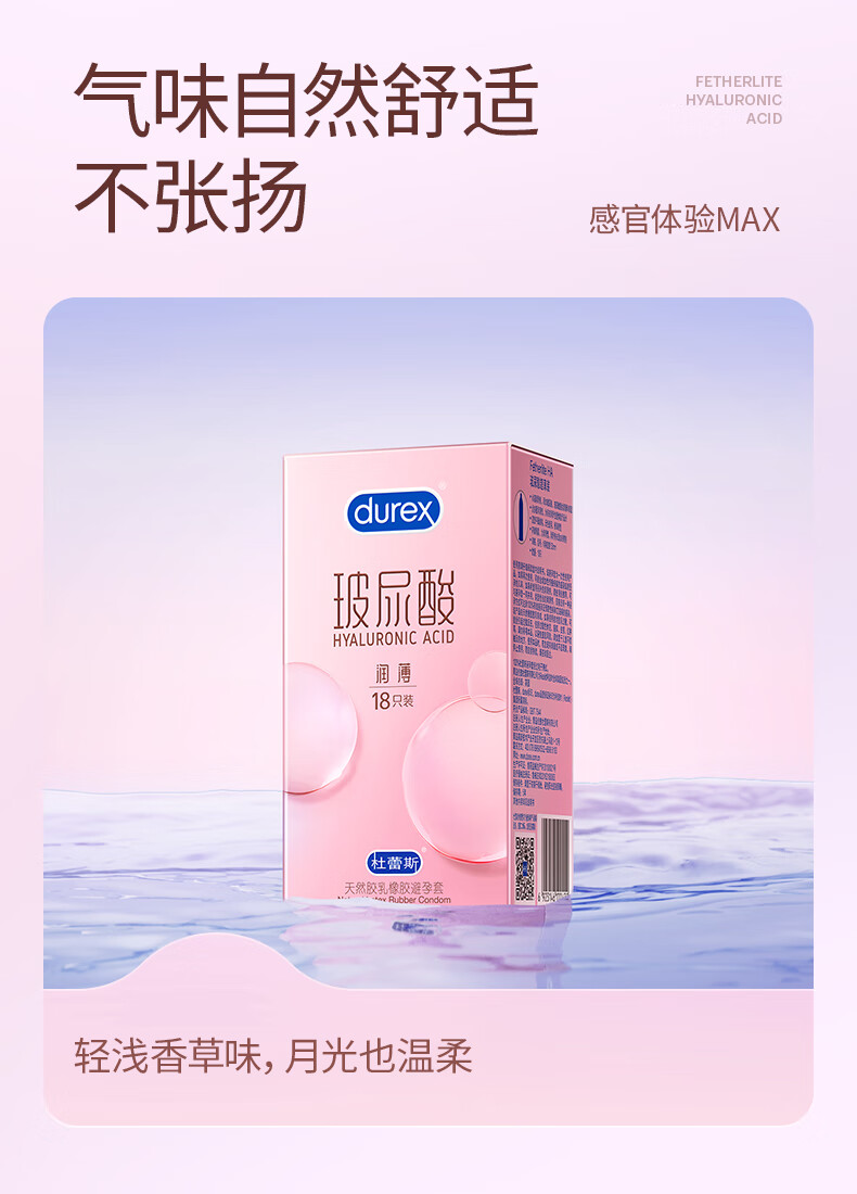 杜蕾斯(durex)玻尿酸避孕套小水库超薄情趣延时安全套001003男女用成人计生用品 玻尿酸纯享【18只】超薄玻尿酸18