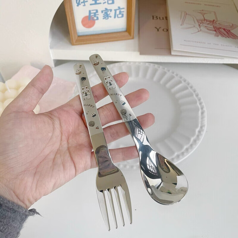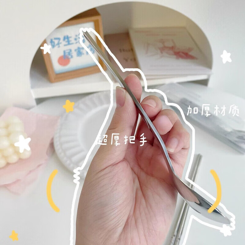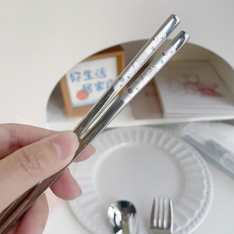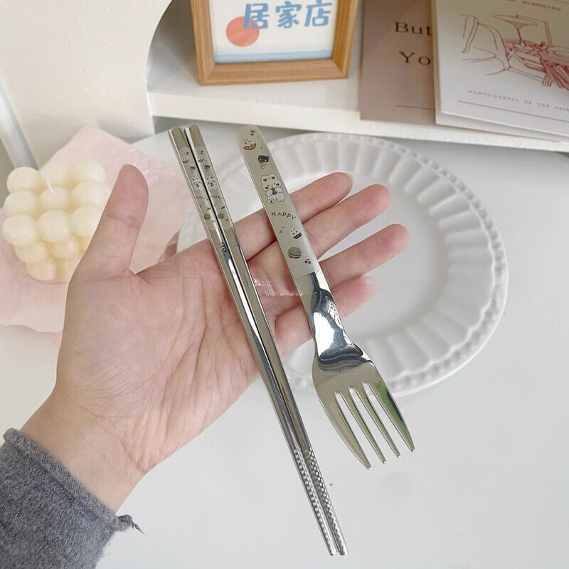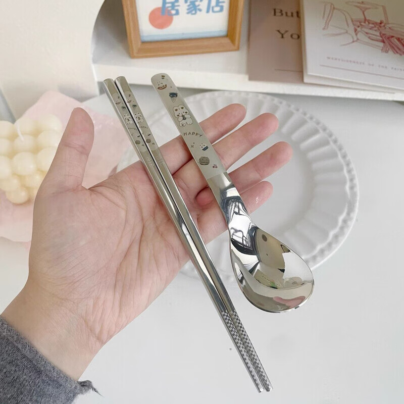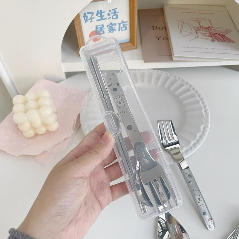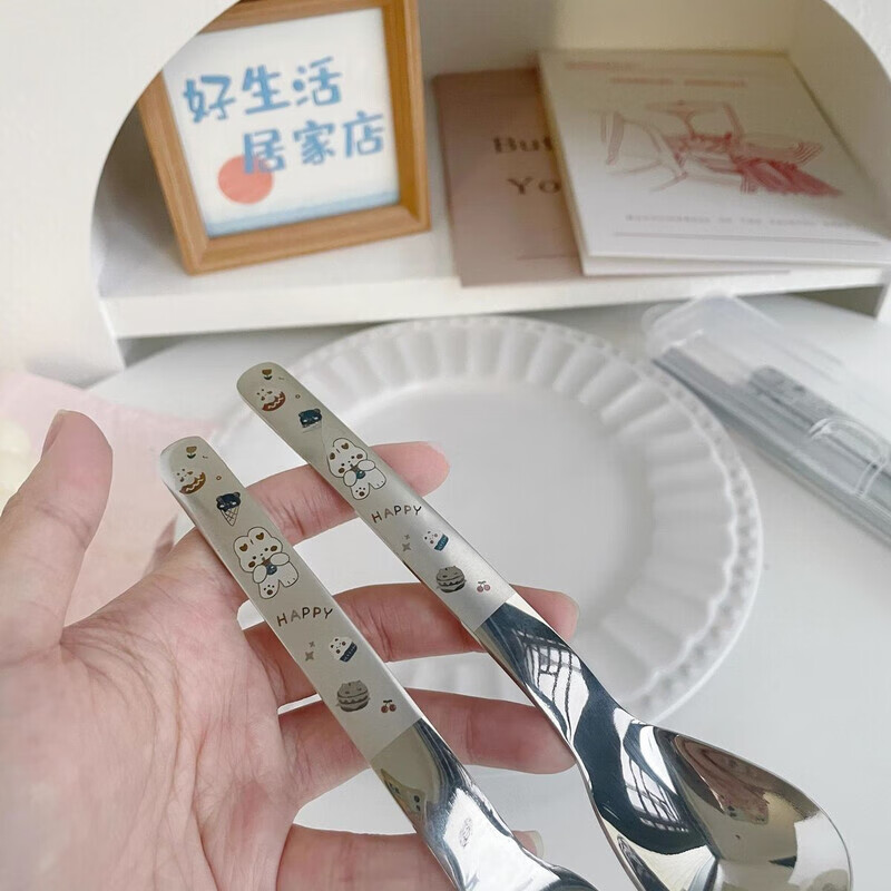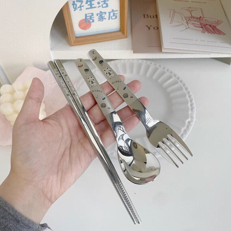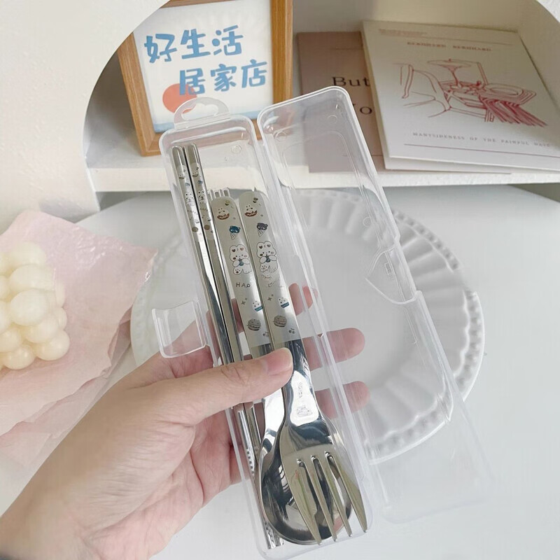 LZJV316不锈钢勺子叉子筷子便携ins餐具高颜值学生收纳盒套装三件套 萌兔兔勺子 一件套