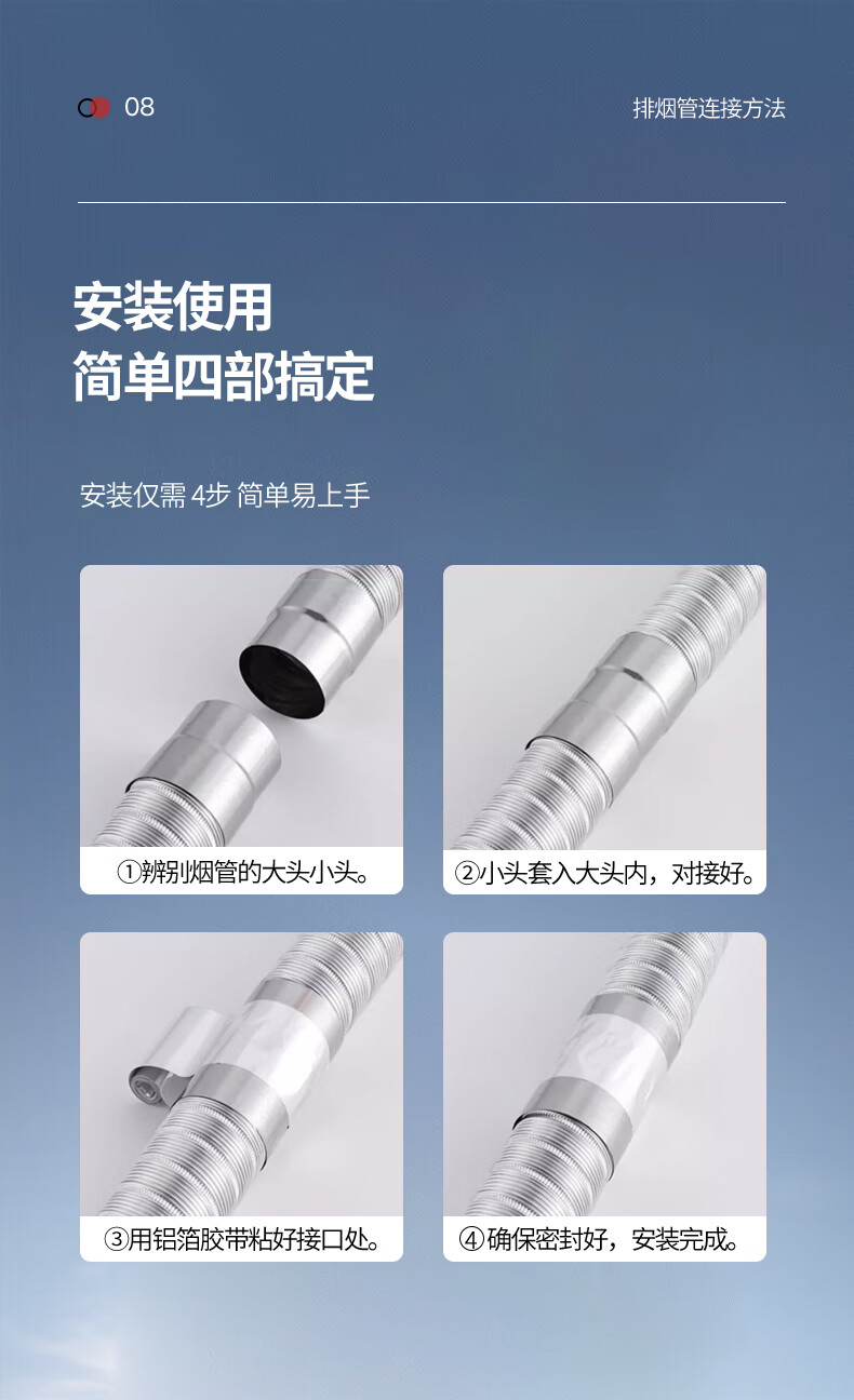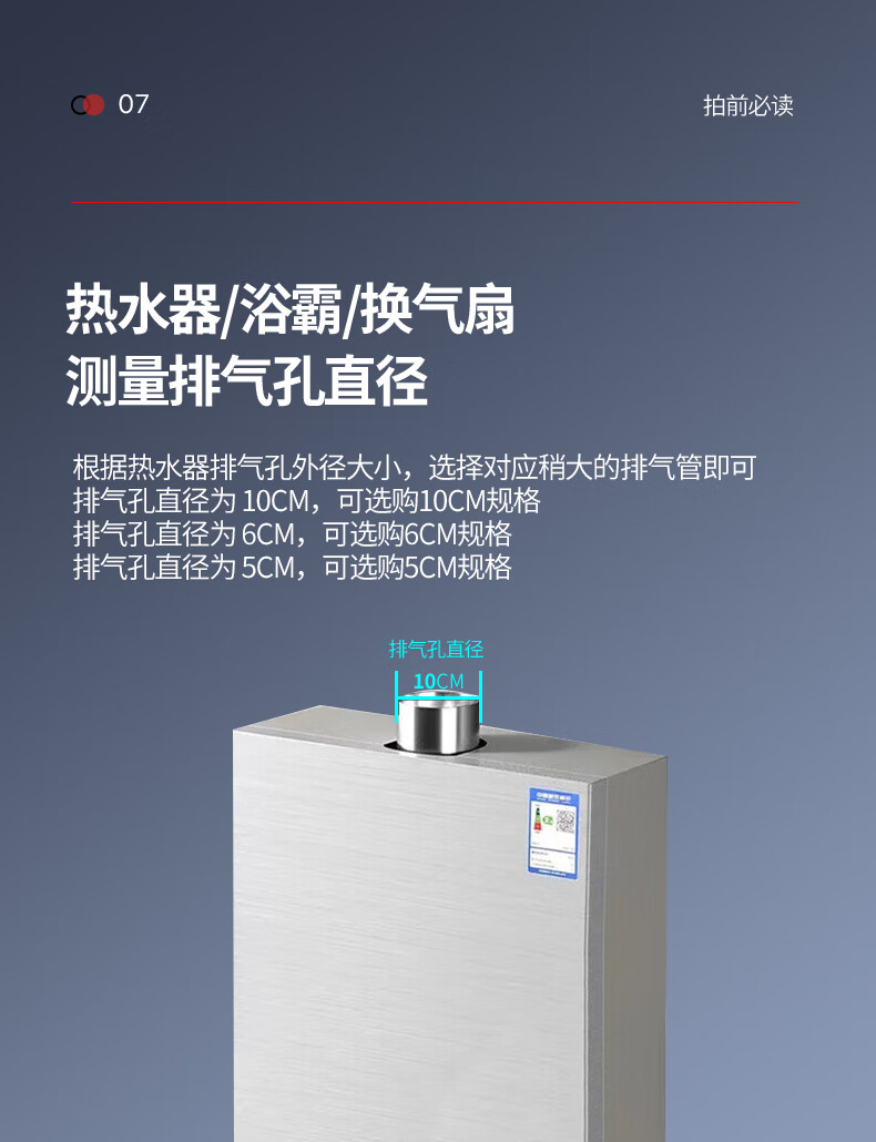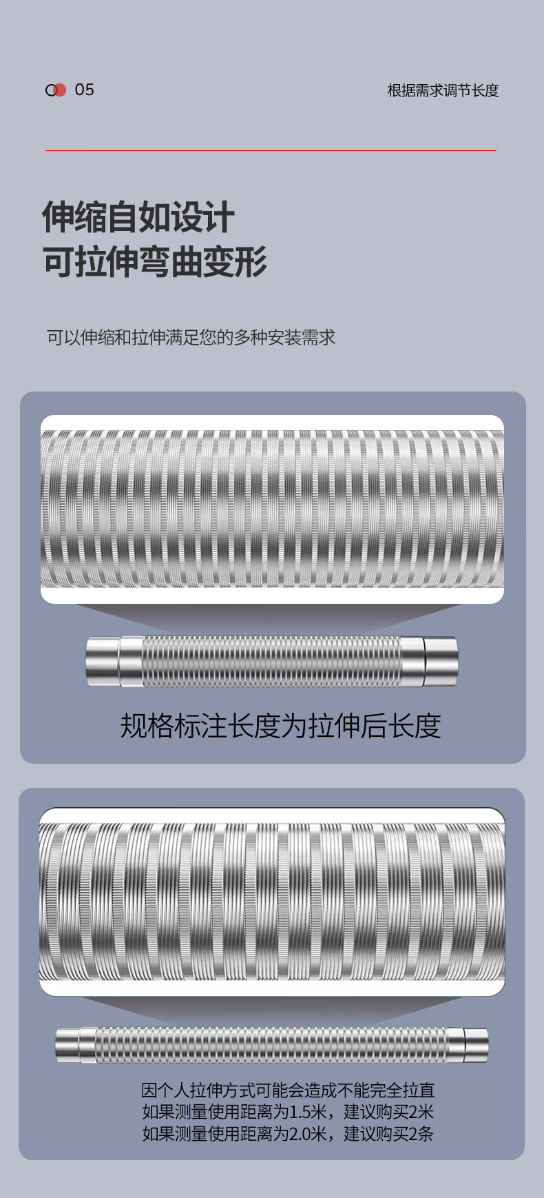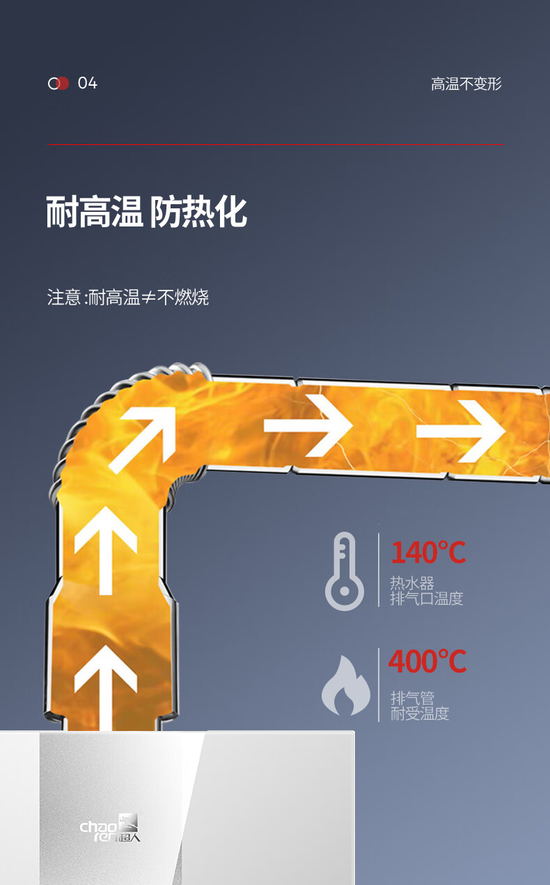 超人热水器排烟管延长直排强排式燃气热水器排气管卫生间厕所浴霸排风管加厚纯铝可伸缩弯曲不锈钢接口 100口径×2.0米【加厚纯铝】配不锈钢头
