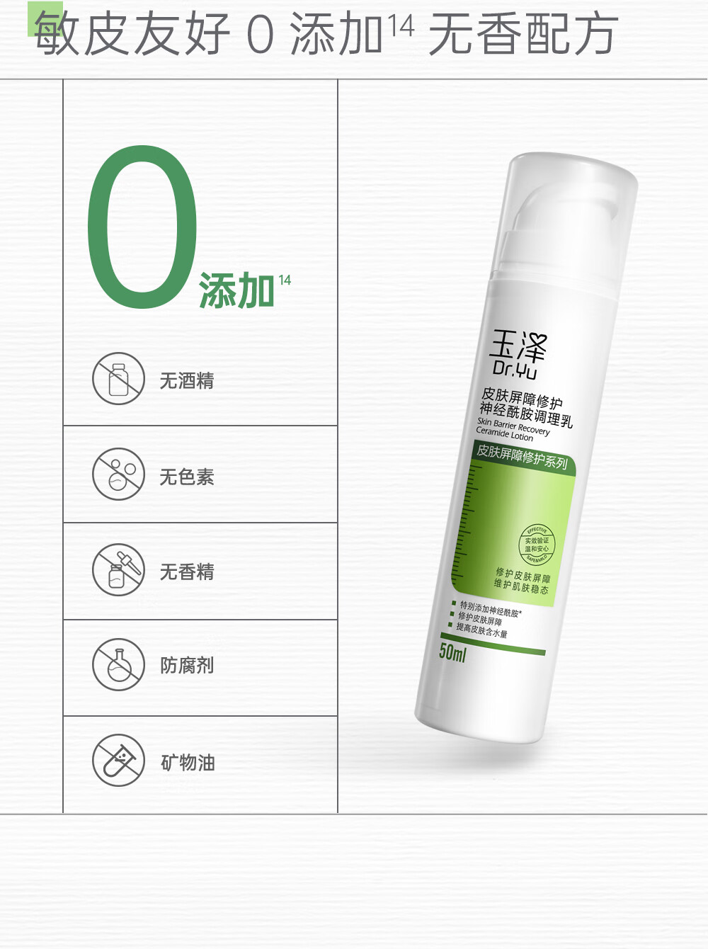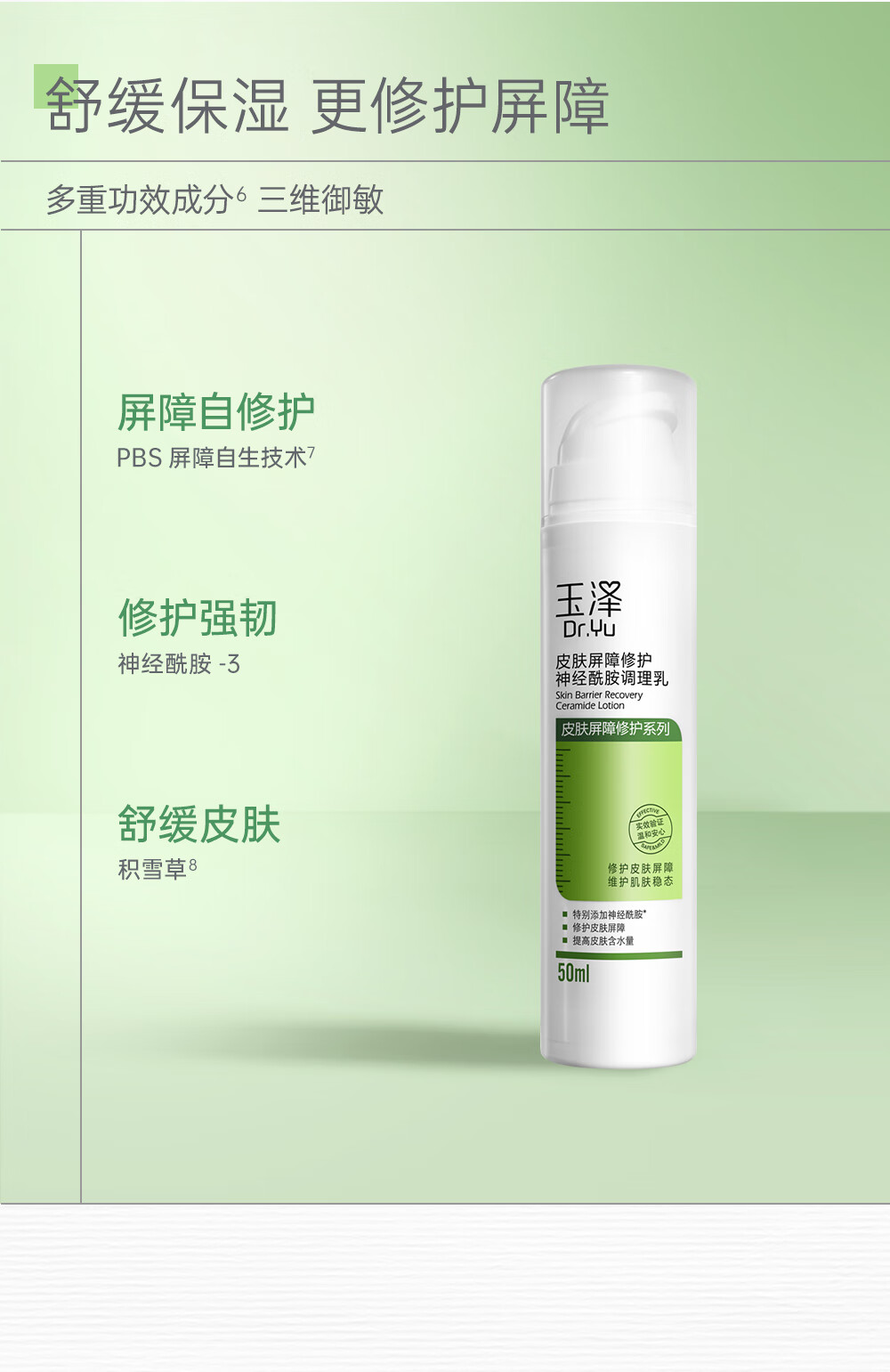 玉泽乳液 皮肤屏障修护神经酰胺调理乳液 补水保湿修护 敏感肌 调理乳50ml