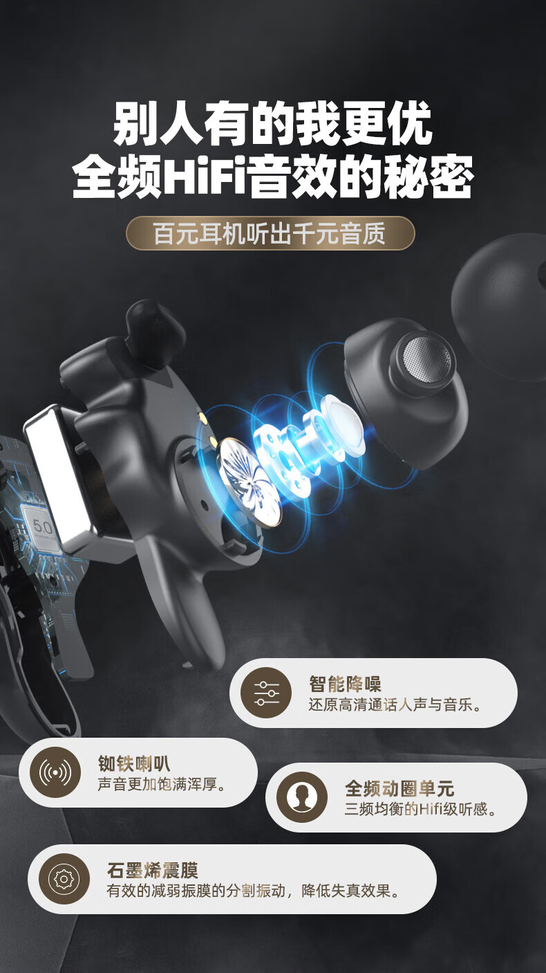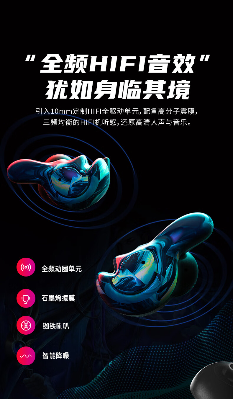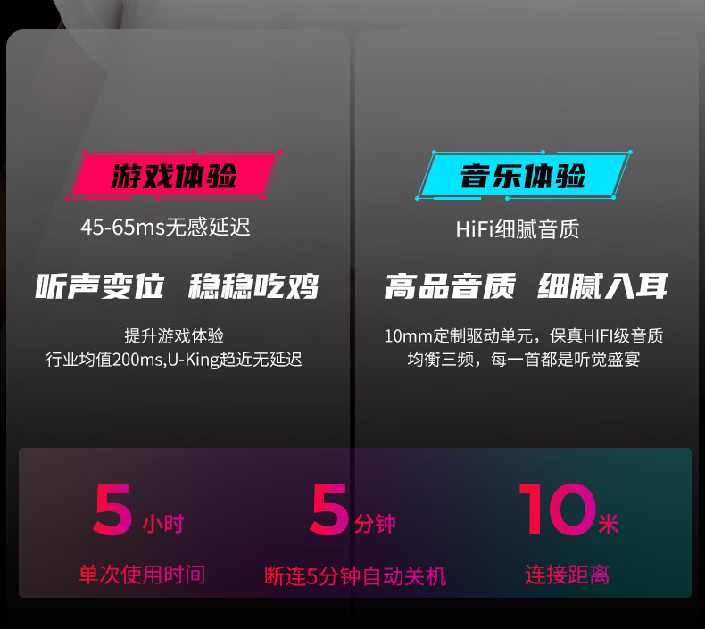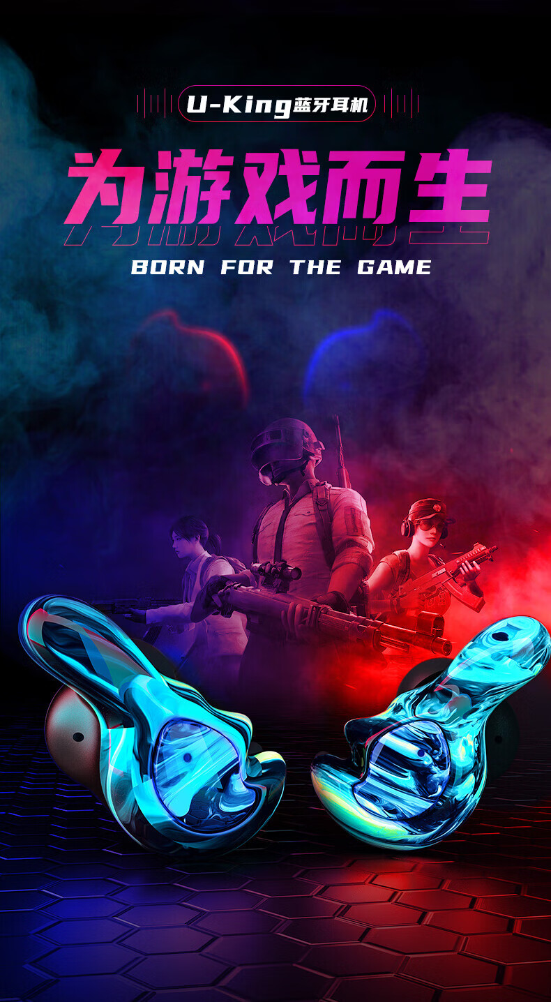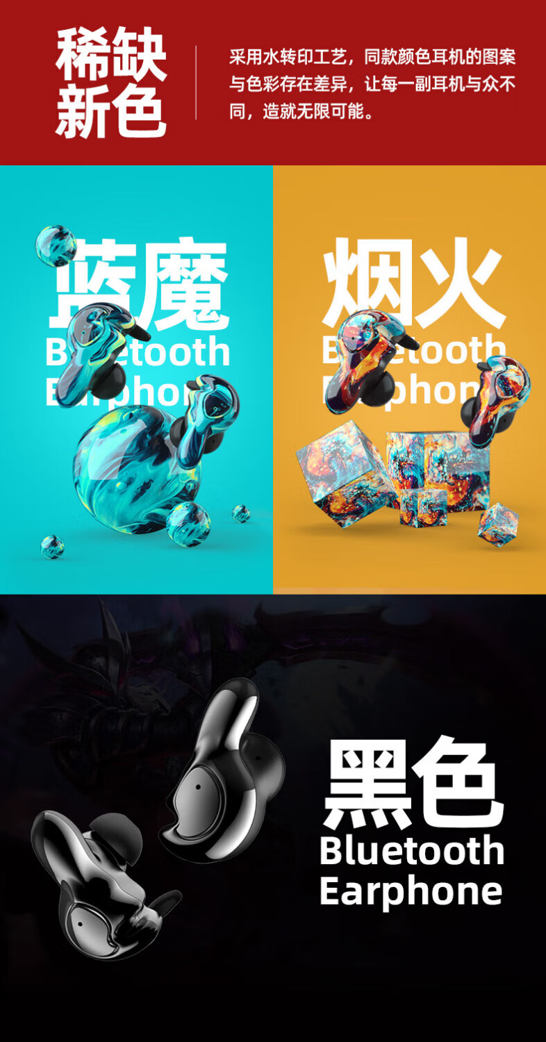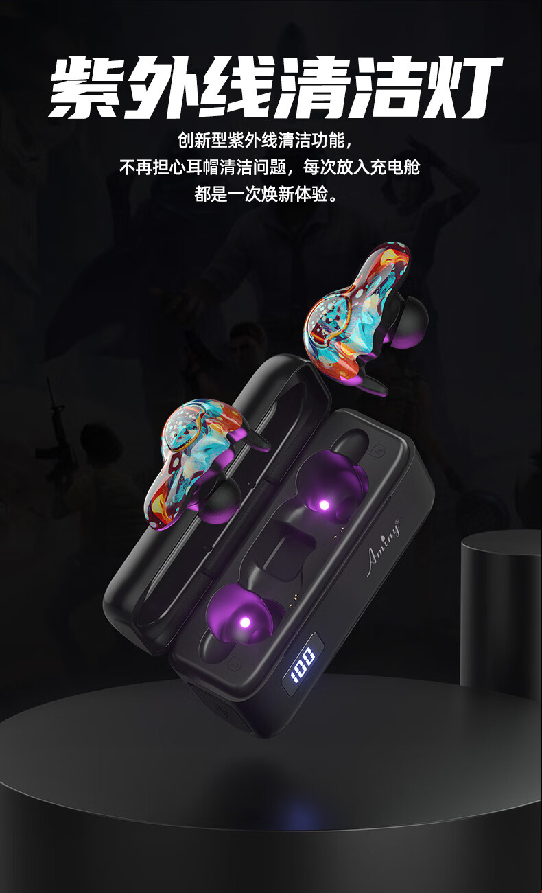 艾米尼游戏无线蓝牙耳机双主机低延时入耳式运动手游电竞耳机水转印工艺超长续航适用手机平板笔记本电脑 烟火 U-king2