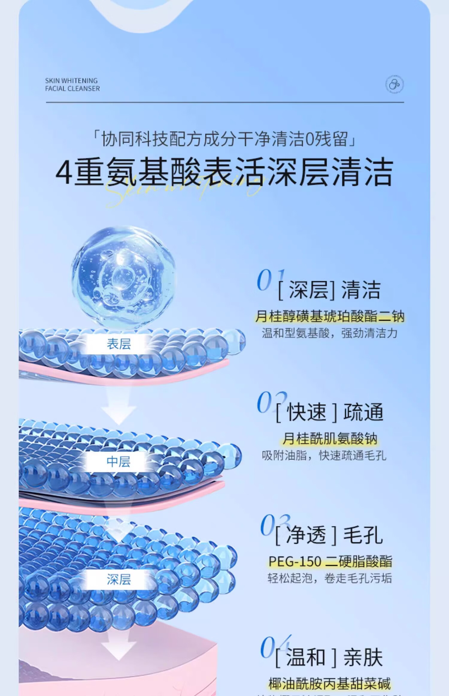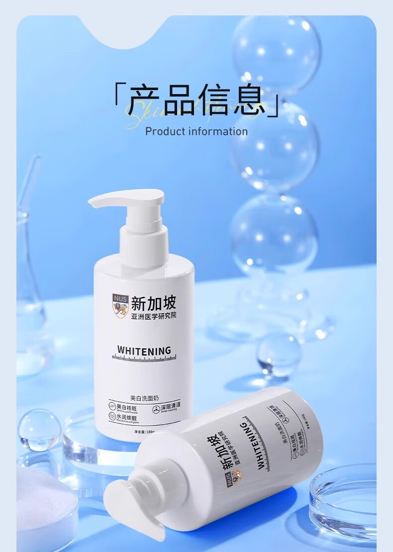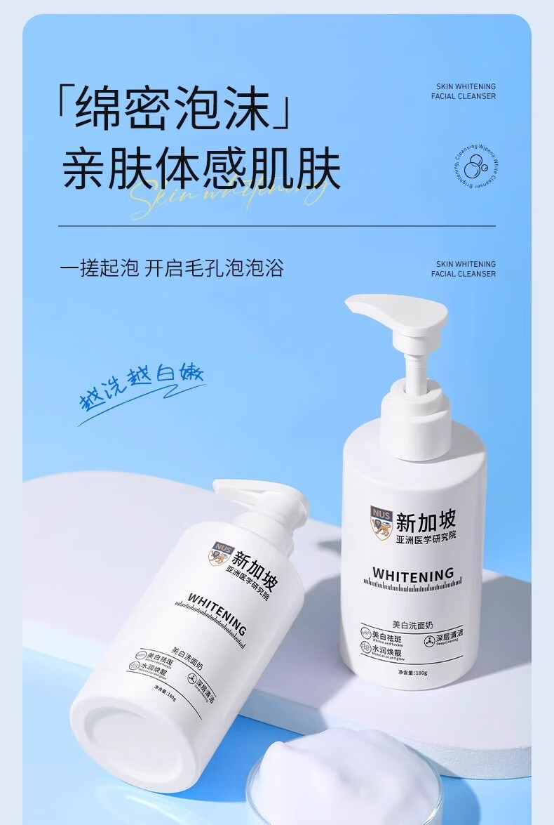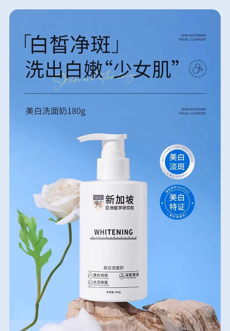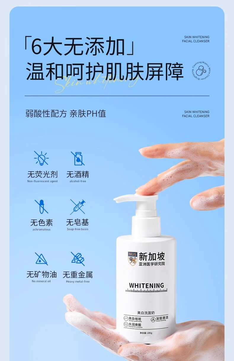 贝康伟新加坡氨基酸洗面奶美白淡斑提亮肤色去黄改善暗沉正品官方护肤品 900g 五瓶洗面奶