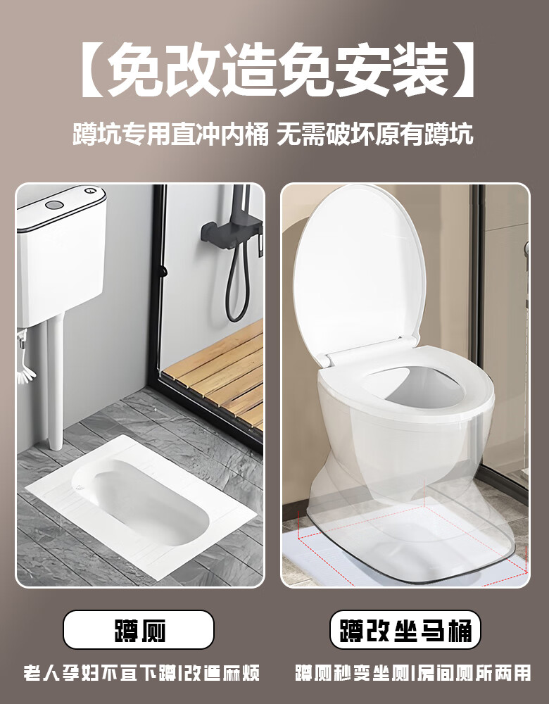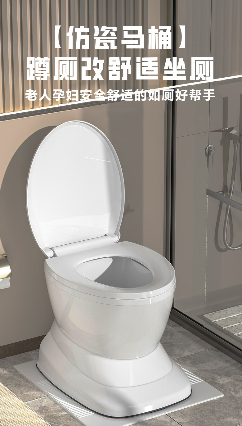 尚敦蹲厕改坐厕老人坐便器家用孕妇移动马桶便携式卧室成人防臭坐便椅 白色【蹲厕专用】一体桶身