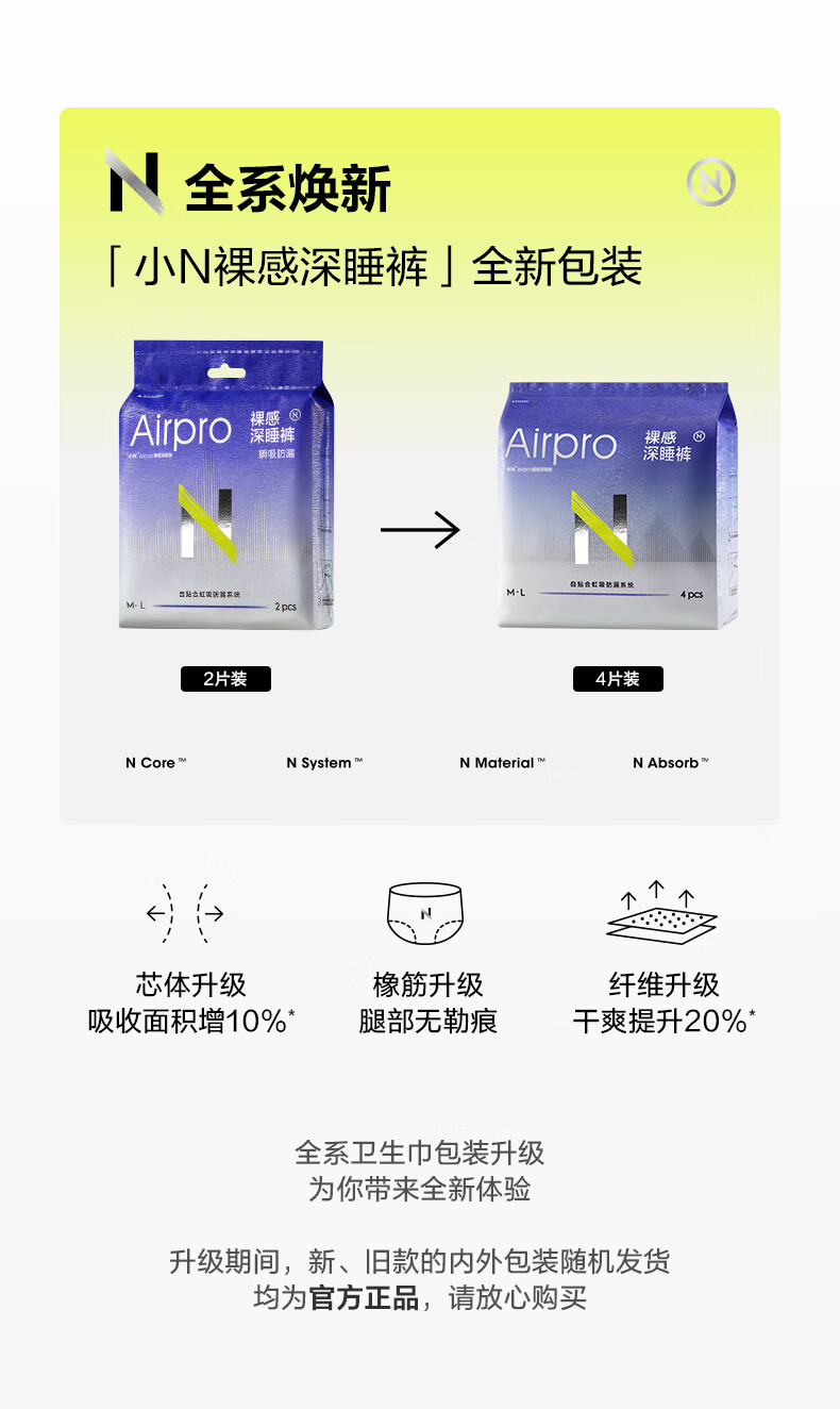babycare安睡裤 小n安心裤 卫生巾 裸感超薄超柔夜用经期防漏姨妈巾 M-L码 16条 100-150斤 焕新款
