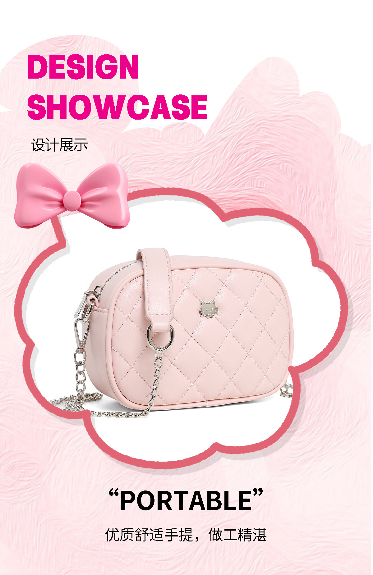 HEART KITTY高颜值菱格小香风链条包高级感气质百搭通勤单肩斜挎包生日礼物包 6607粉色