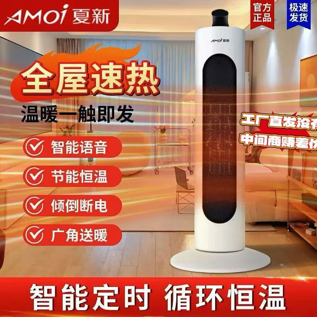 夏新取暖器智能语音暖风机家用浴室立式室内速热电暖器恒温取暖 蓝色 语音控制