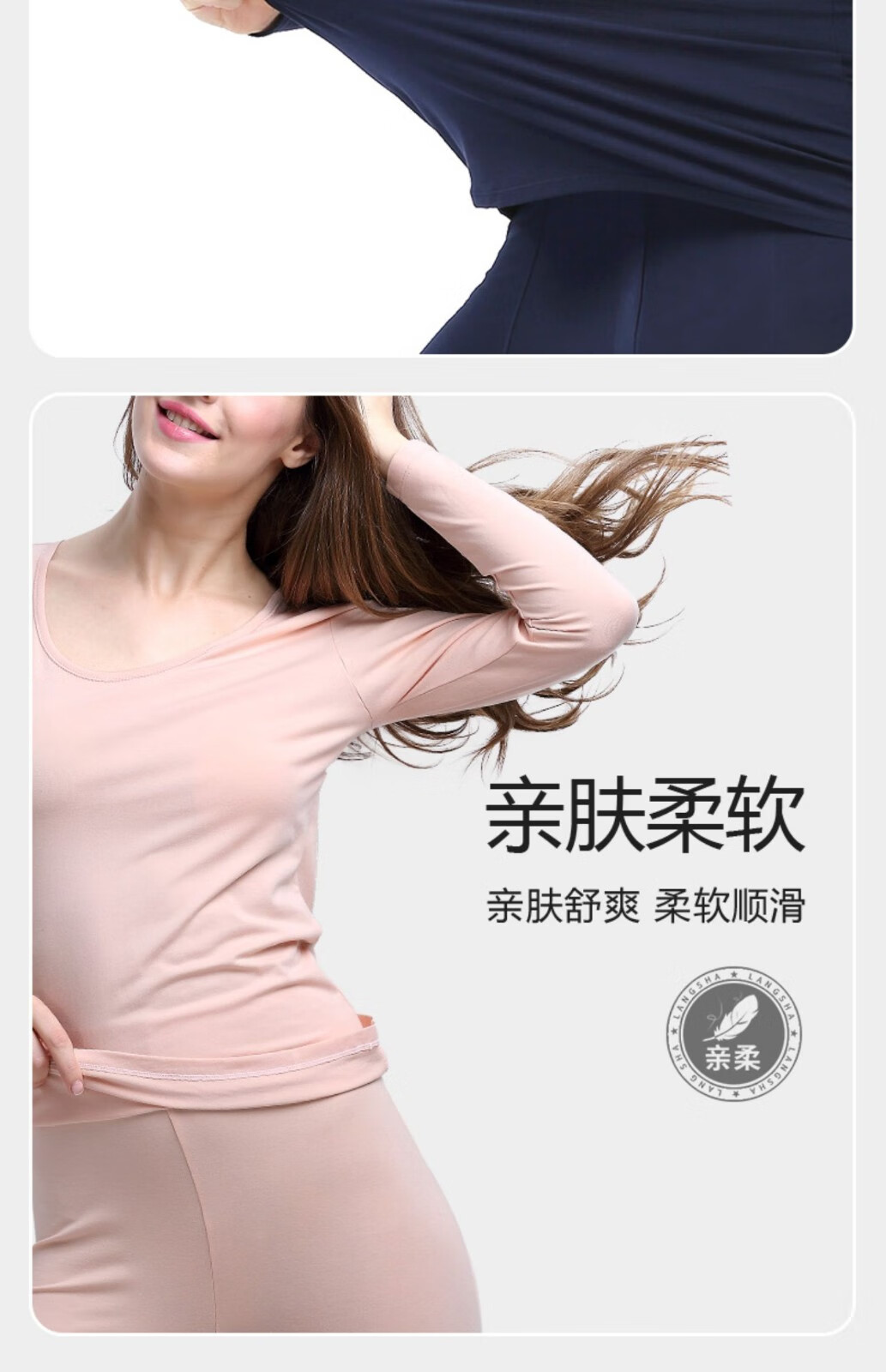 浪莎秋衣秋裤男士女士保暖内衣秋冬莫代尔贴身圆领打底衫女士内搭修身 女款-黑色 L女(165/95)