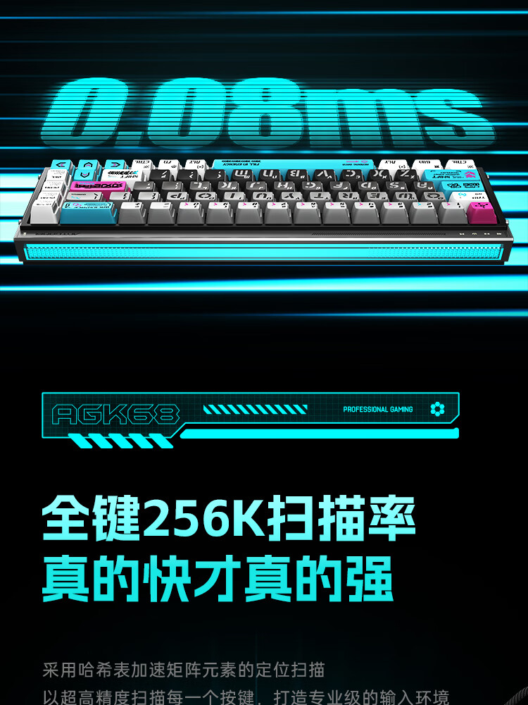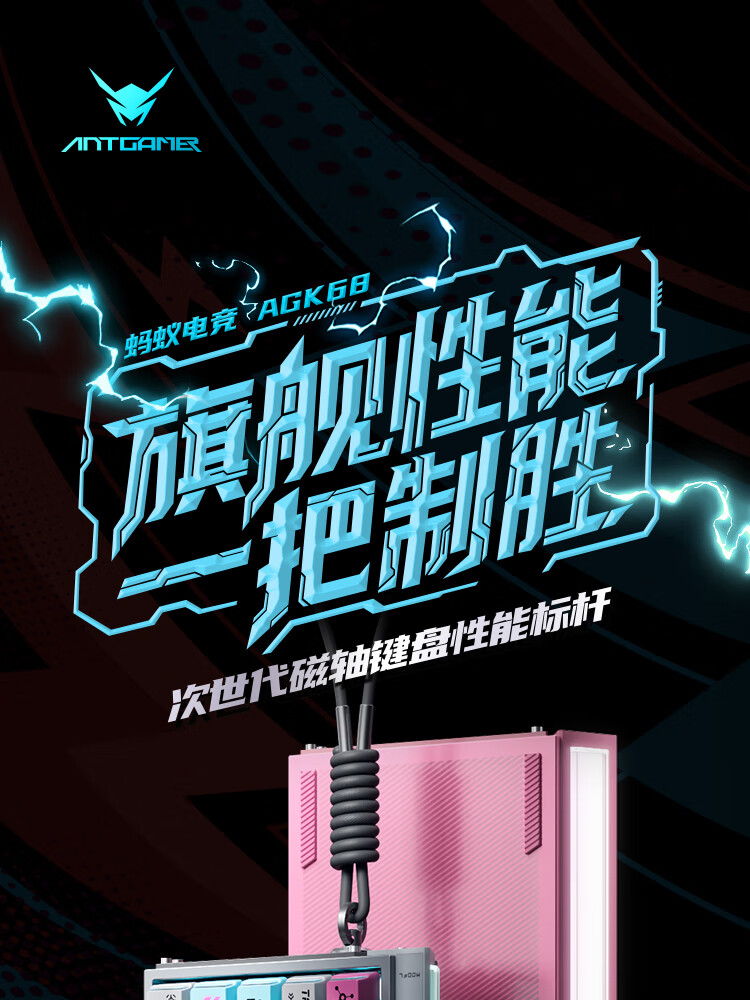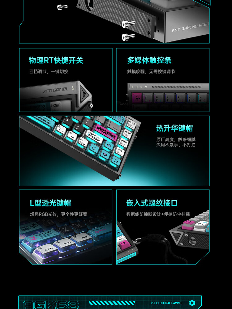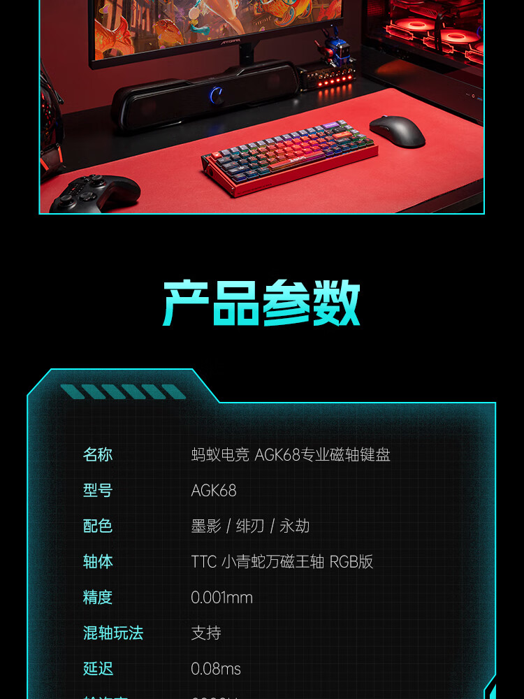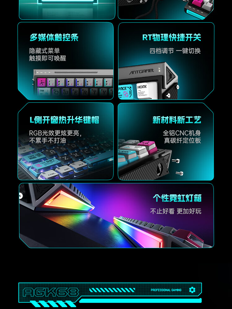 ANTGAMER蚂蚁电竞AGK68墨影 磁轴键盘0.001精度认证 TTC青蛇万磁王轴 全键256K扫描率灯箱RGB多媒体触控