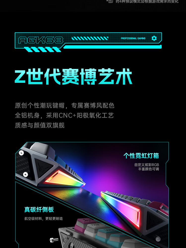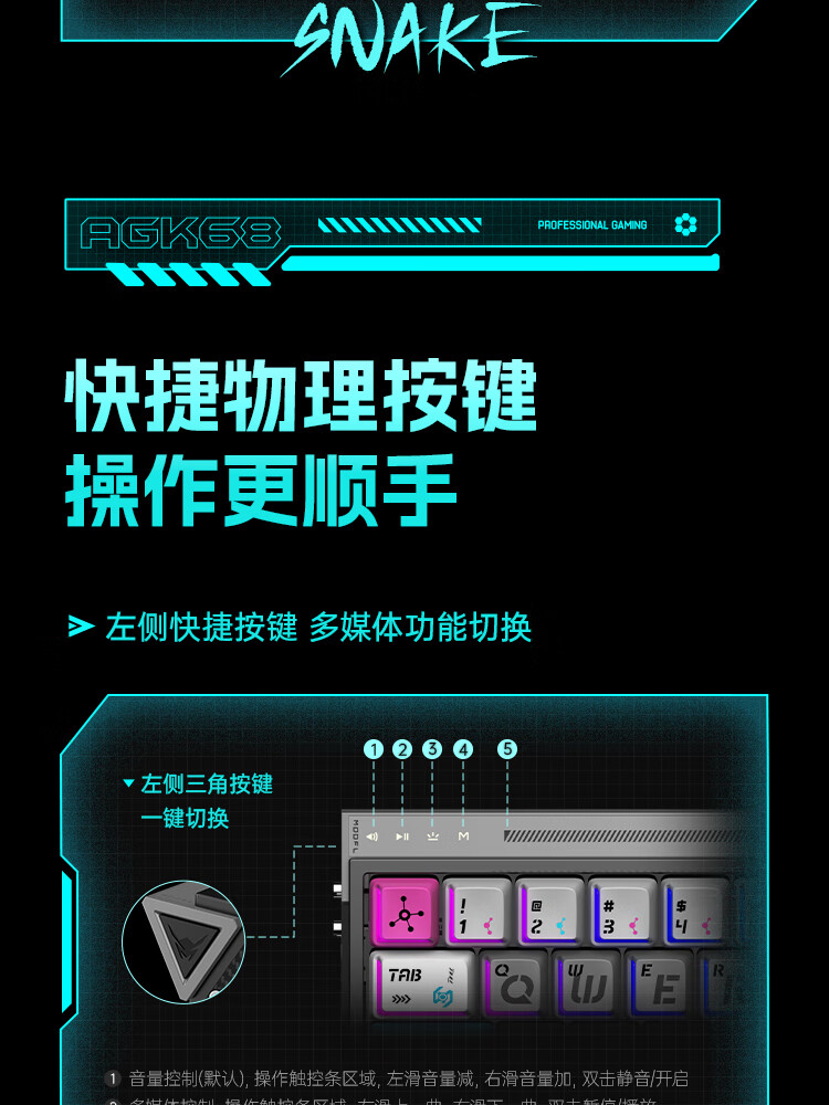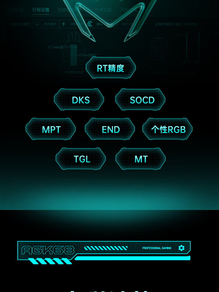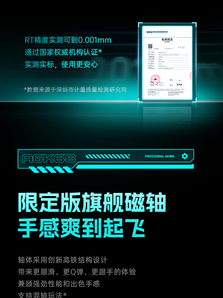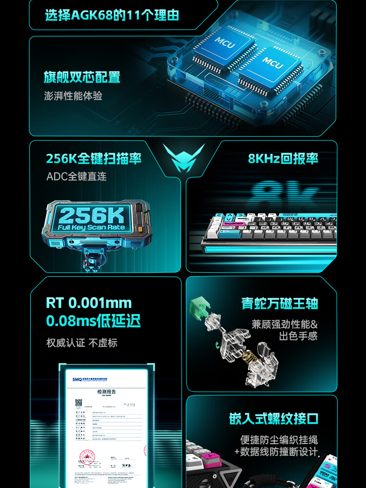 ANTGAMER蚂蚁电竞AGK68墨影 磁轴键盘0.001精度认证 TTC青蛇万磁王轴 全键256K扫描率灯箱RGB多媒体触控