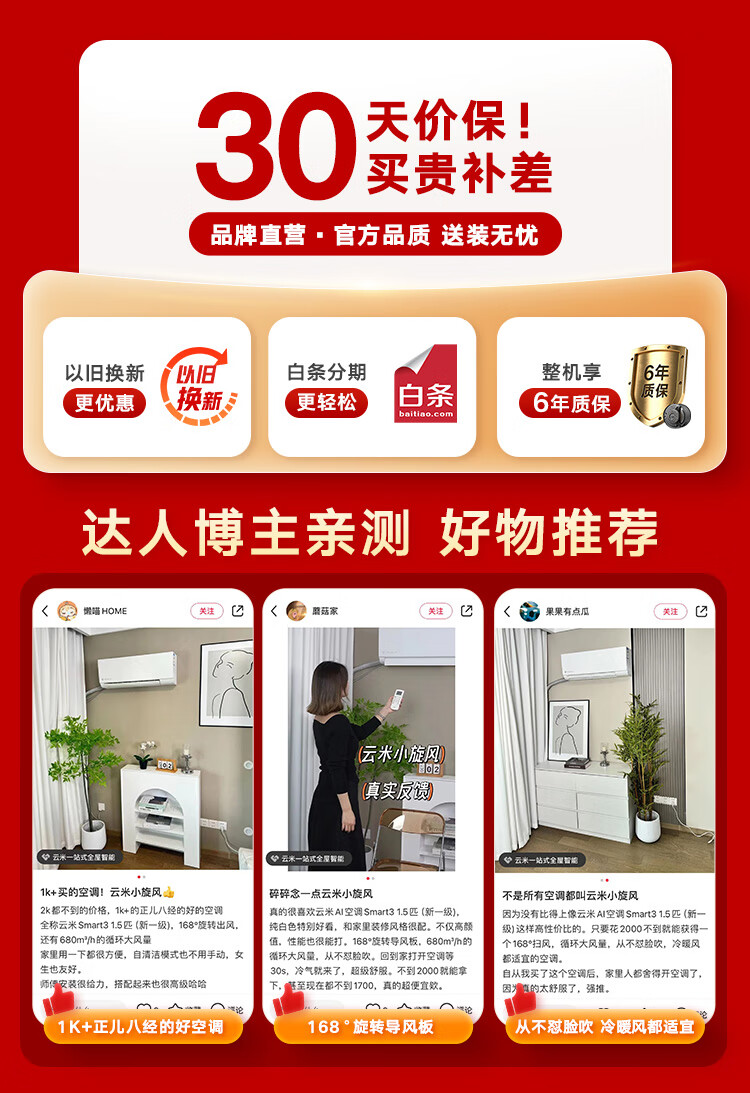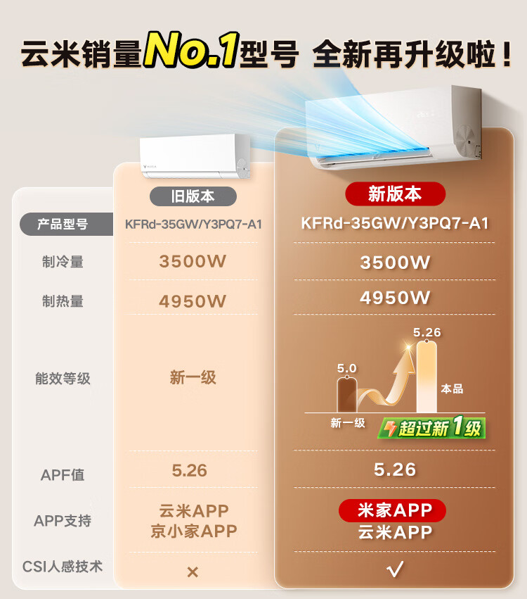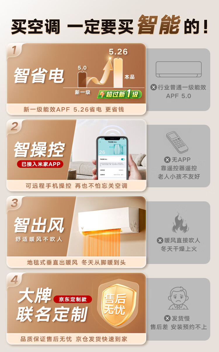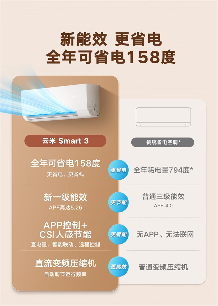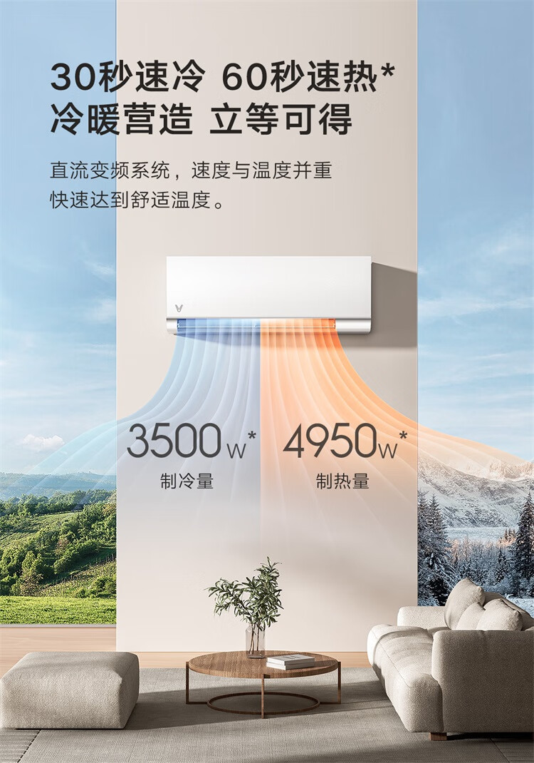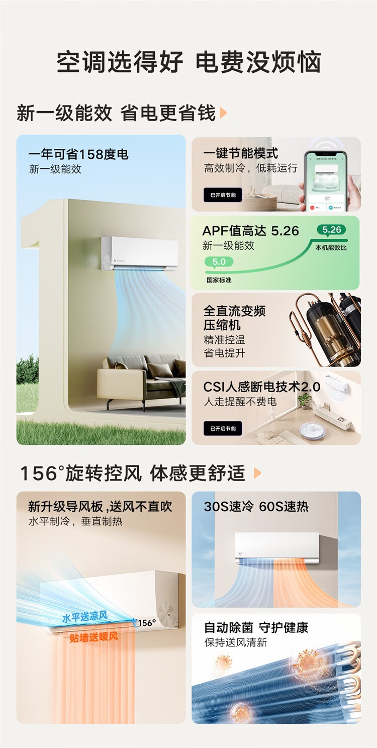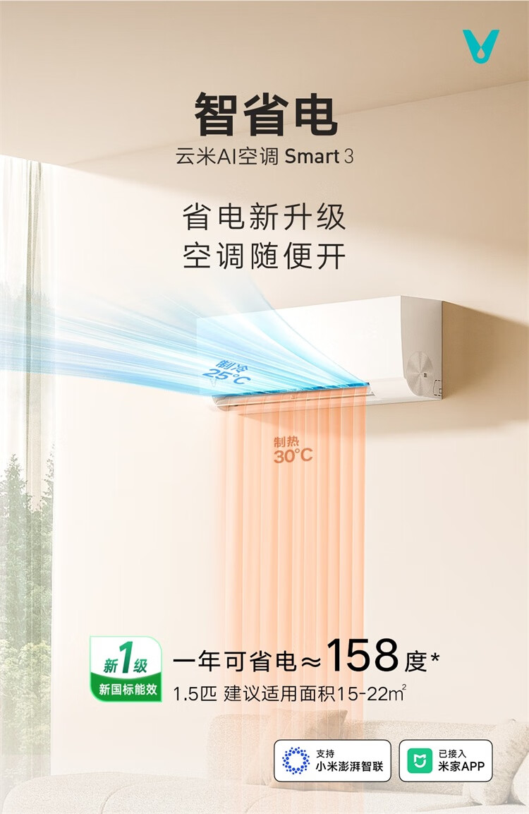 云米(VIOMI)空调1.5匹新一级节能 智省电挂机 冷暖智能互联 国家补贴KFRd-35GW/Y3PQ7-A1以旧换新 接入米家APP