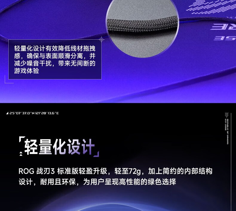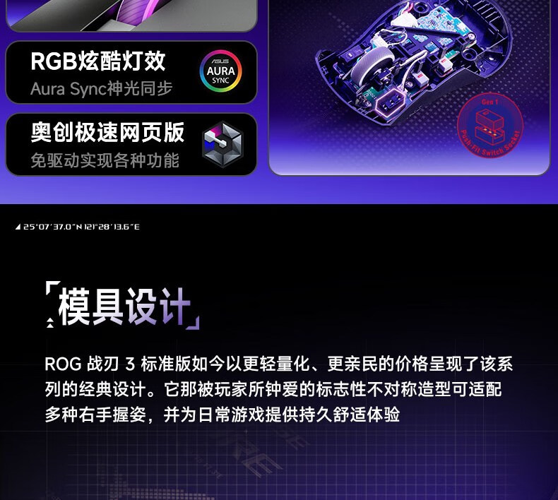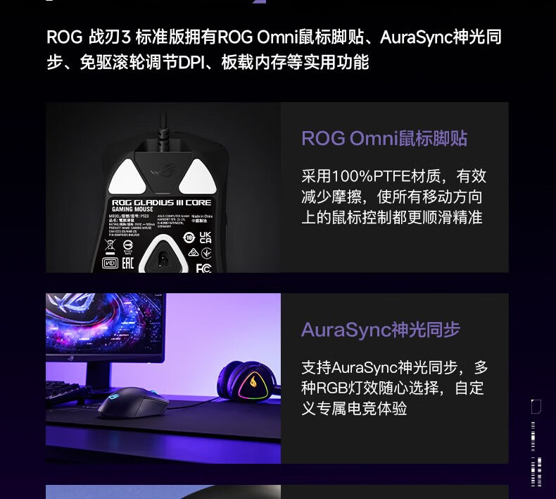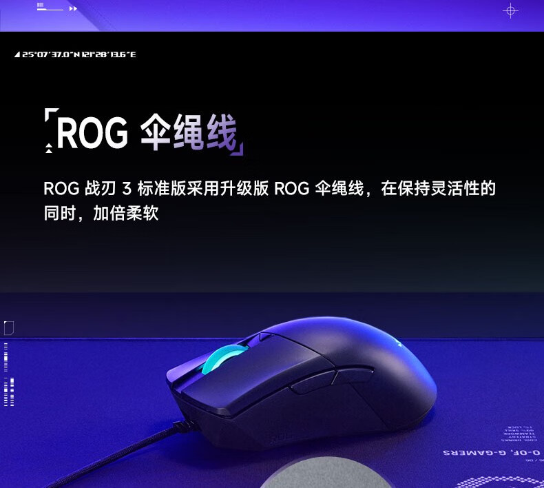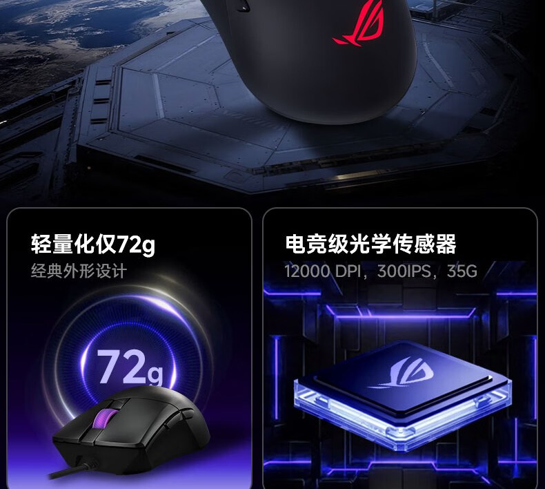 ROG战刃3标准版 有线游戏鼠标 RGB灯效 轻量化设计 人体工学 吃鸡/绝地求生/无畏契约 电竞鼠标 黑色