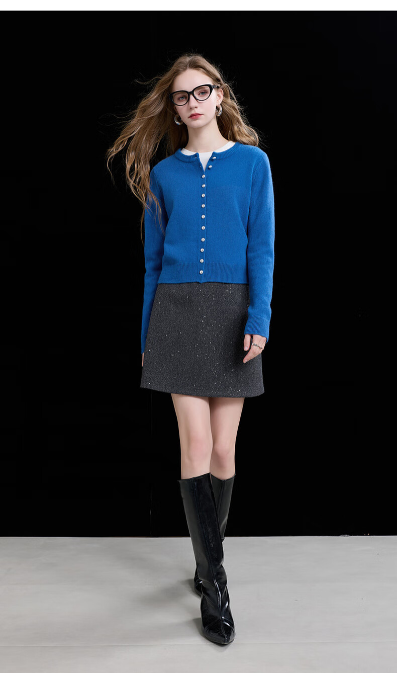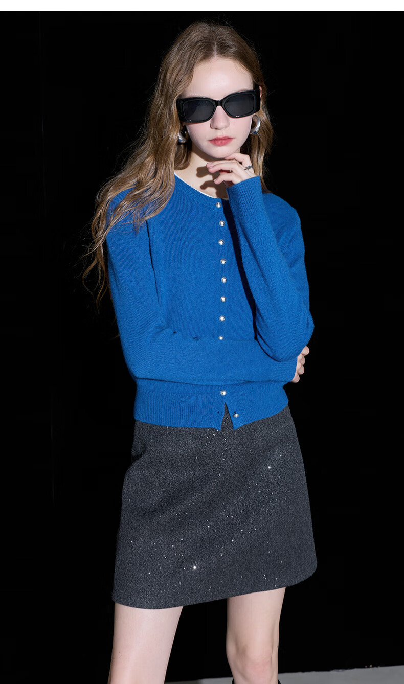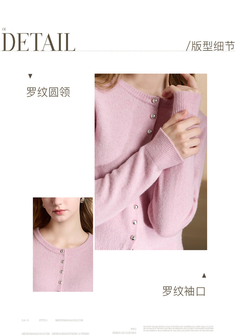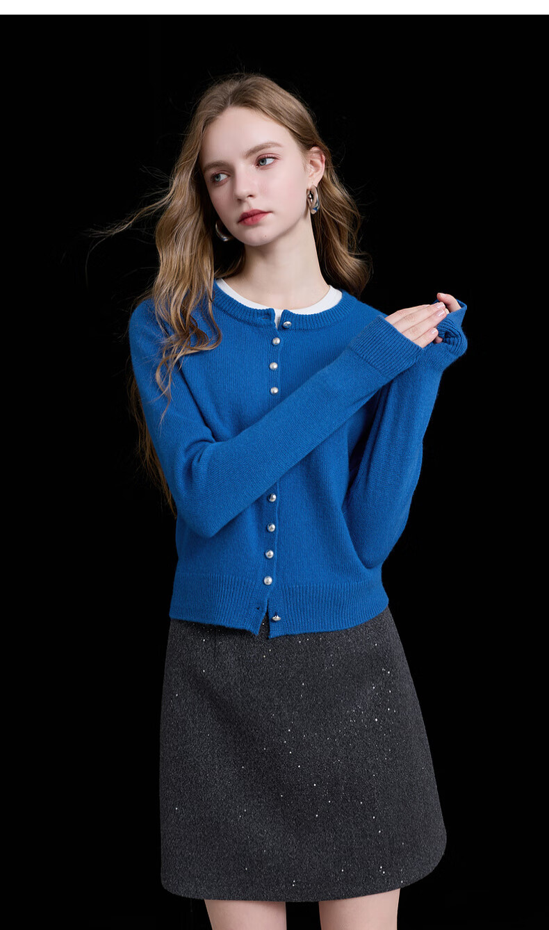 三彩2025冬季新款圆领长袖针织衫开衫简约毛衫M