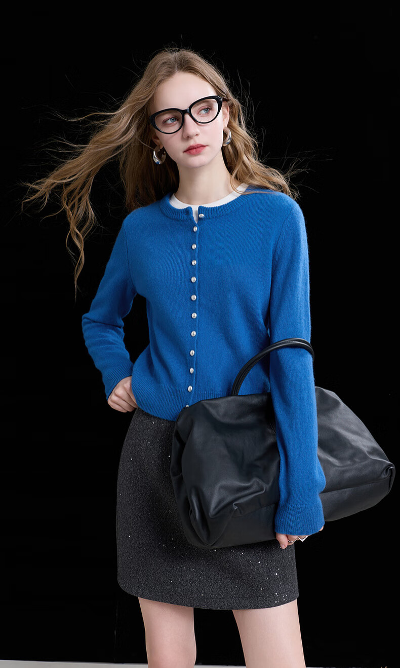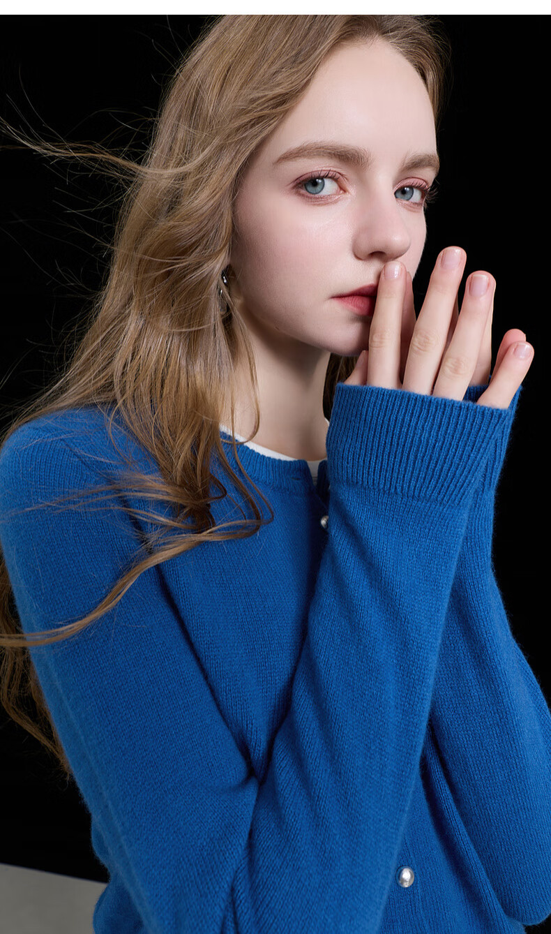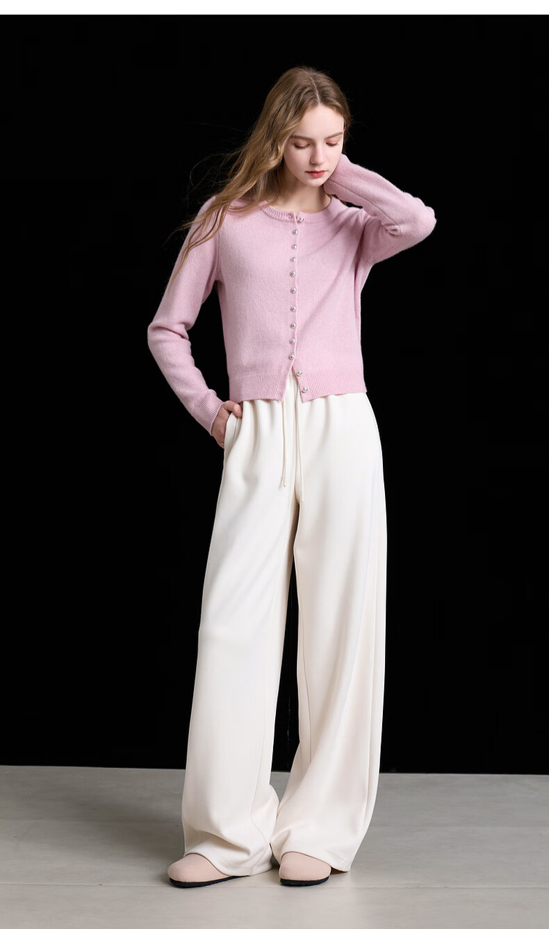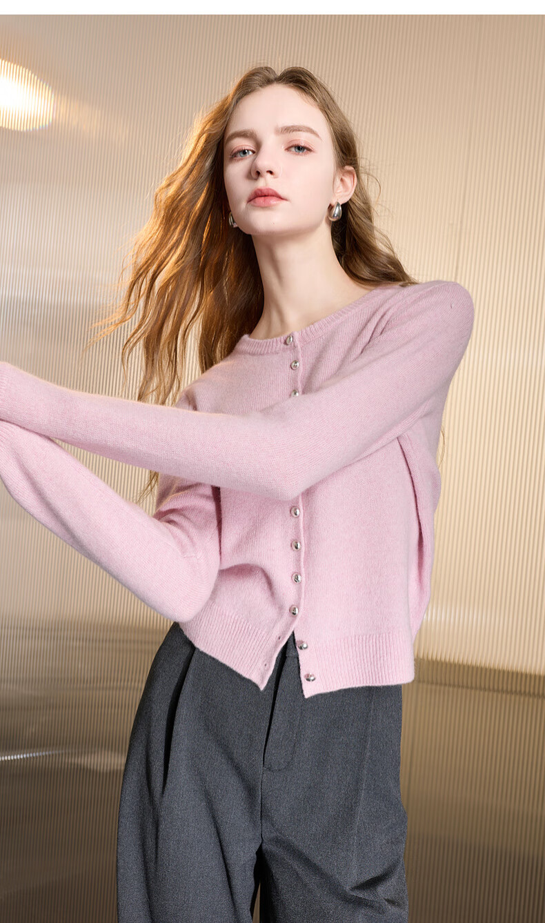 三彩2025冬季新款圆领长袖针织衫开衫简约毛衫M