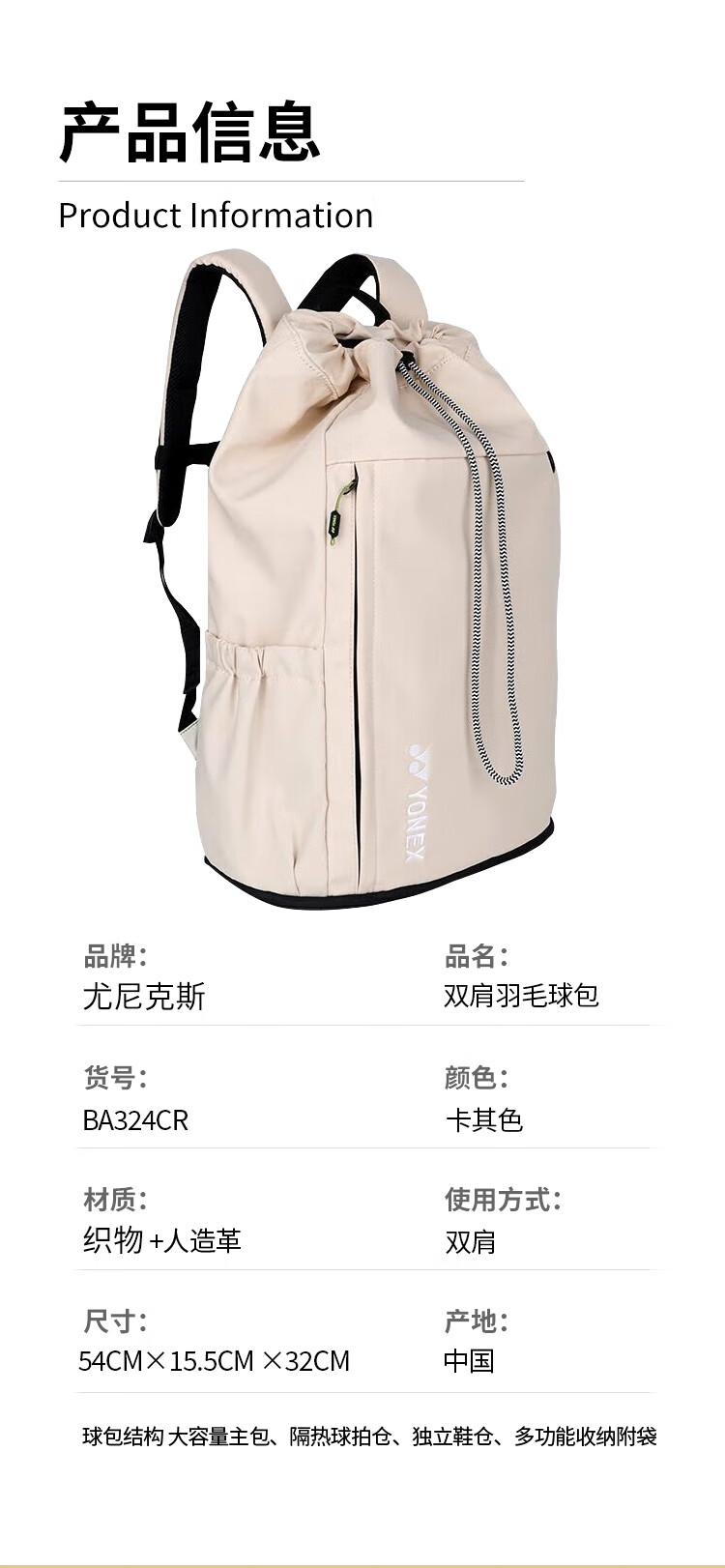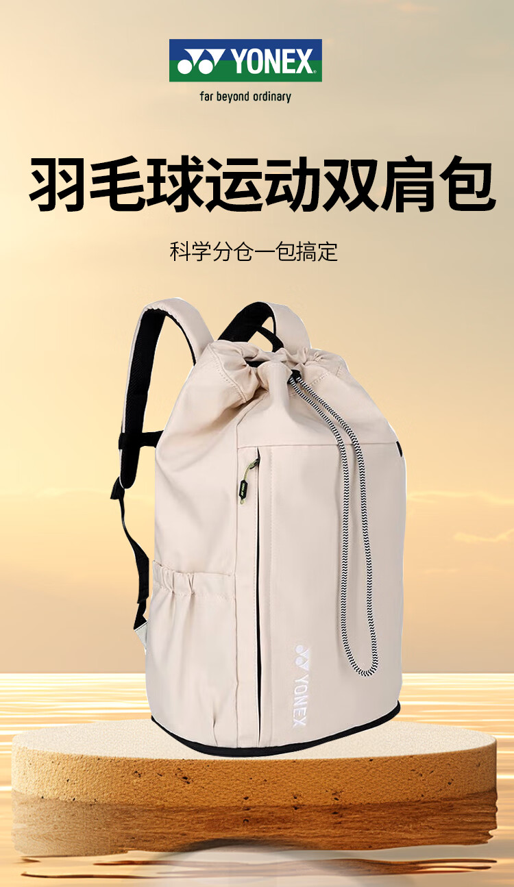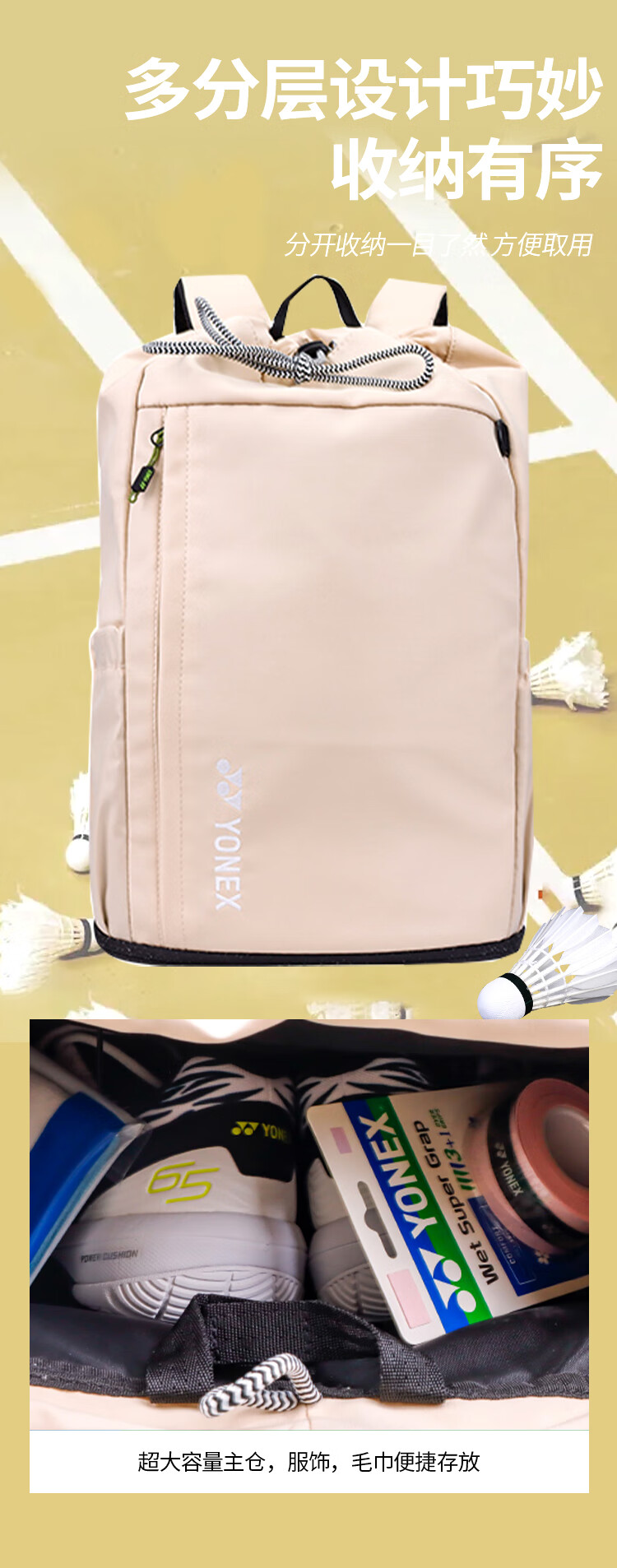YONEX尤尼克斯羽毛球包时尚抽绳双肩运动背包独立鞋仓BA324CR卡其色