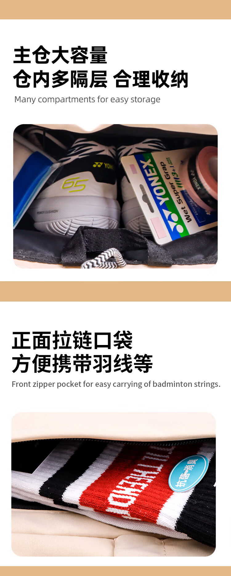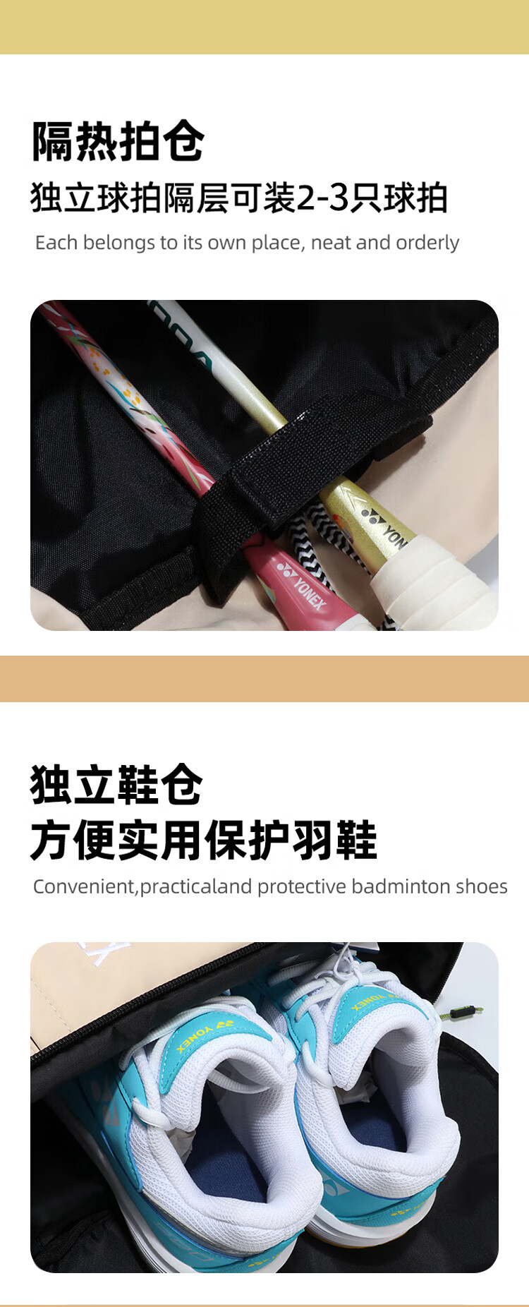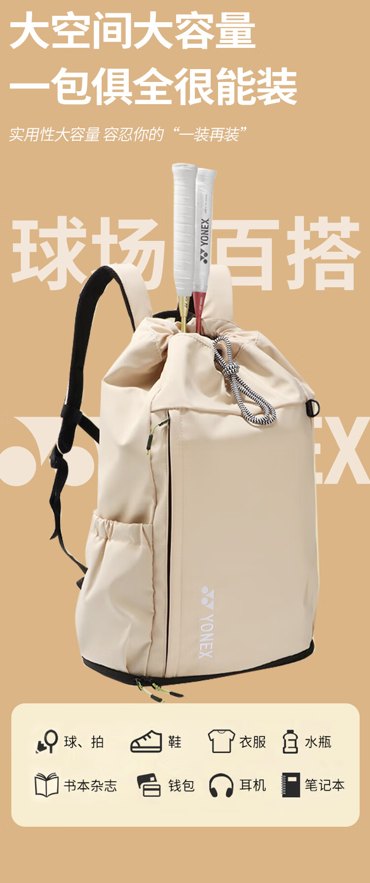 YONEX尤尼克斯羽毛球包时尚抽绳双肩运动背包独立鞋仓BA324CR卡其色