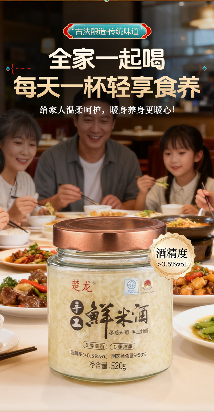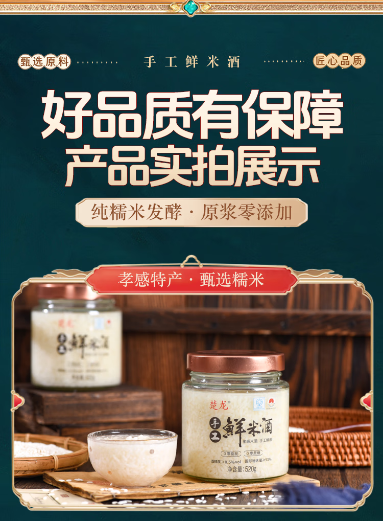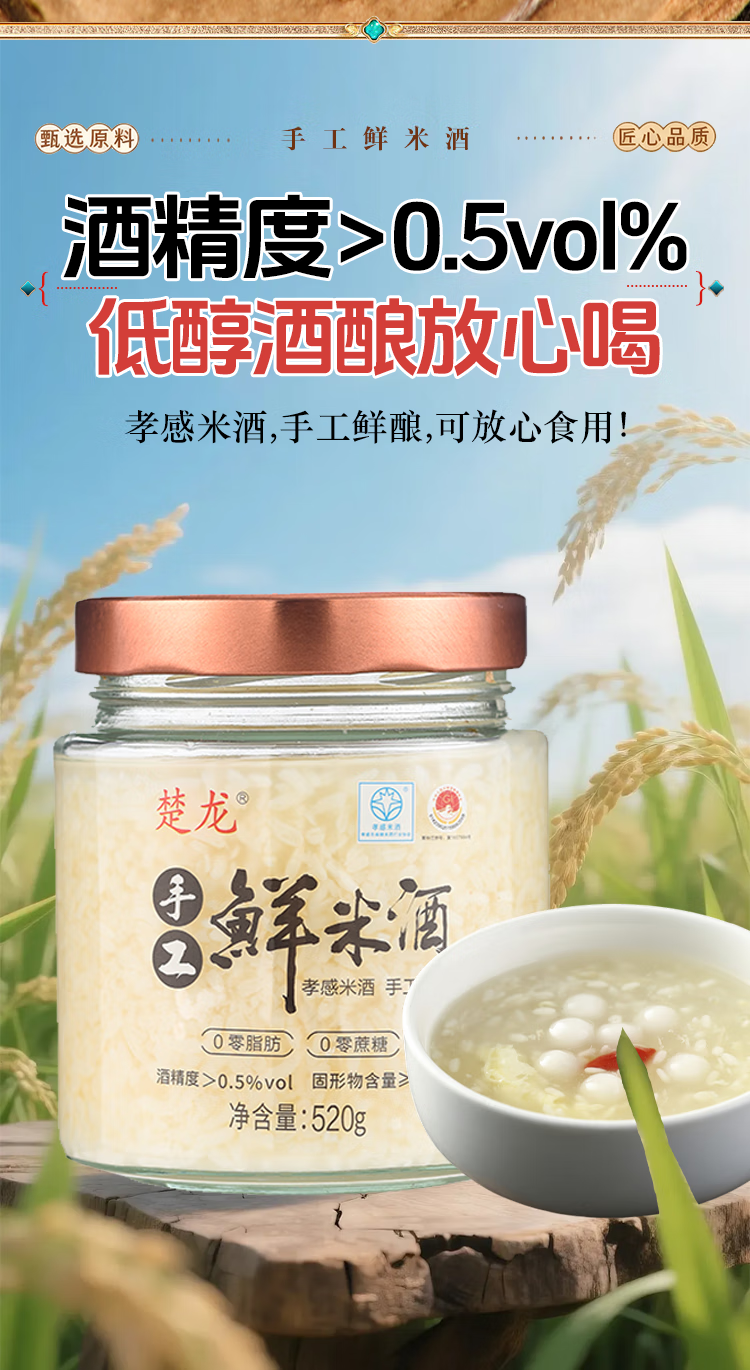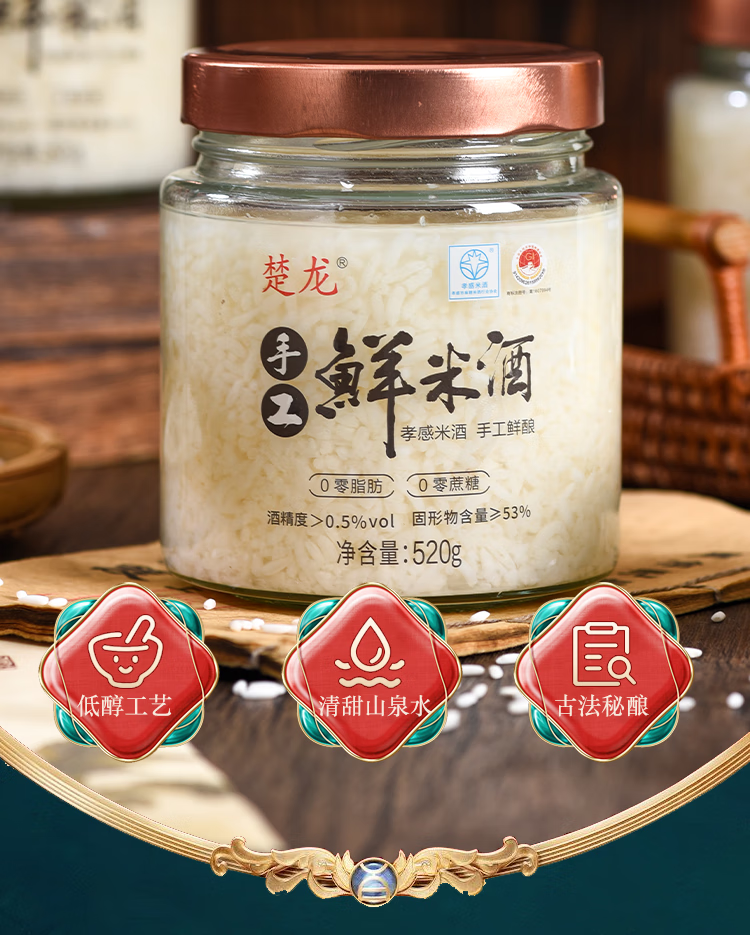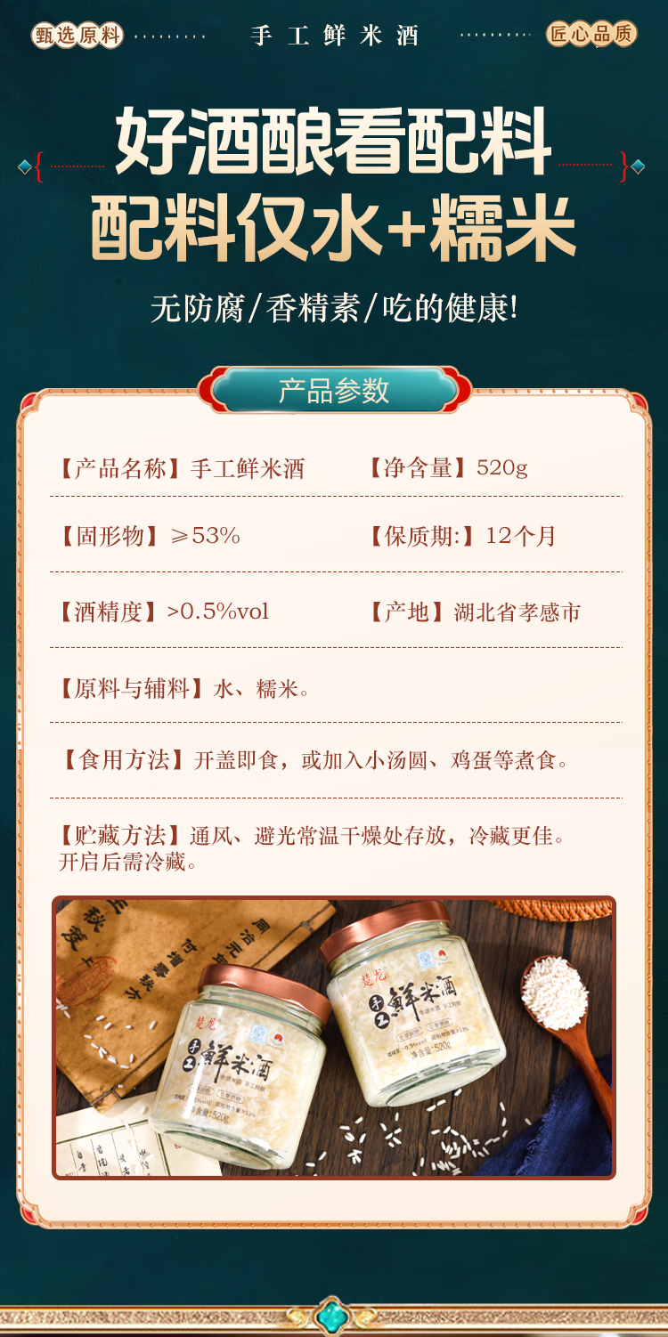 米酒孝感佬米酒520克罐装手工鲜米酒醪糟酒酿高固形物甜酒酿0添加 520g*2