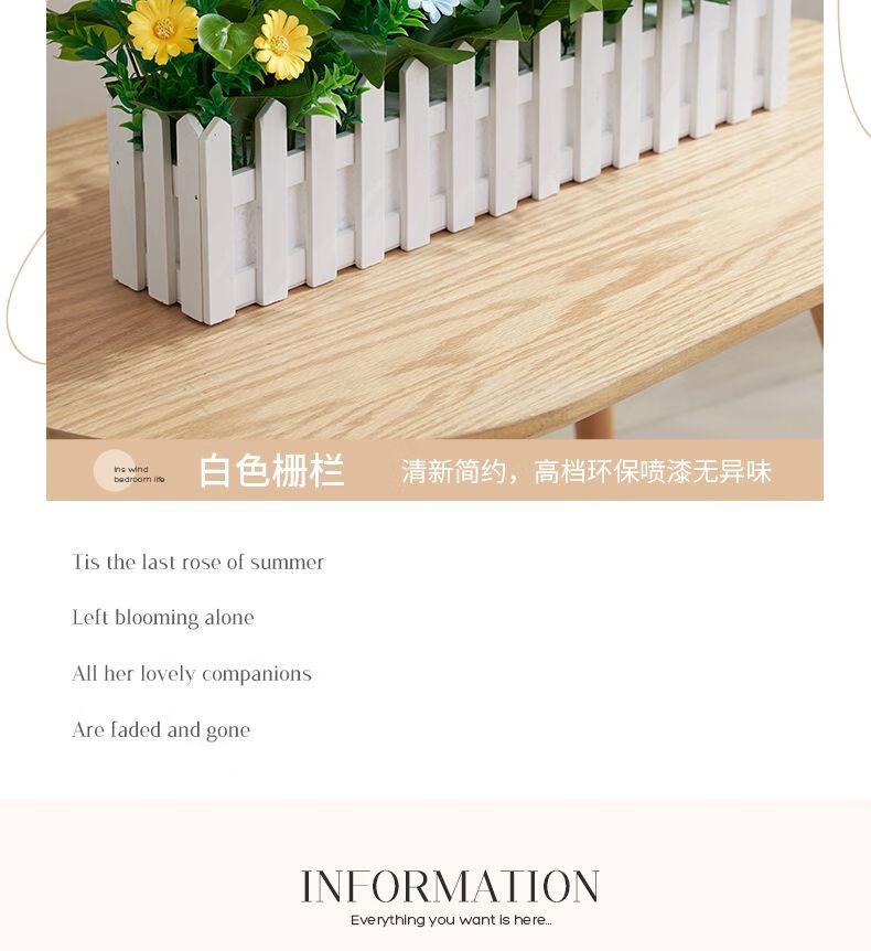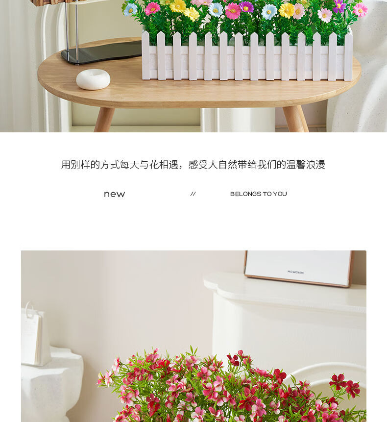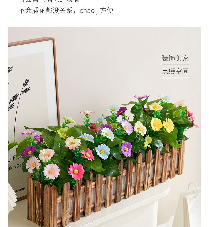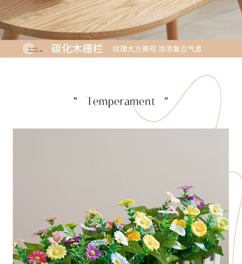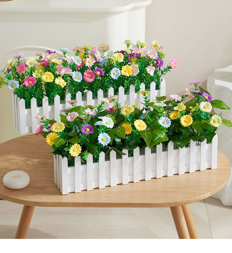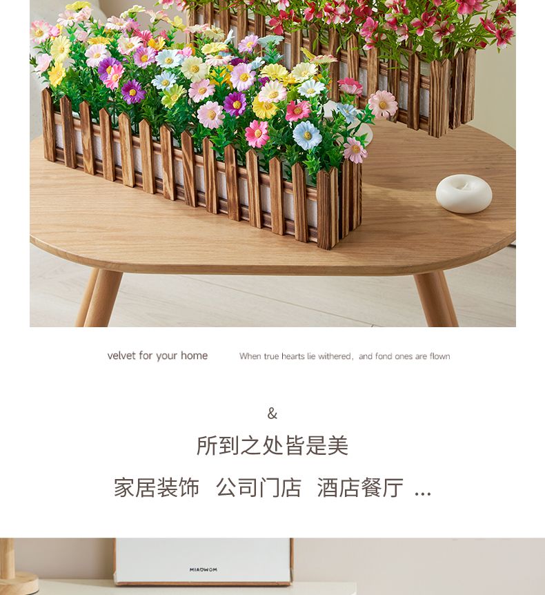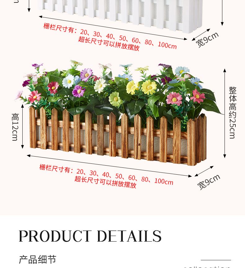 OYKTN仿真花栅栏花绿植假花客厅墙角窗台隔断遮挡装饰绿植摆设盆栽摆件 木色栅栏+玫红色香草花 长30厘米