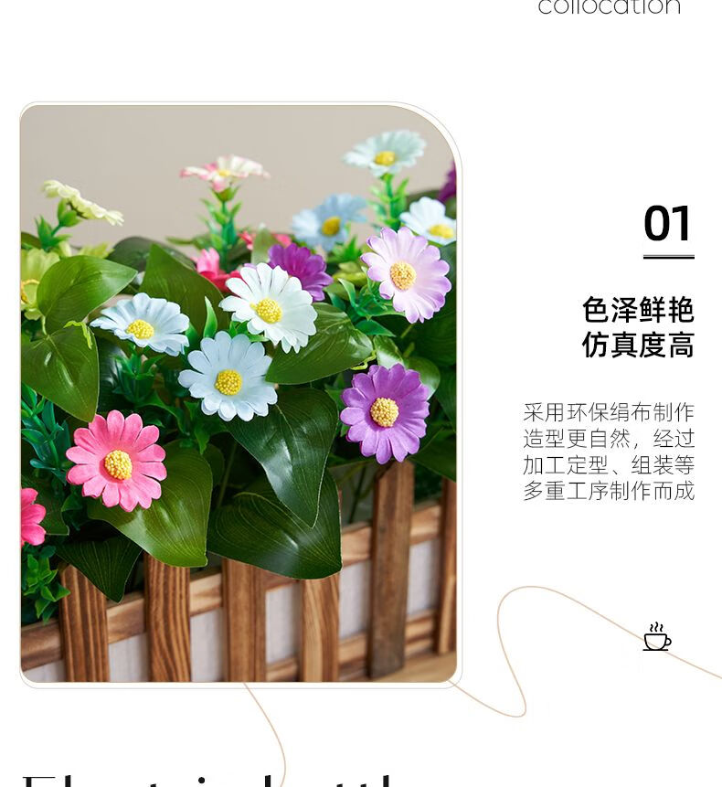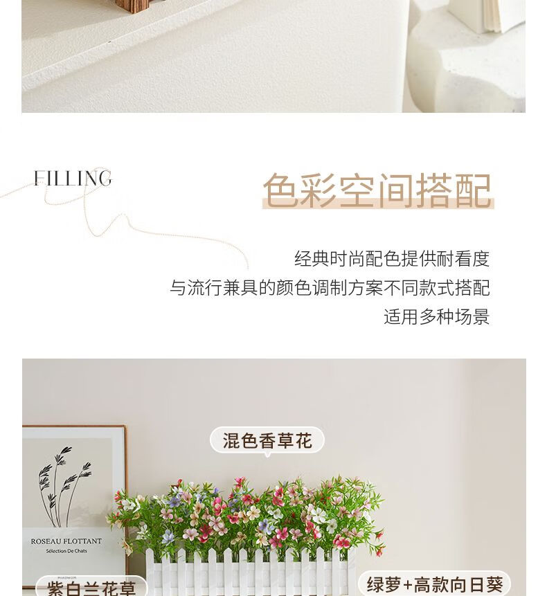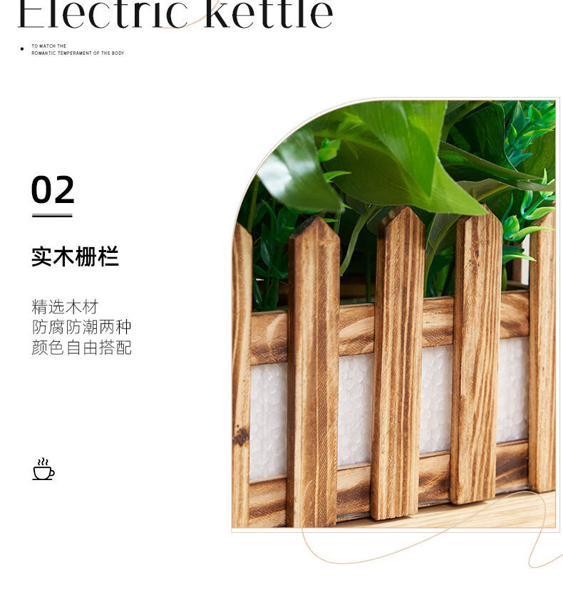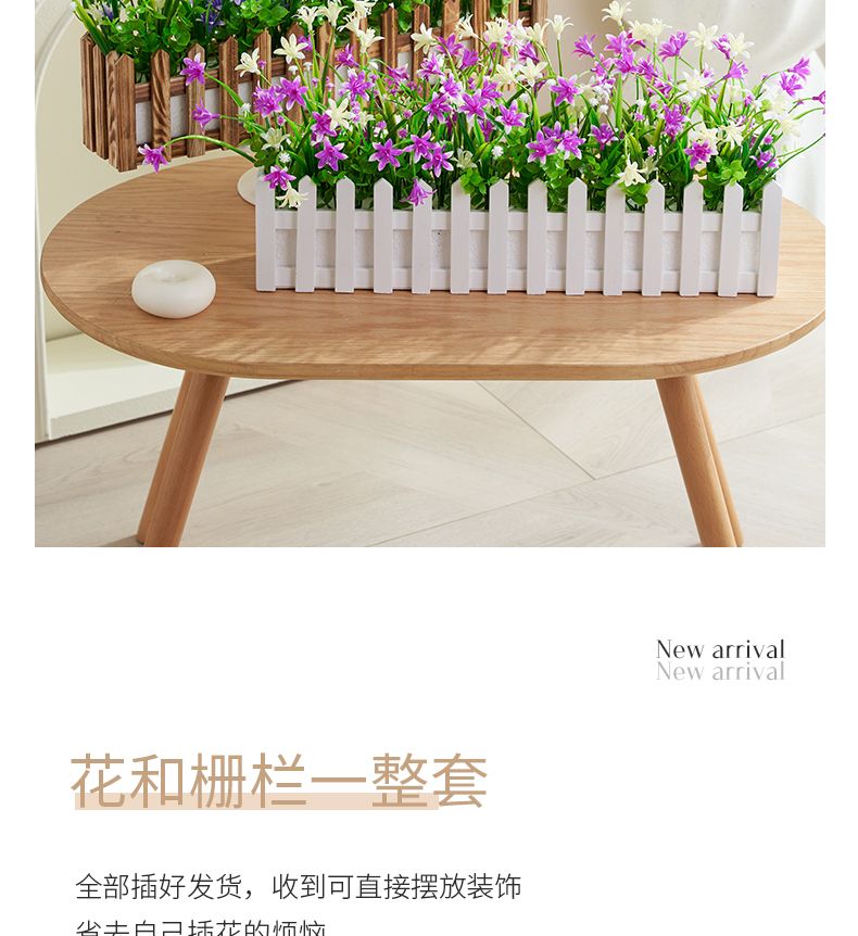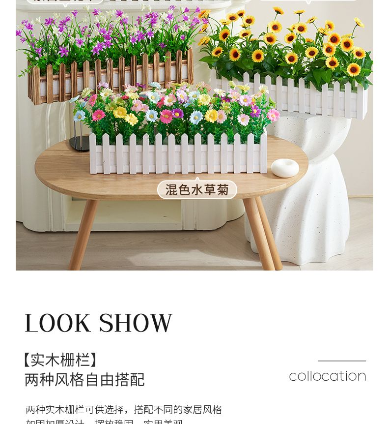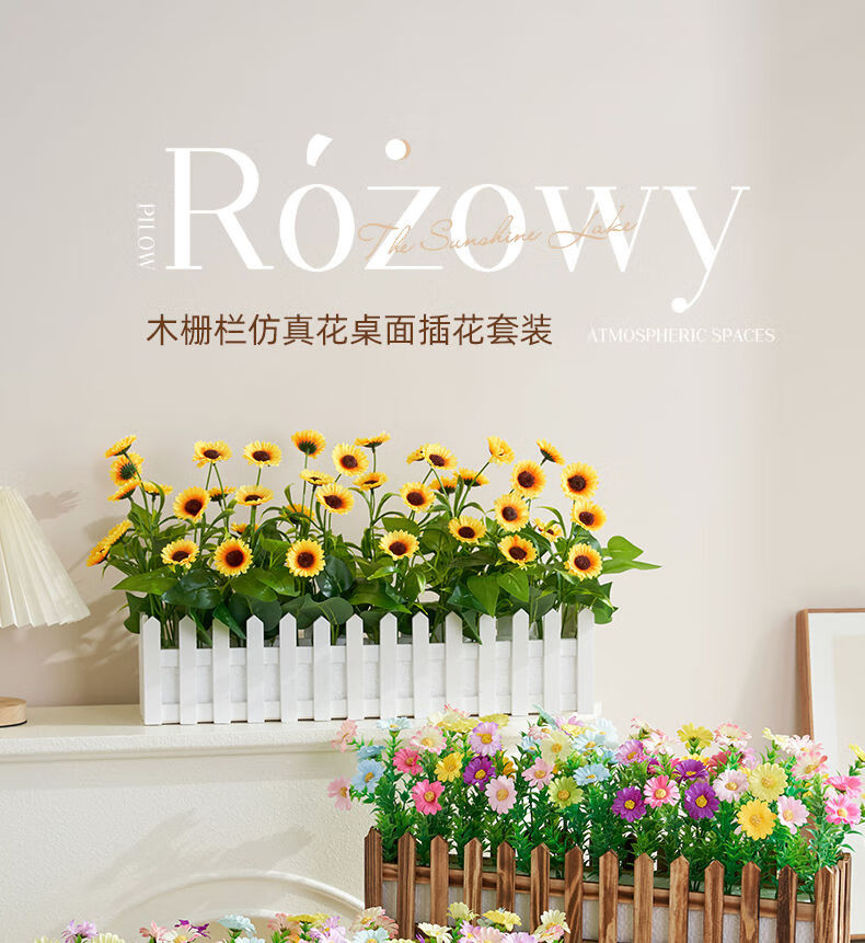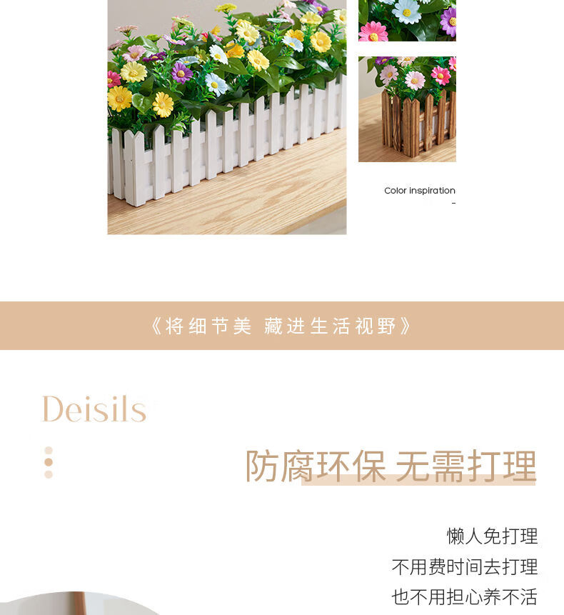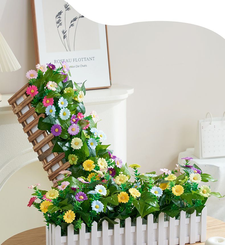 OYKTN仿真花栅栏花绿植假花客厅墙角窗台隔断遮挡装饰绿植摆设盆栽摆件 木色栅栏+玫红色香草花 长30厘米