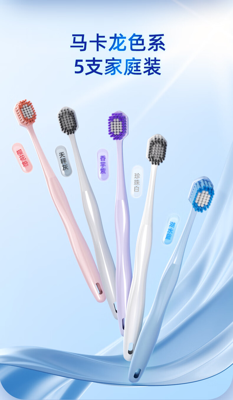 【商超同款】舒客同款加大宽头软毛牙刷细丝成人男女牙刷宽面5支 【双重植毛】柔韧双效软毛晴空版9036 5支