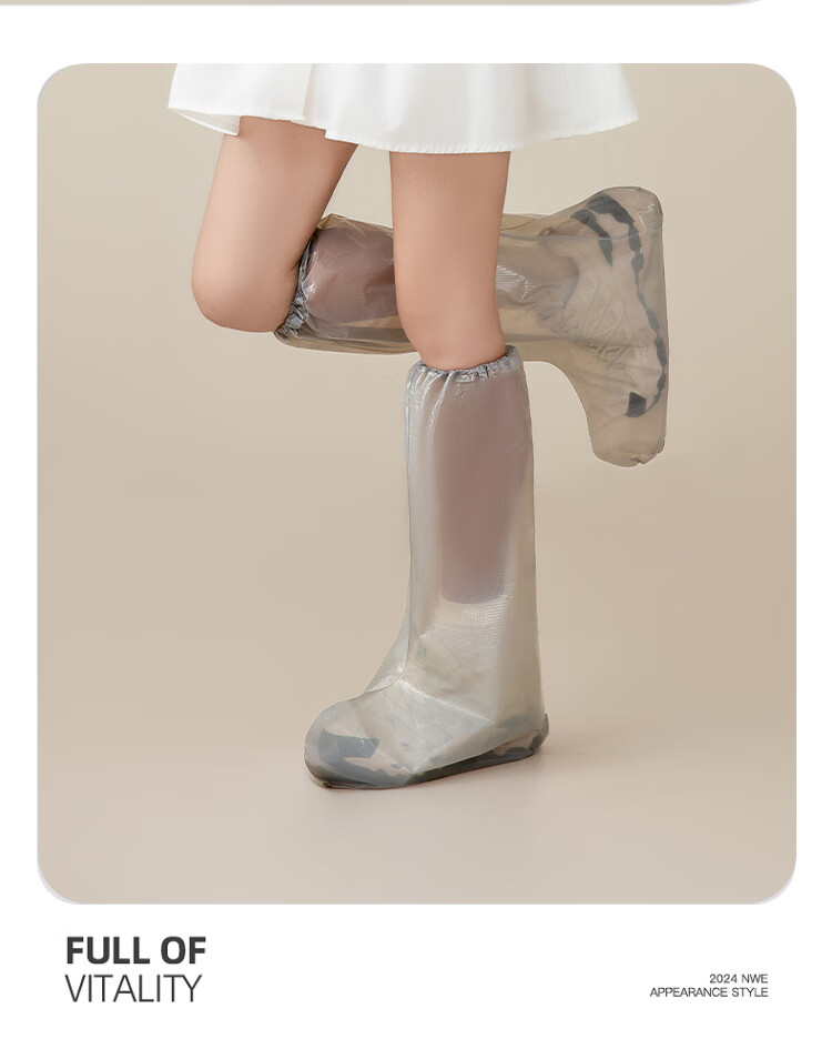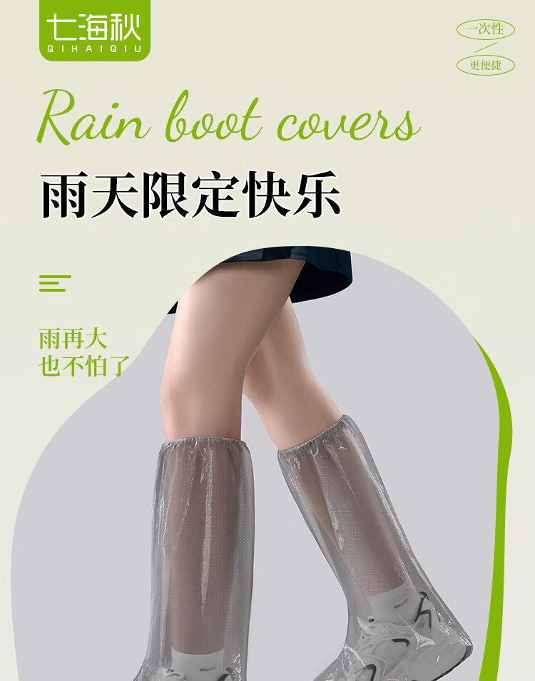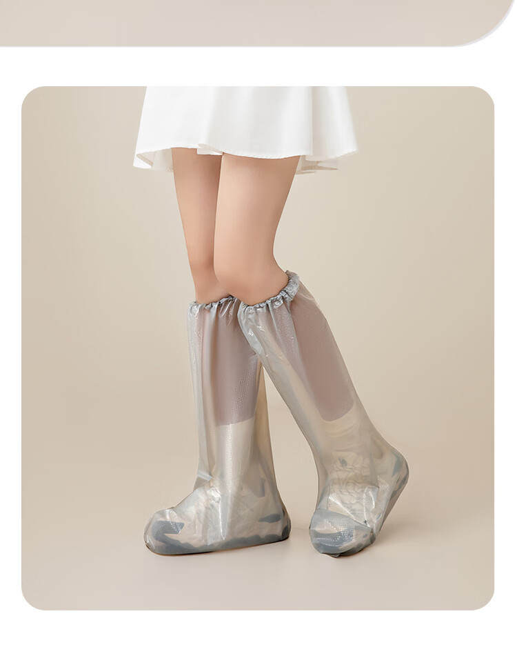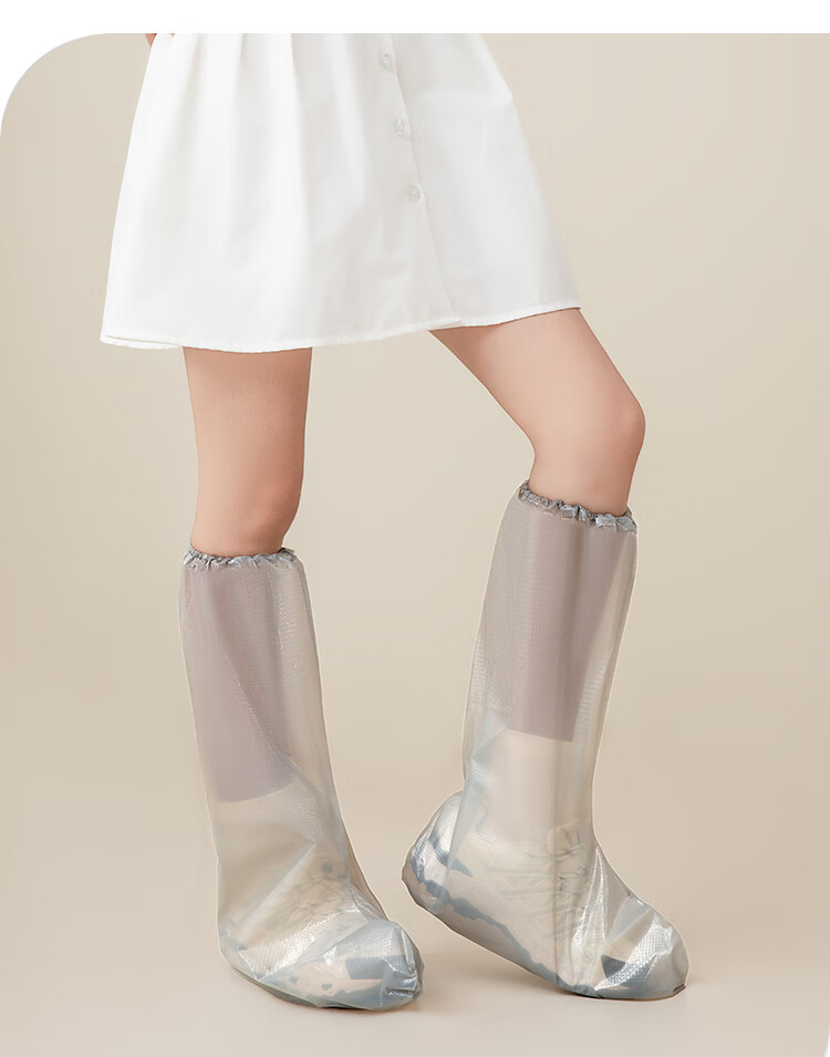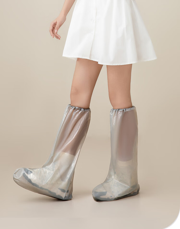 七海秋一次性雨鞋套防水防滑雨靴脚套加厚塑料男女通用鞋套长筒灰6只装