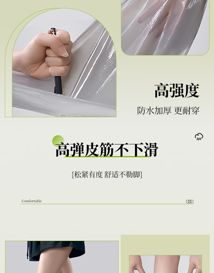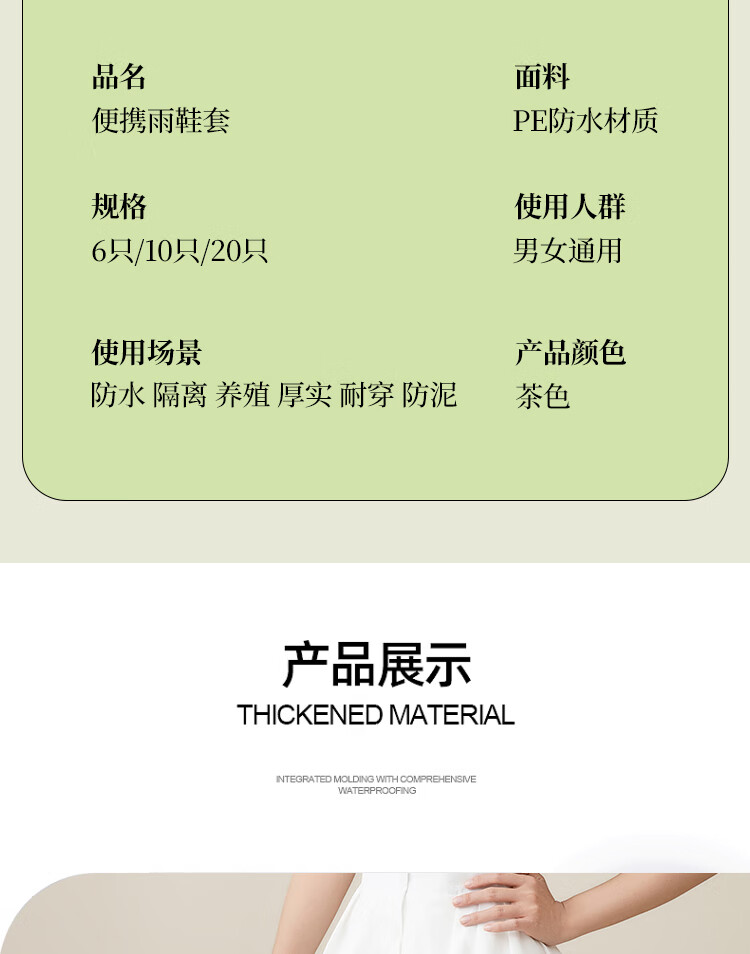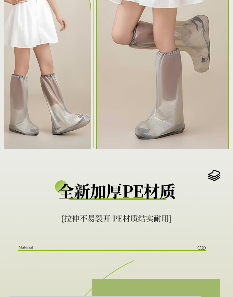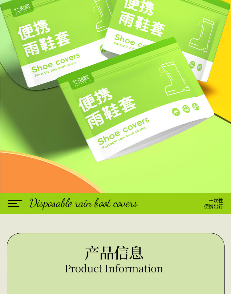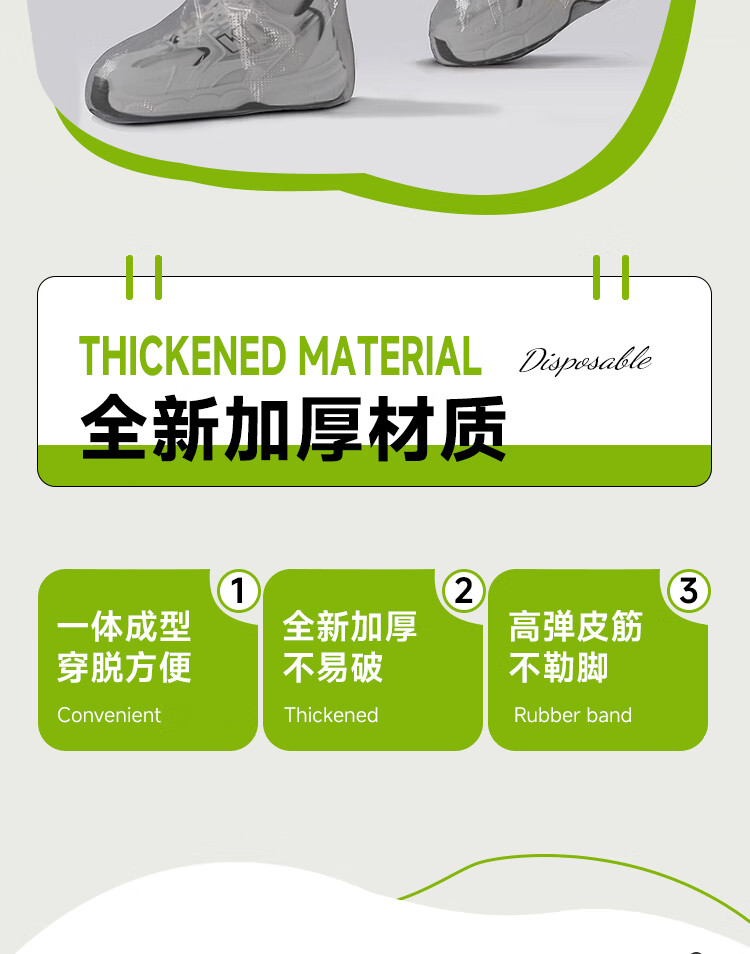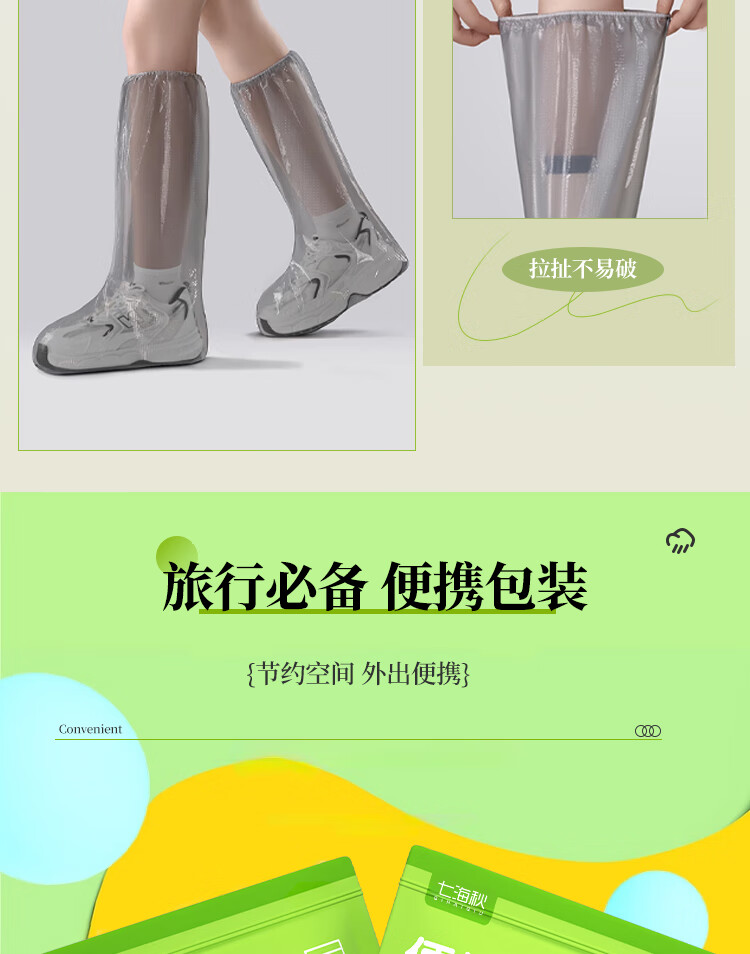 七海秋一次性雨鞋套防水防滑雨靴脚套加厚塑料男女通用鞋套长筒灰6只装