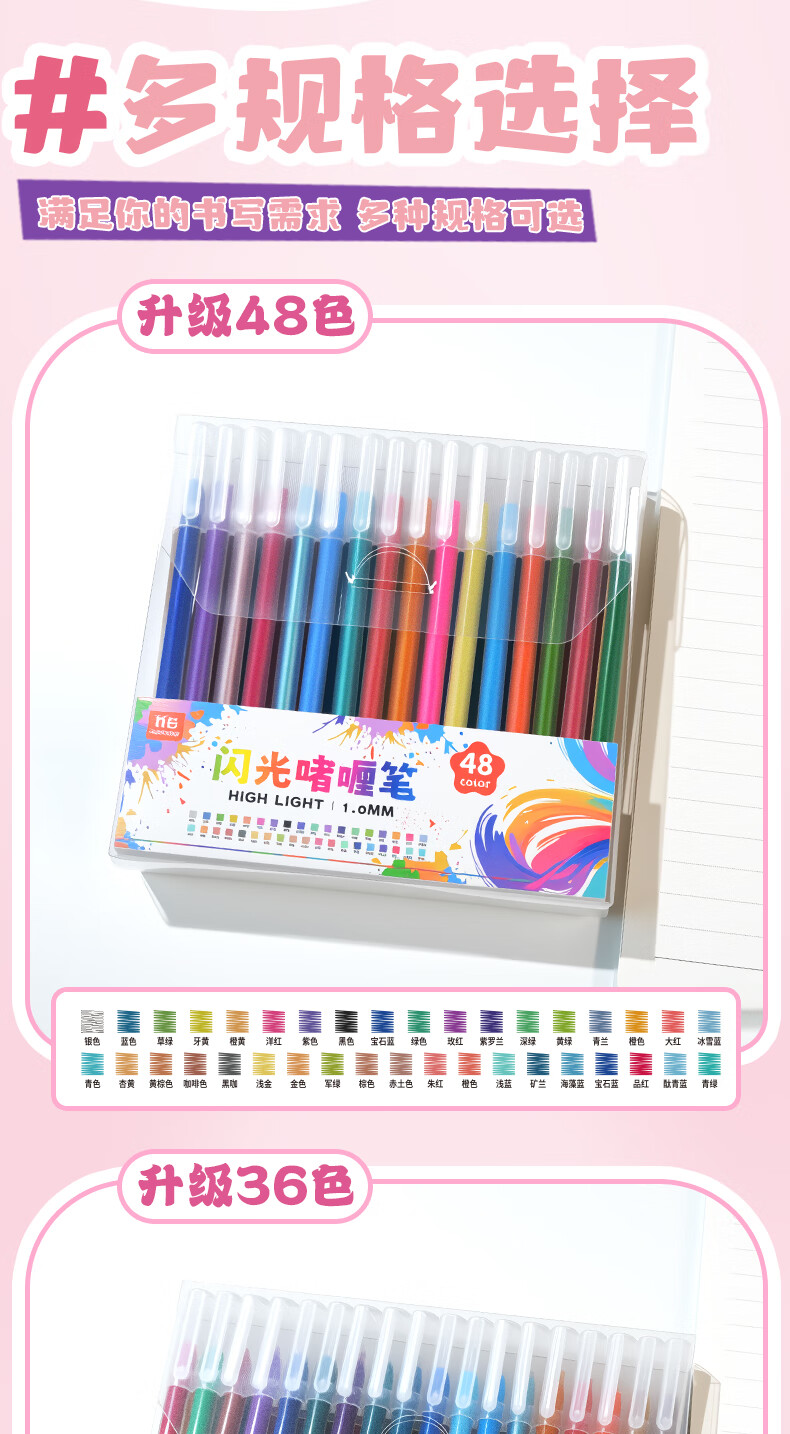 真彩(TRUECOLOR)真彩彩色闪光啫喱笔儿童亮晶晶珠光笔荧光标记笔流沙银光啫喱发光水彩笔手帐专用小学生闪粉高光笔 大容量【24色】闪光啫喱笔