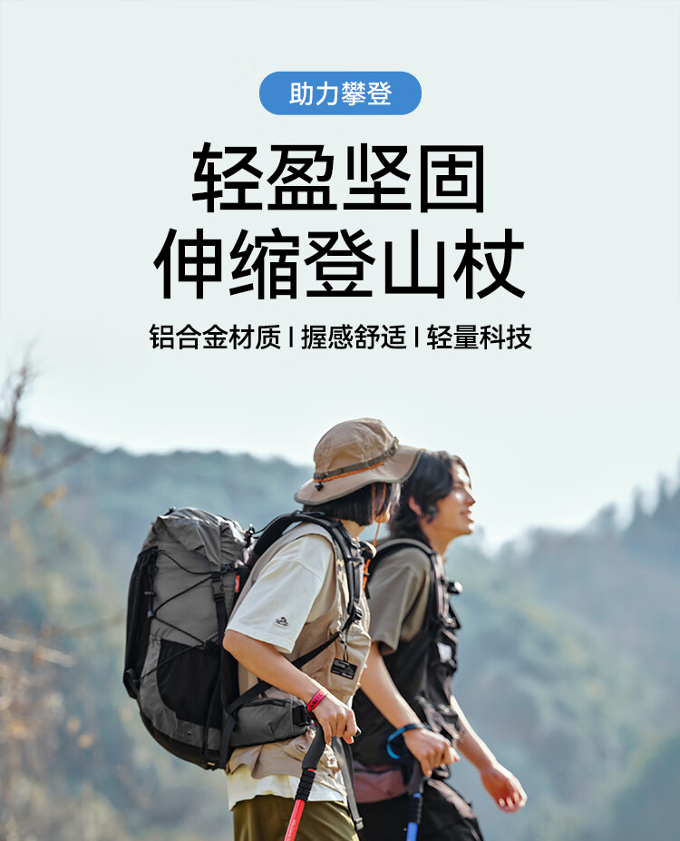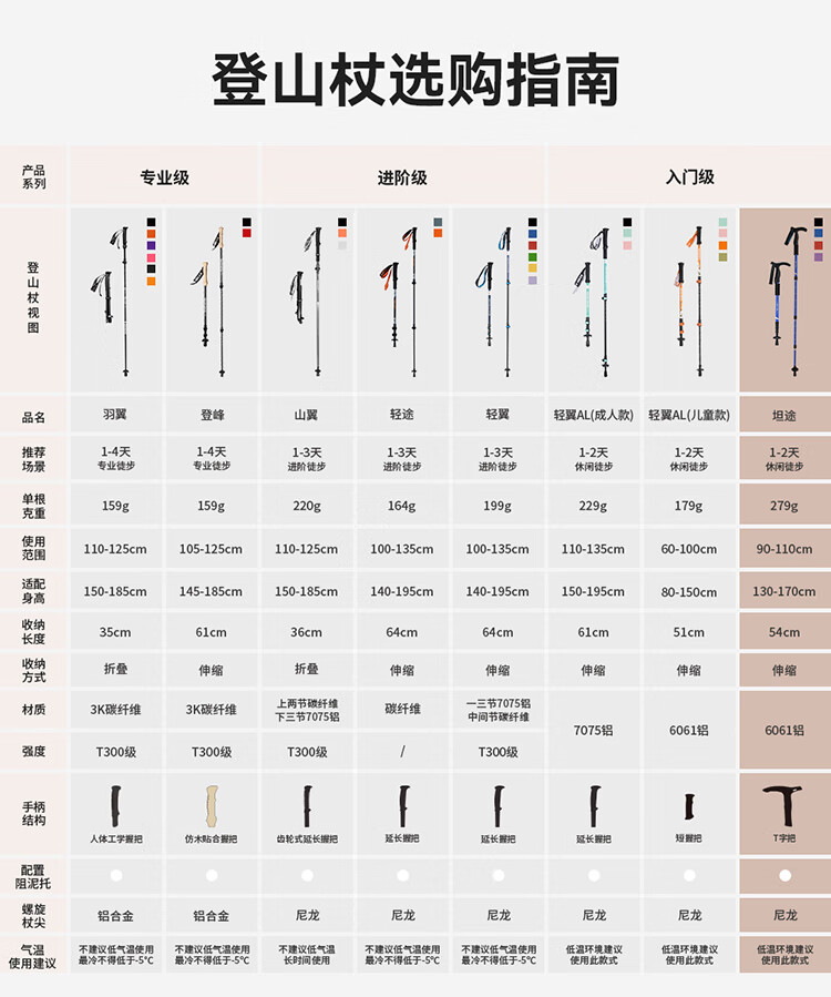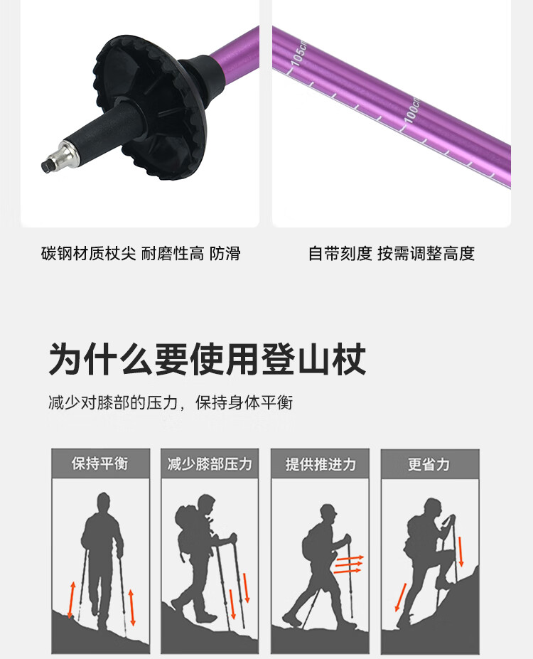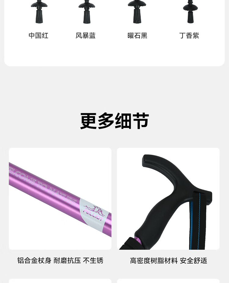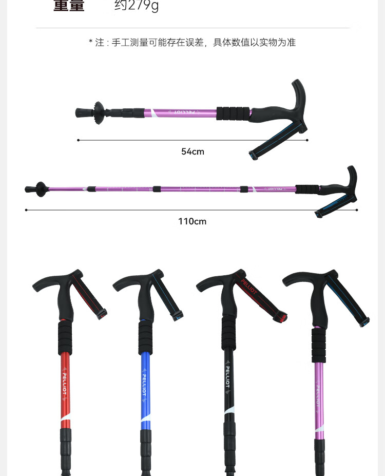 伯希和(Pelliot)户外登山杖伸缩式T柄手杖爬山拐杖铝合金徒步杖165036009丁香紫
