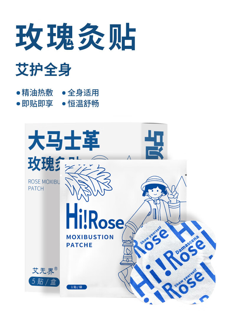 新品上市玫瑰灸贴大马士革艾草暖宫姨妈贴热敷保暖关节穴位 大马士革玫瑰艾灸贴(八盒装)