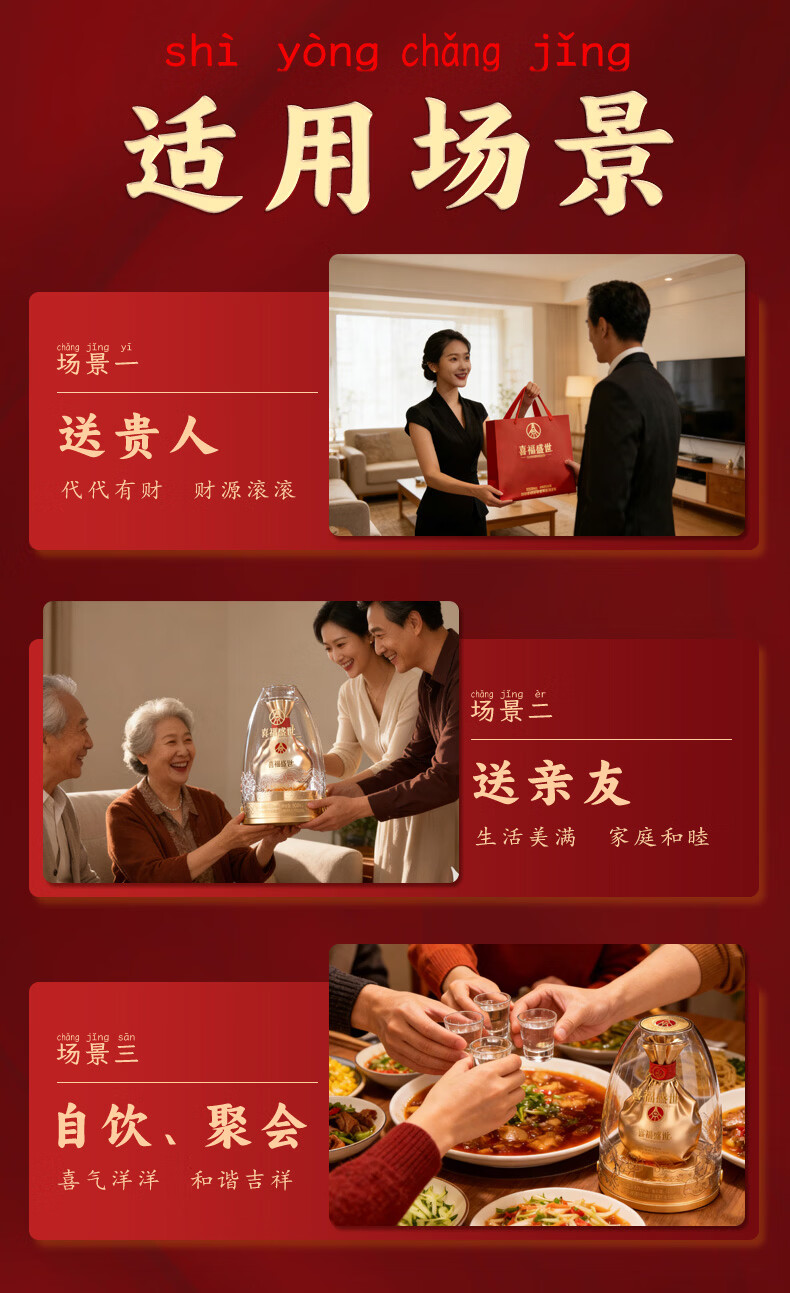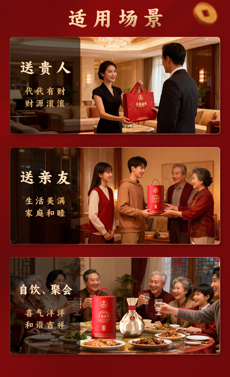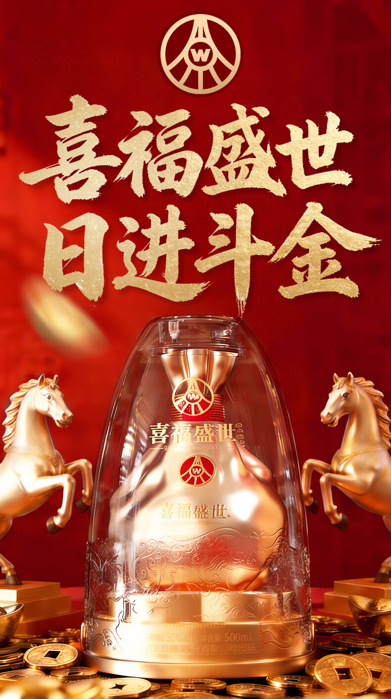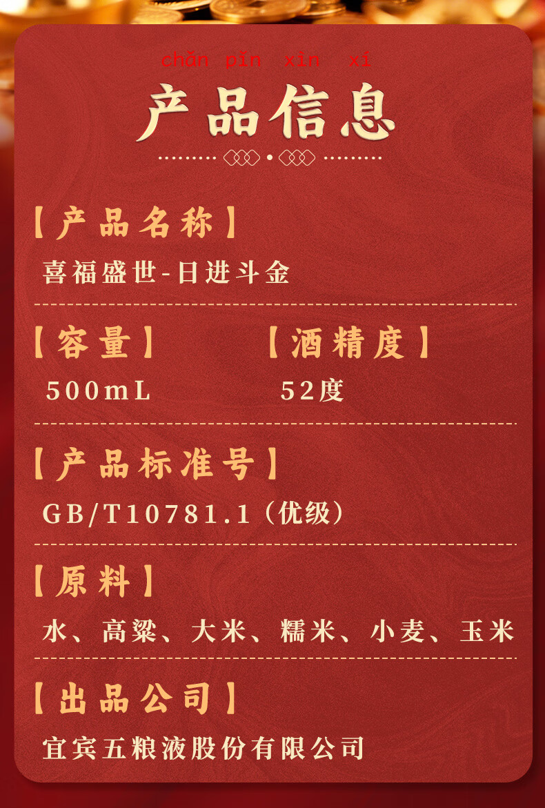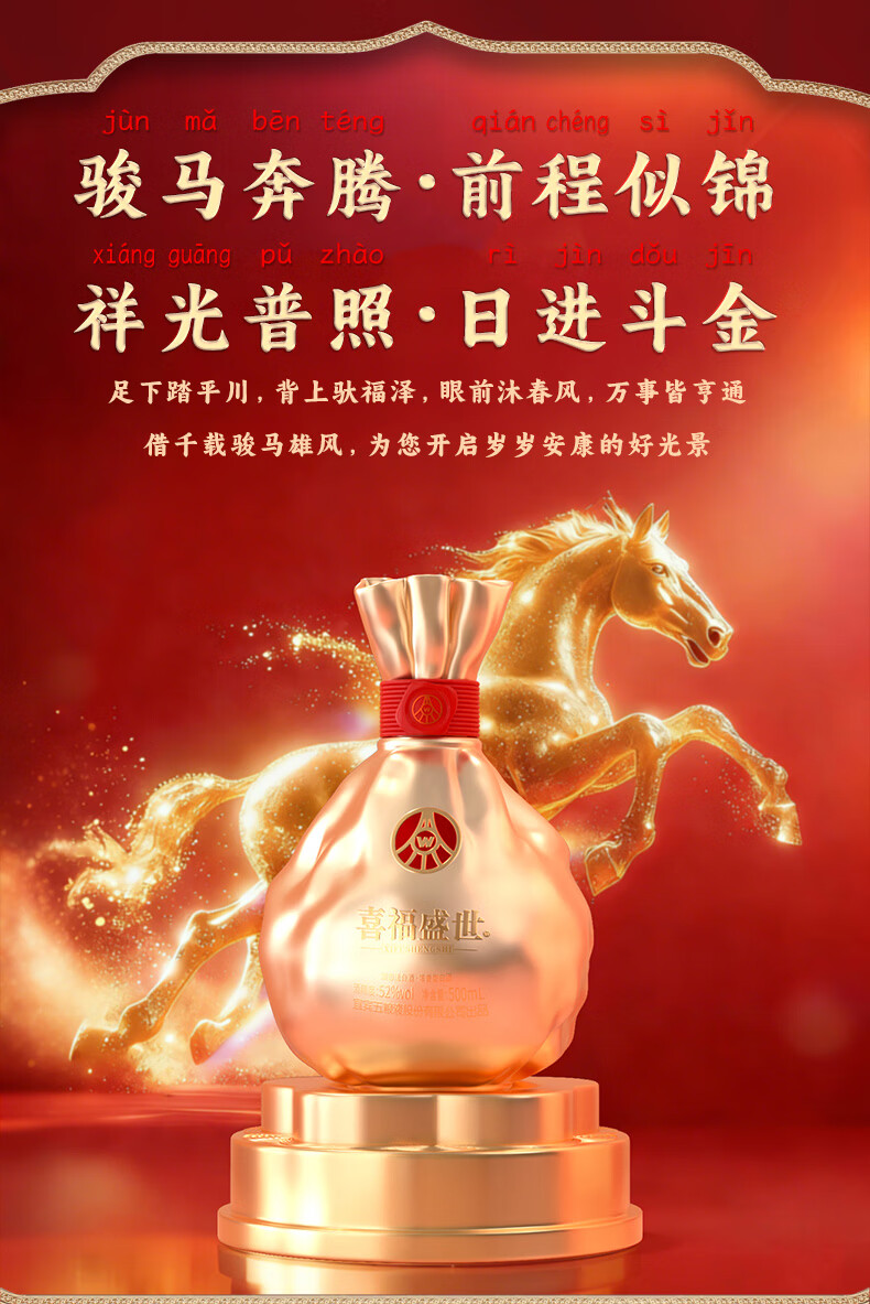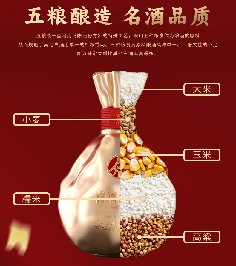 五粮浓香五粮液股份出品 官方授权 52度优级 浓香型白酒 喜福盛世 52度 500mL 2瓶 大聚鸿财双支装