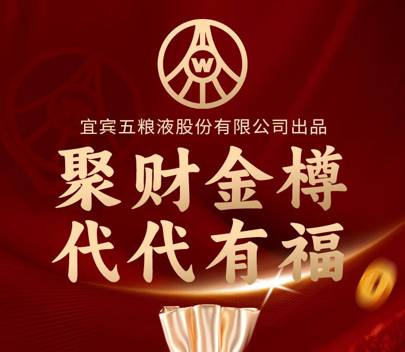 五粮浓香五粮液股份出品 官方授权 浓香型优级白酒 喜福盛世 52度 500mL 2瓶 聚财金樽双支装