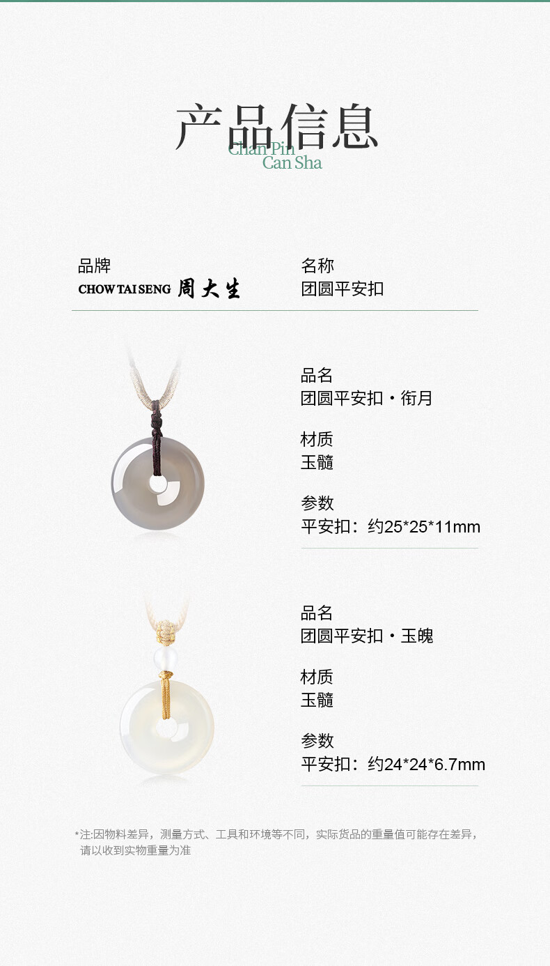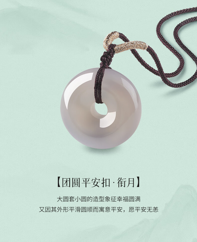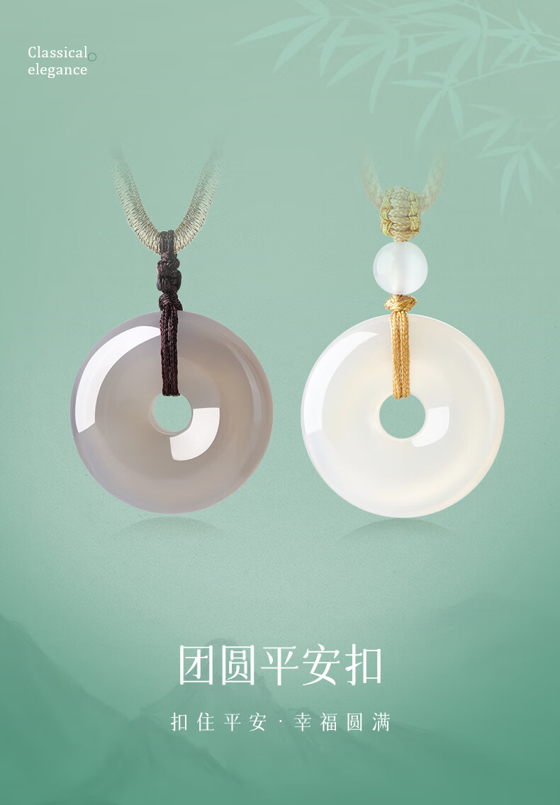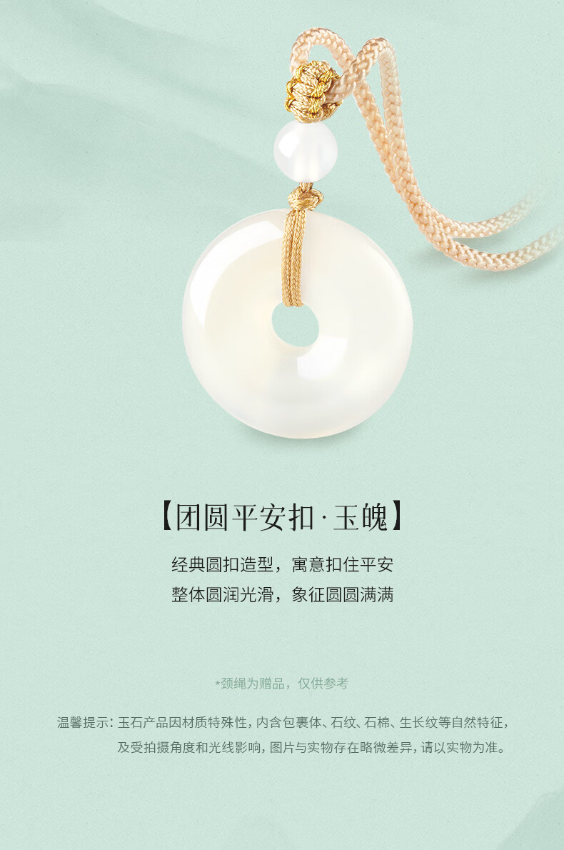 周大生高冰玉髓平安扣白月光无瑕挂件保平安招财纳福项链送女生圣诞礼物 玉魄 约24*24*6.7mm