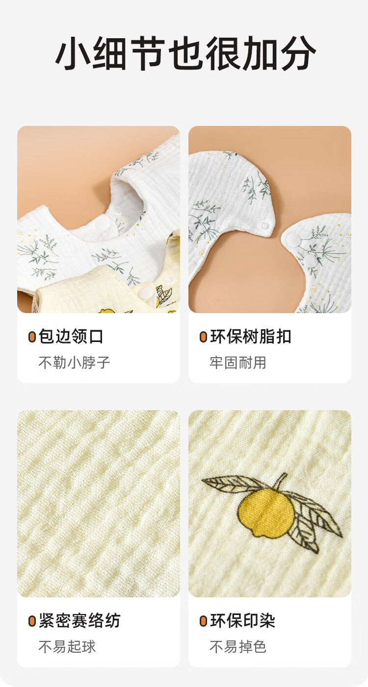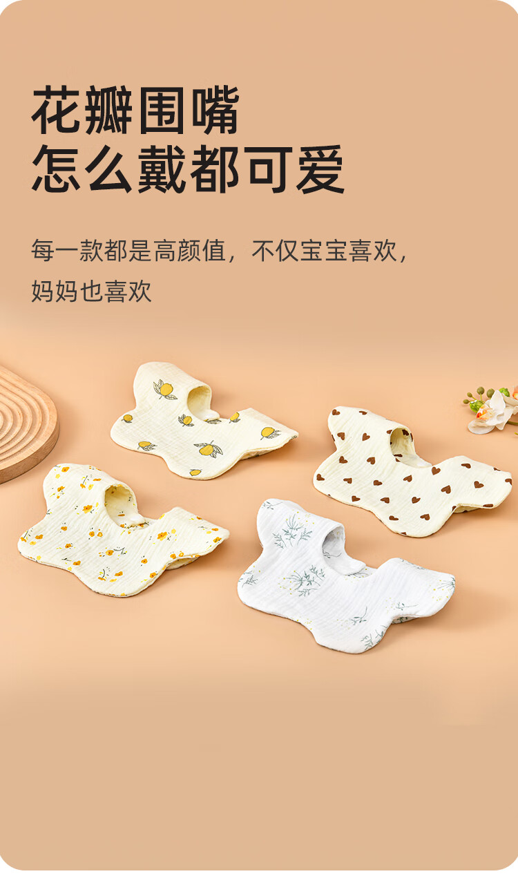 焦尼贝比围嘴婴儿口水巾纯棉宝宝围兜围脖新生儿童饭兜防吐奶垫巾口水兜 围嘴【4条装】