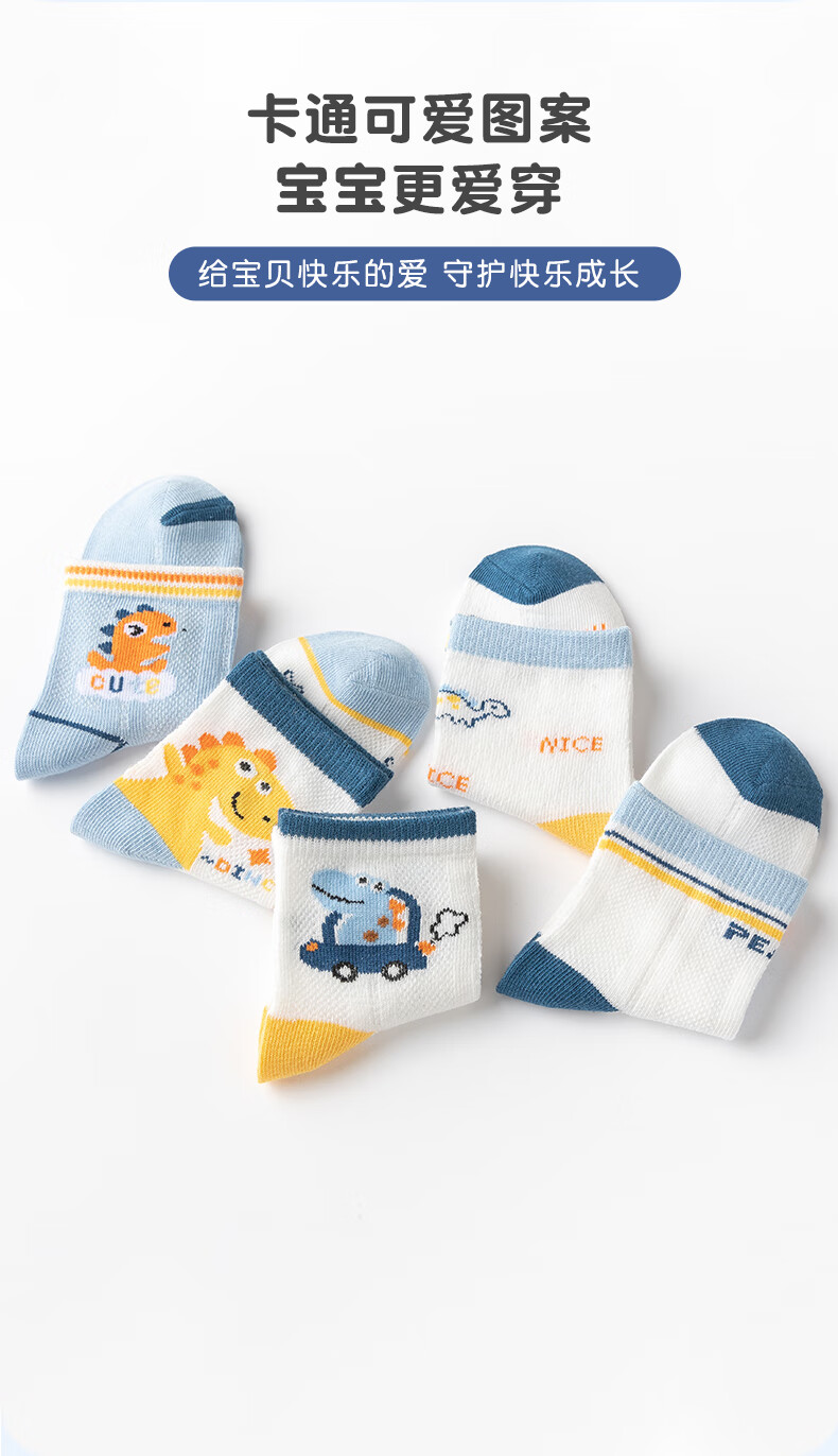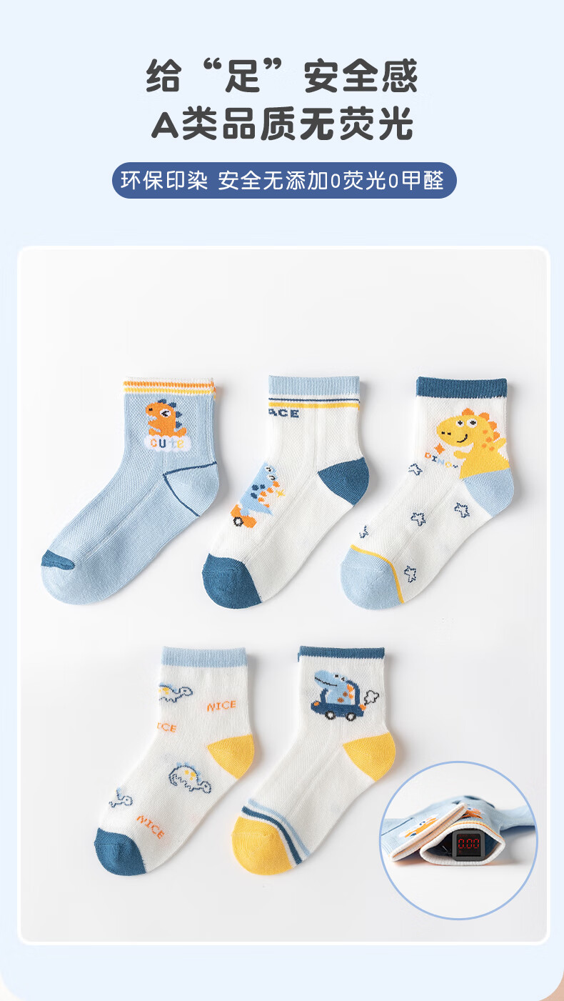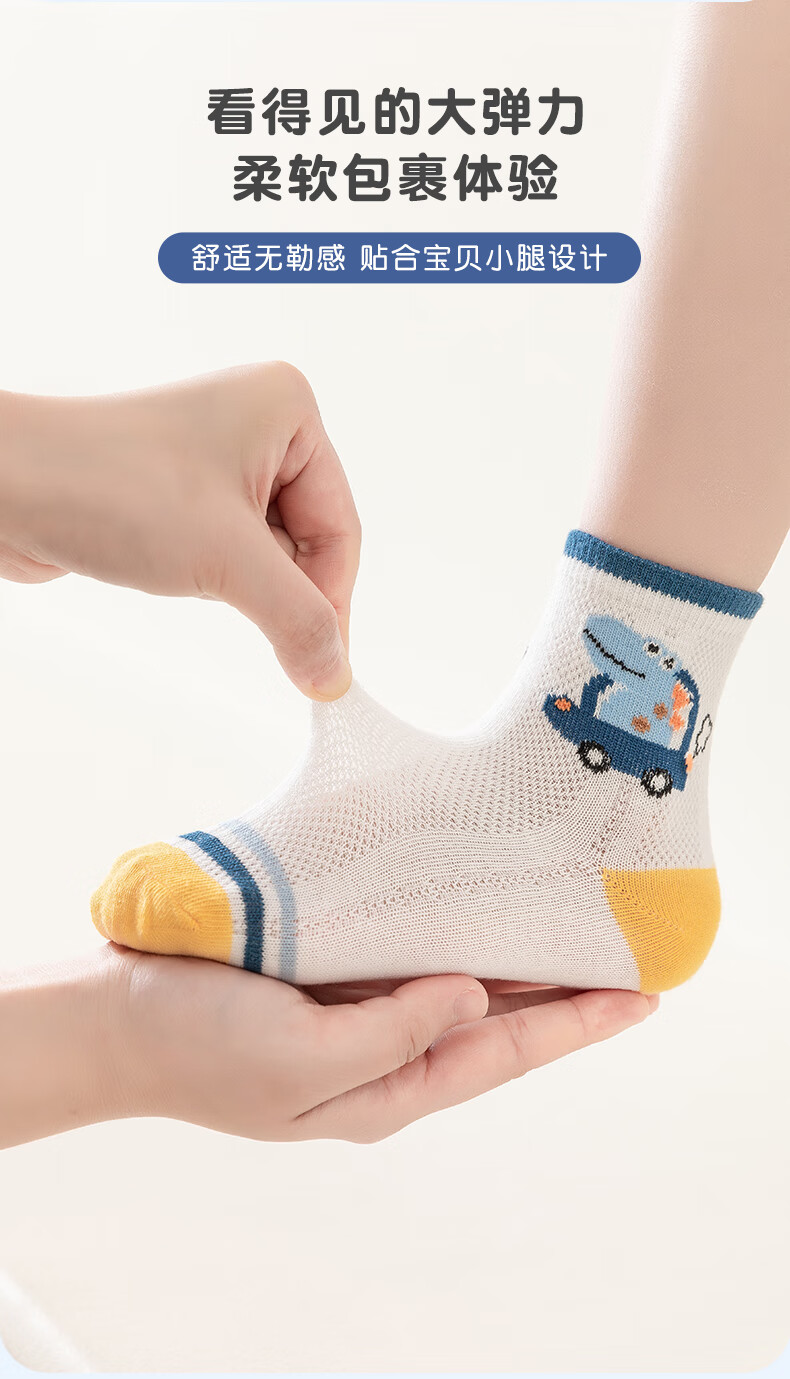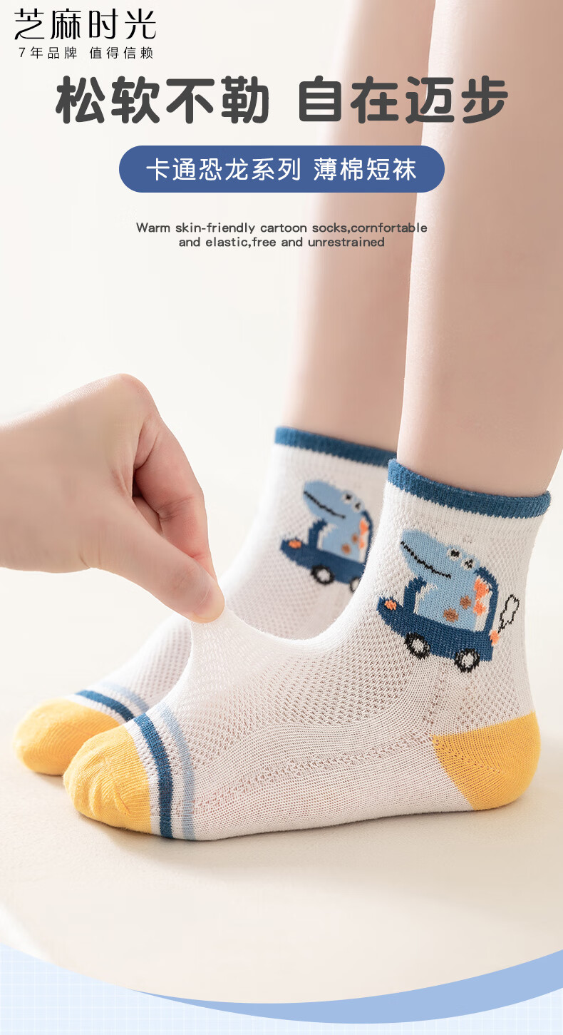 芝麻时光儿童袜子儿童袜子婴儿a类棉 透气学生1-3岁6-12岁9-12岁 条纹混色 10双 3-5岁 【M码】