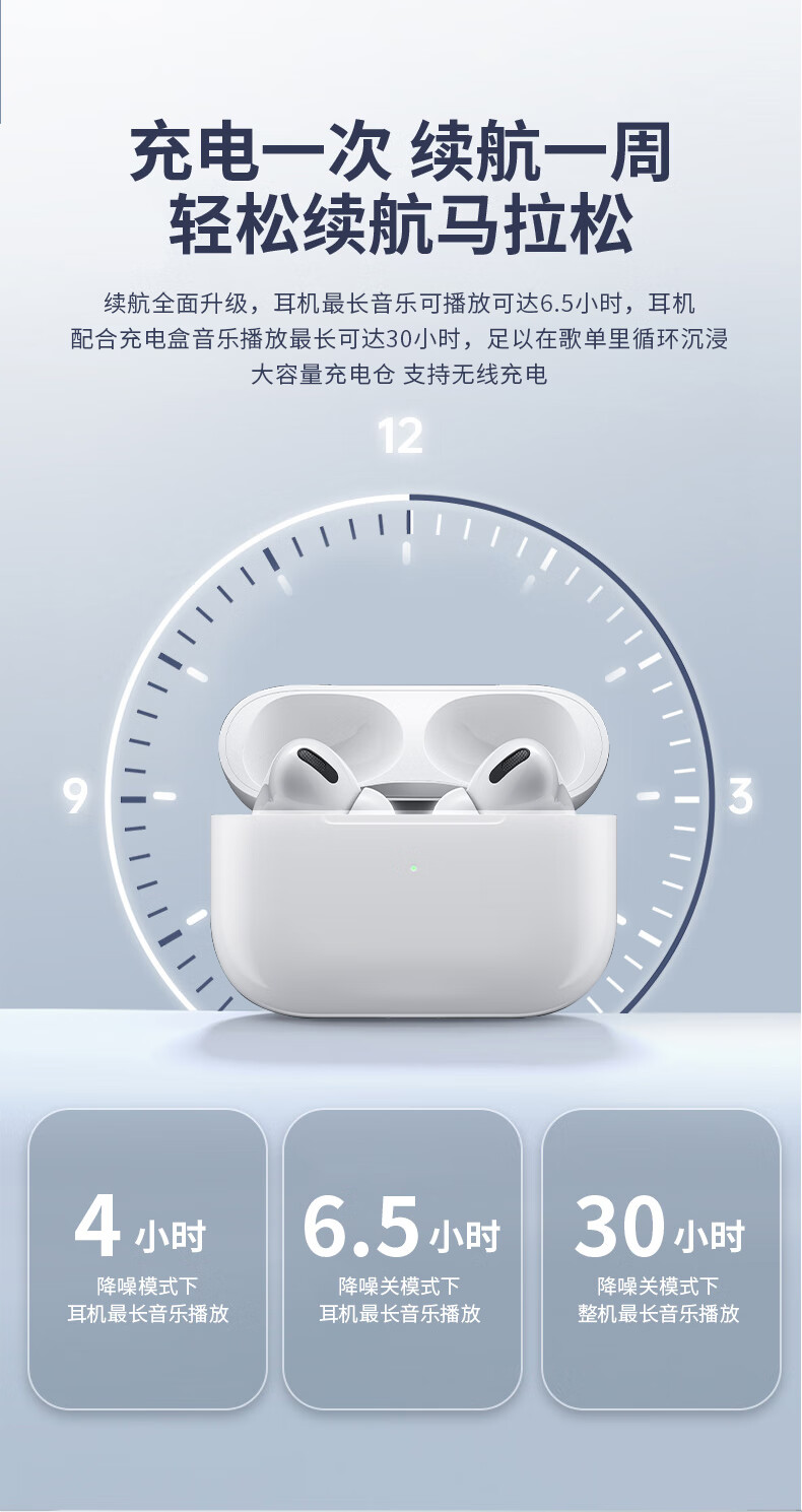 华强北3代air顶配2025真无线主动降噪适用苹果安卓手机蓝牙耳机 白色 杜比环绕音质 2025下半年华强北最新