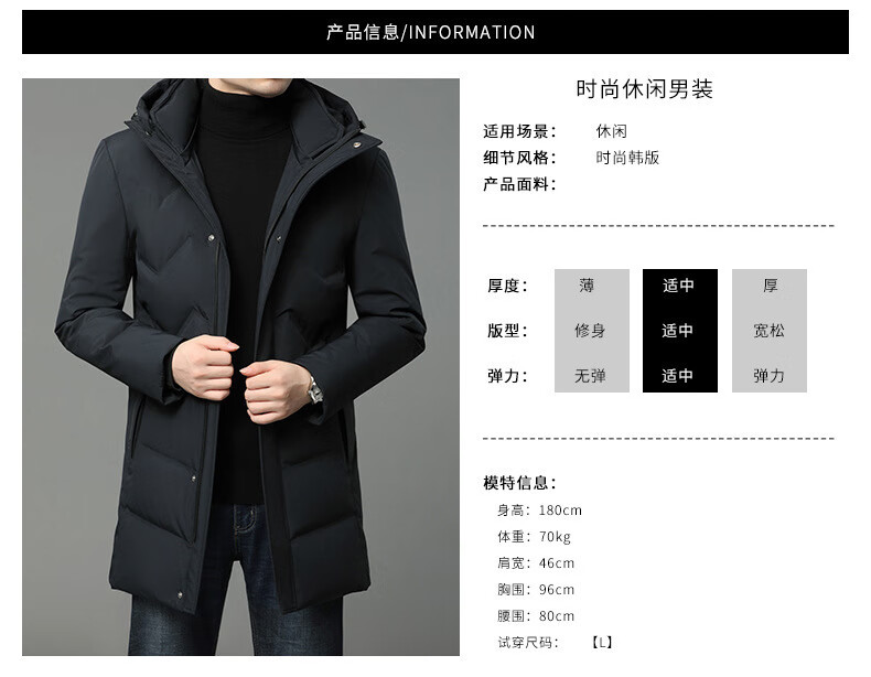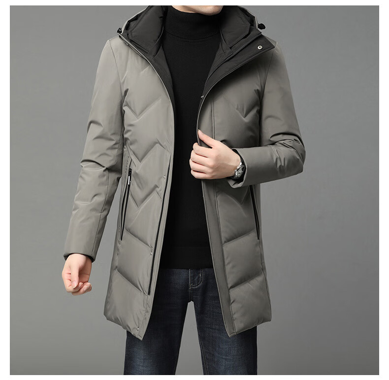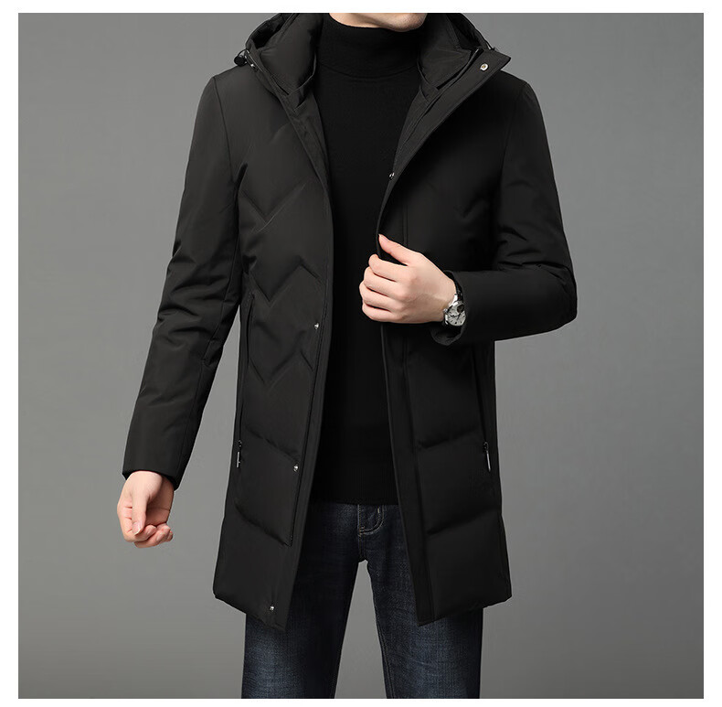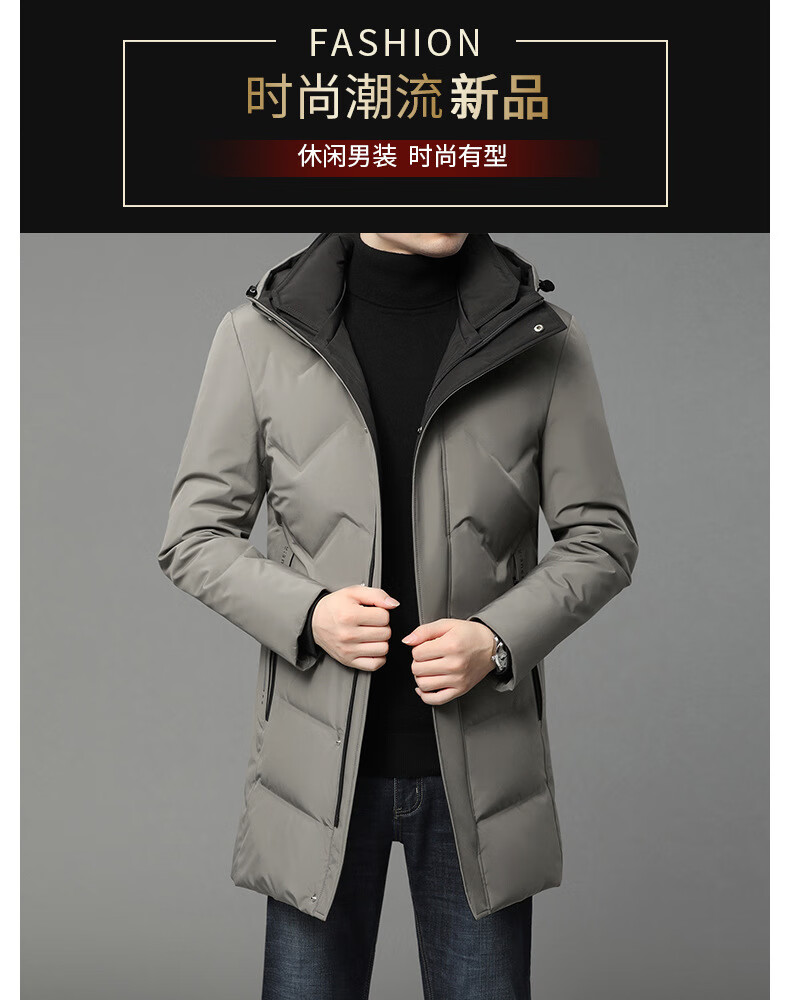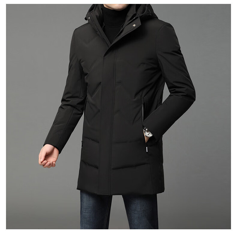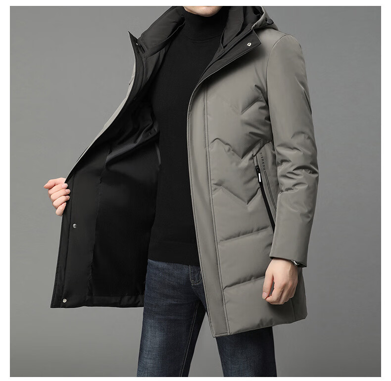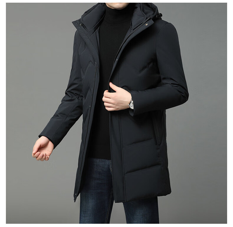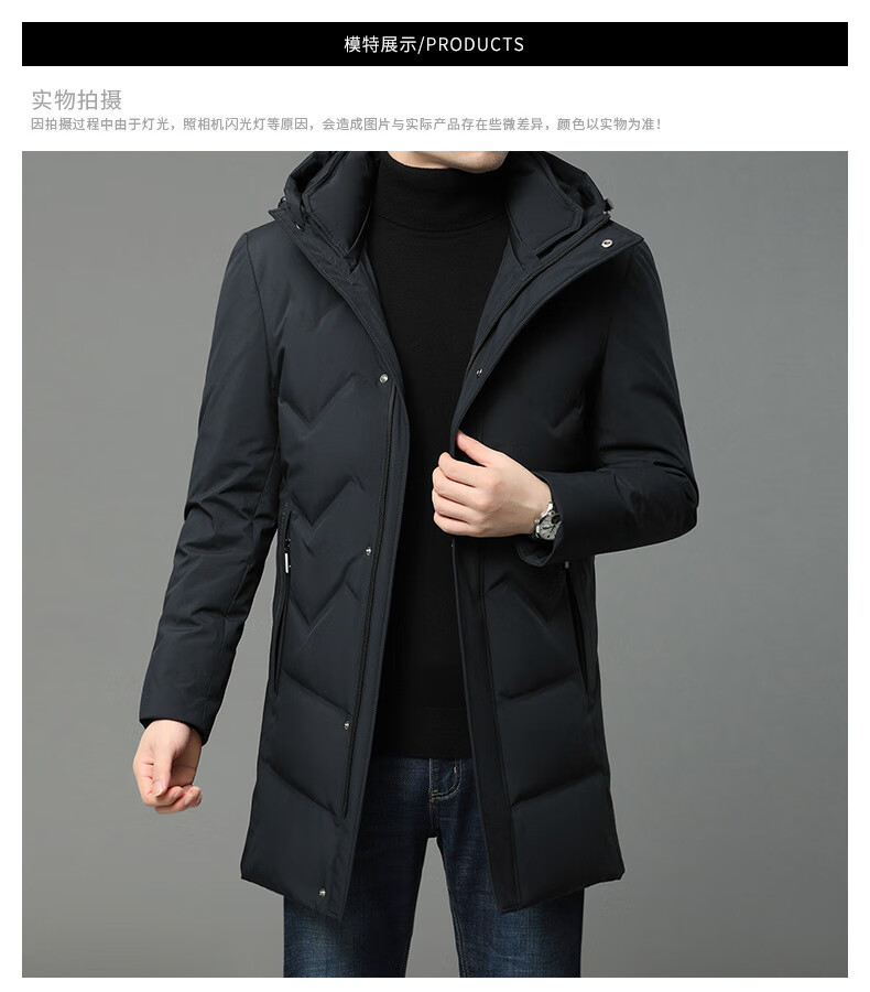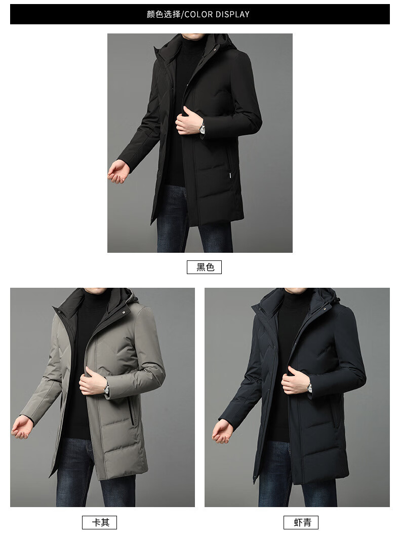 GOLDLION G+金利来冬季白鸭绒男士羽绒服中长款连帽防寒外套男秋冬季保暖加厚 虾青 4XL 195