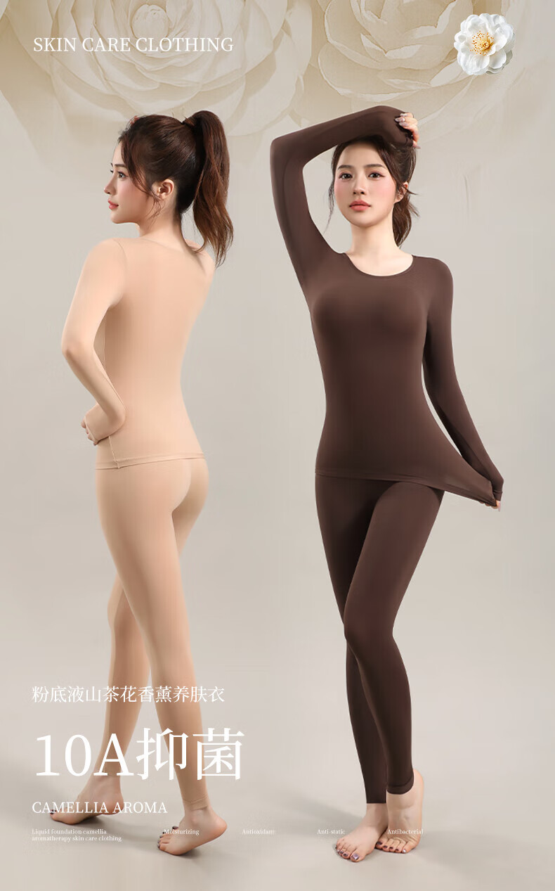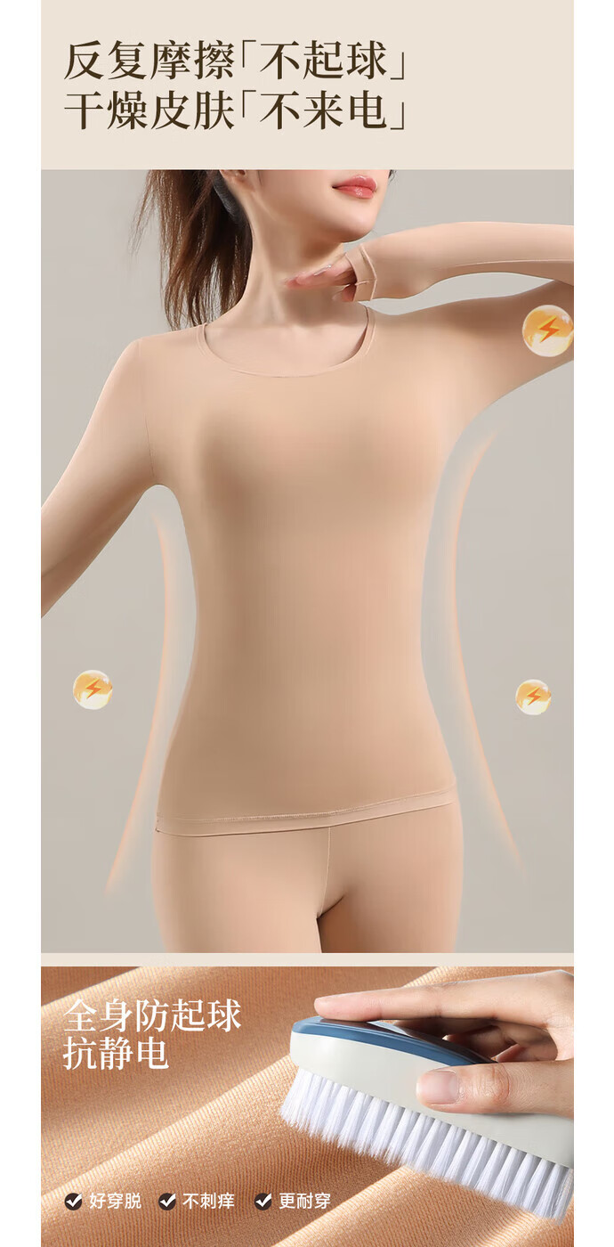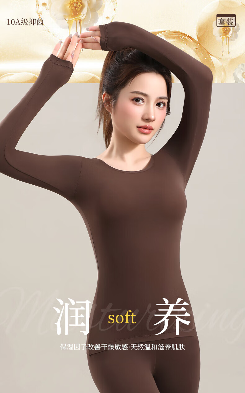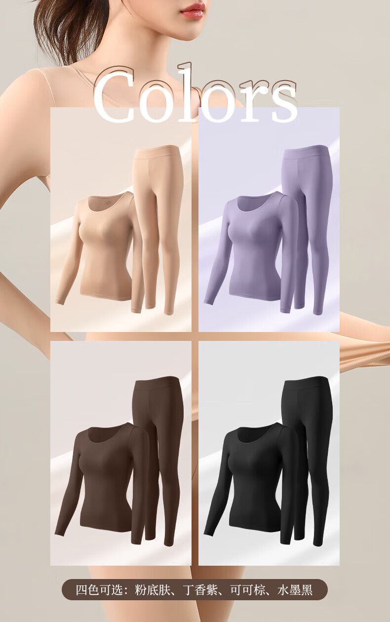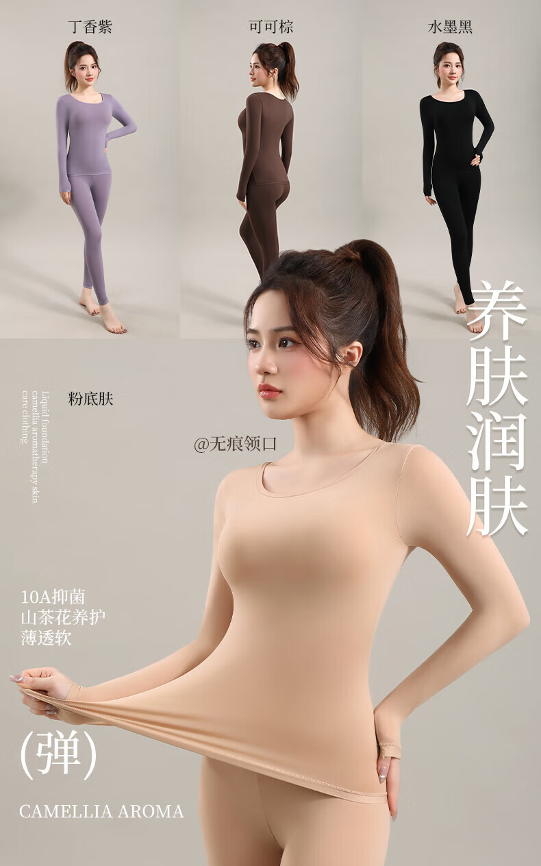 顶瓜瓜10A抗菌保暖套装女士美肤衣法式紧身长袖圆领秋冬薄款无痕内穿 丁香紫/上衣+裤子 XL