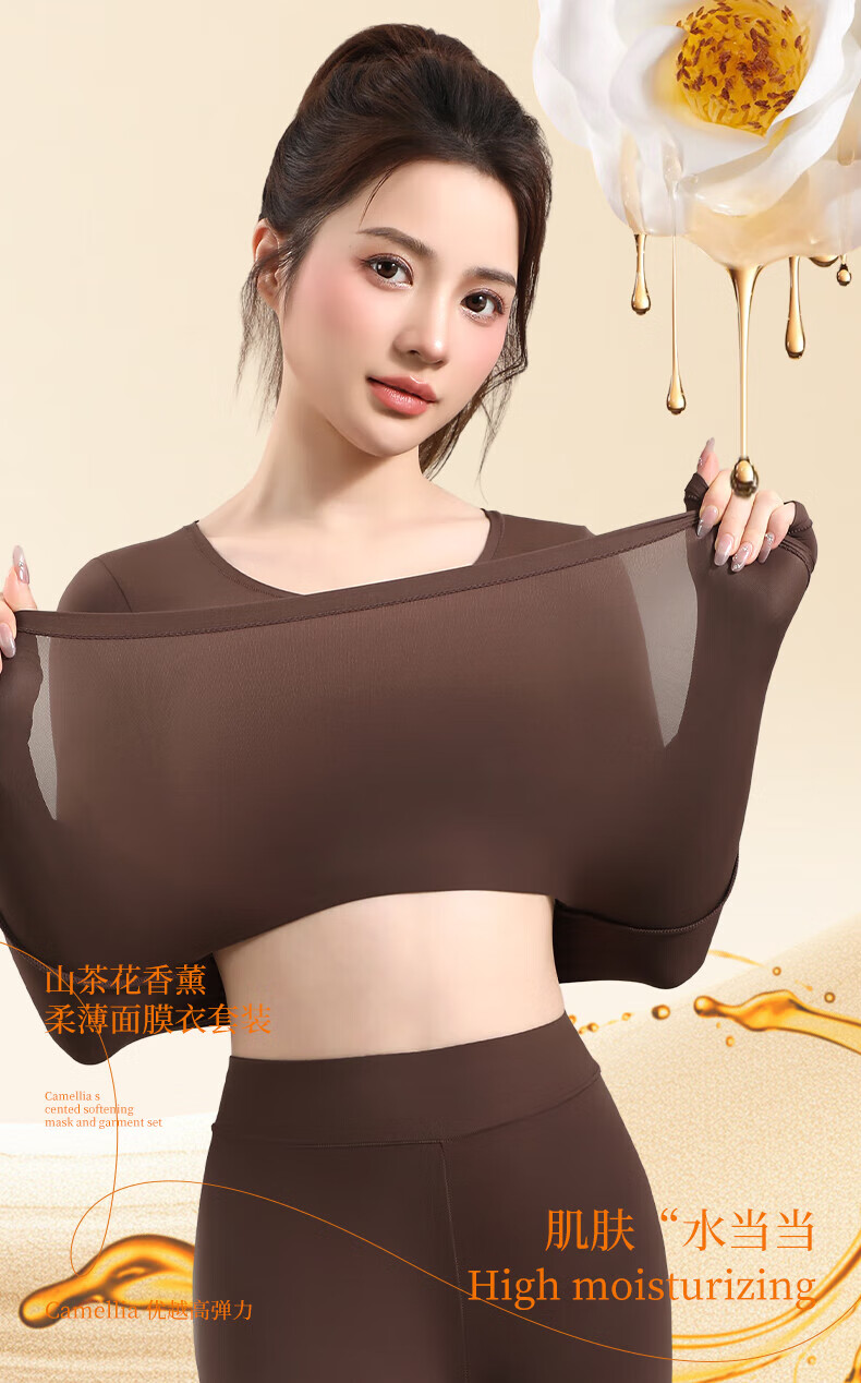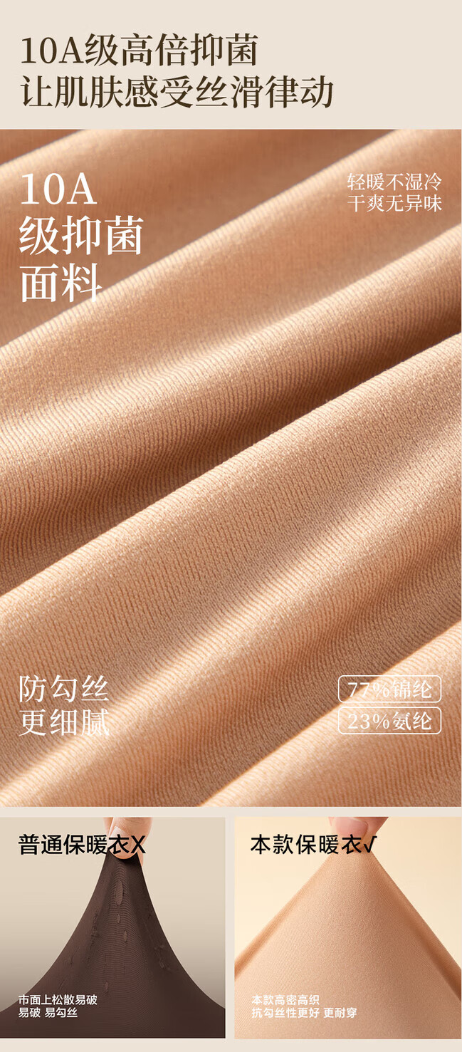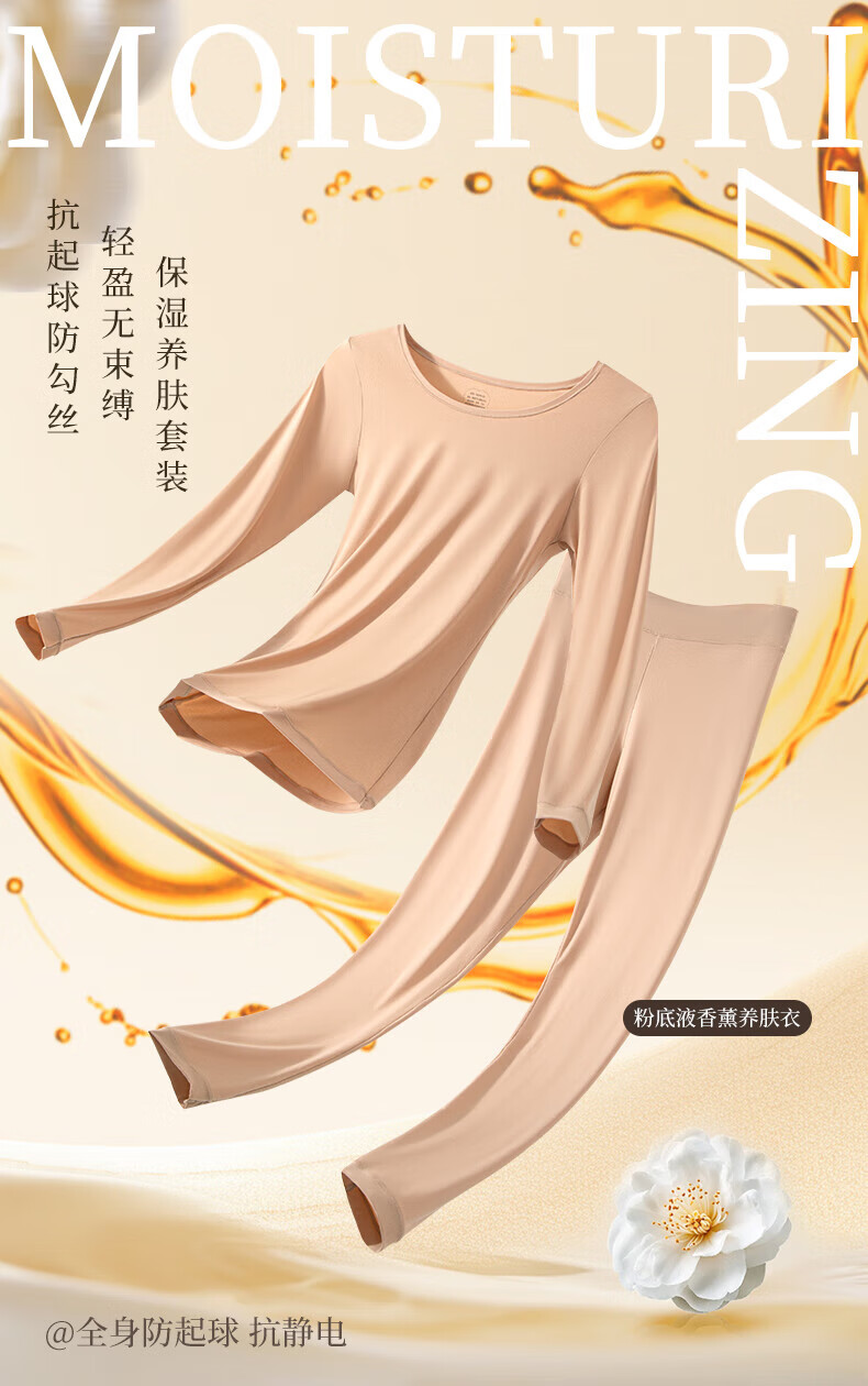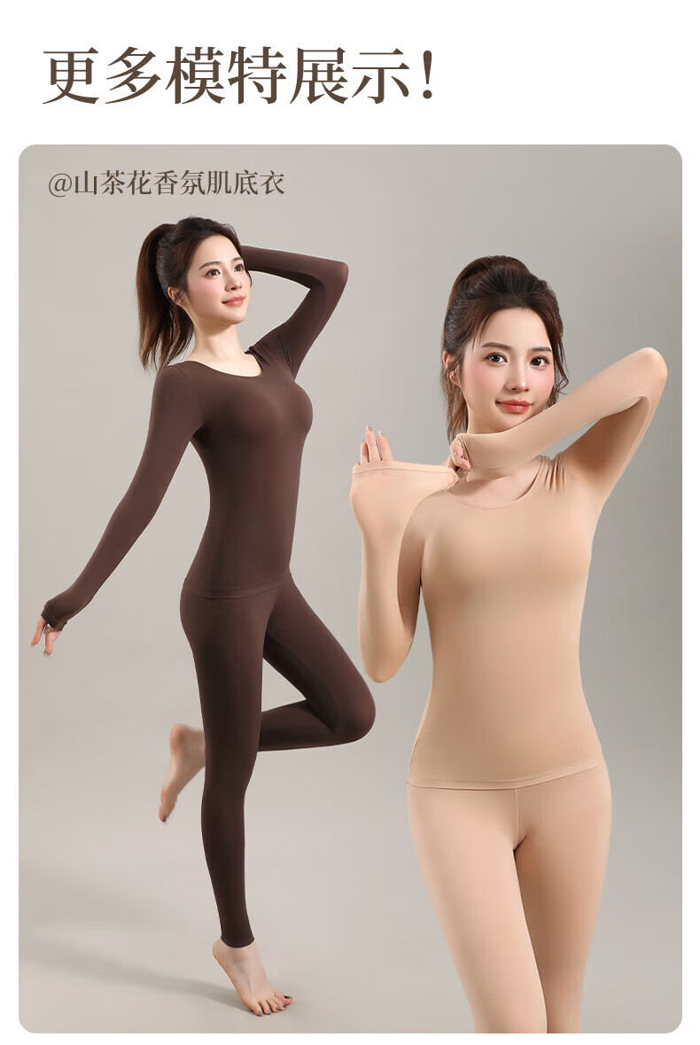 顶瓜瓜10A抗菌保暖套装女士美肤衣法式紧身长袖圆领秋冬薄款无痕内穿 丁香紫/上衣+裤子 XL