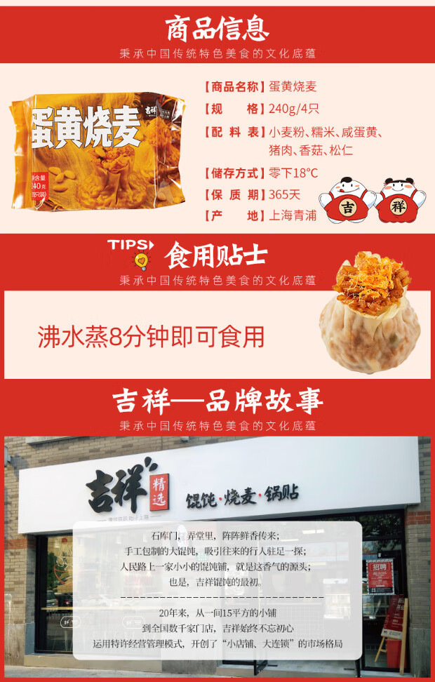 吉祥蛋黄糯米烧麦烧卖240g冷冻速食面点营养早餐半成品线下门店同款 蛋黄烧麦 4包