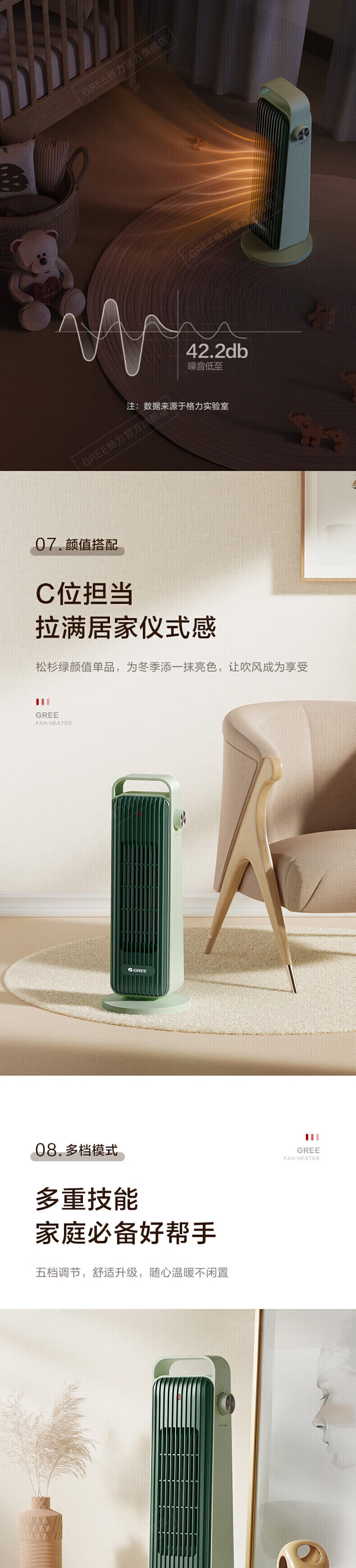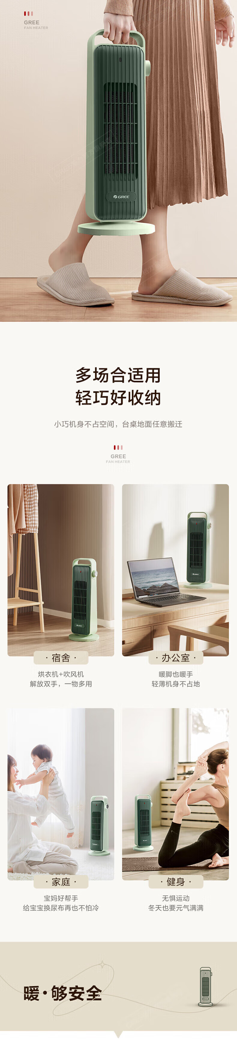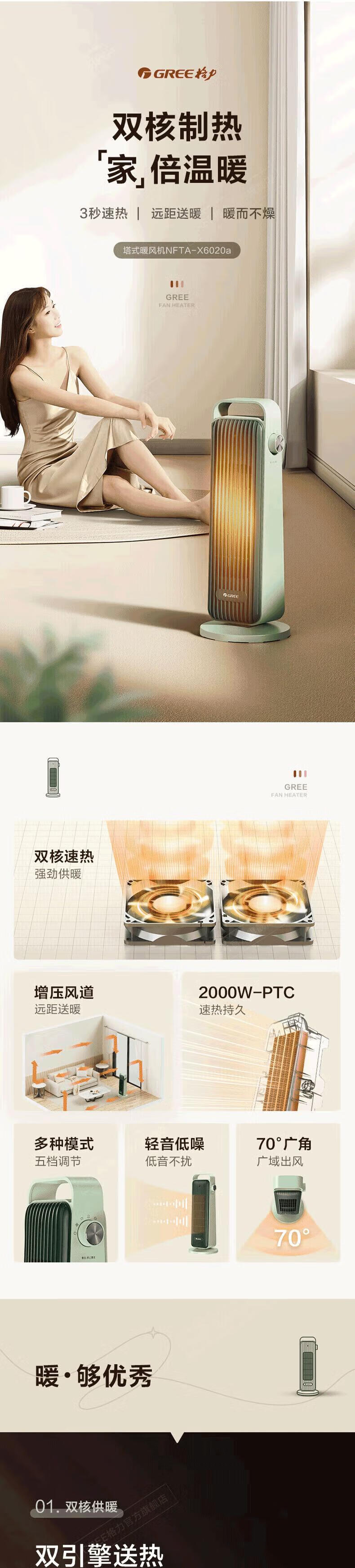格力(GREE)取暖器家用暖风机立式电暖器定时速热电暖气片客厅卧室摇头热风机 NTFG-X7022B【石墨烯AI语音款】