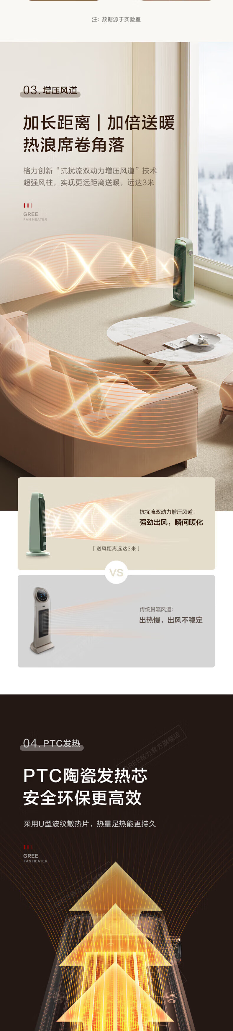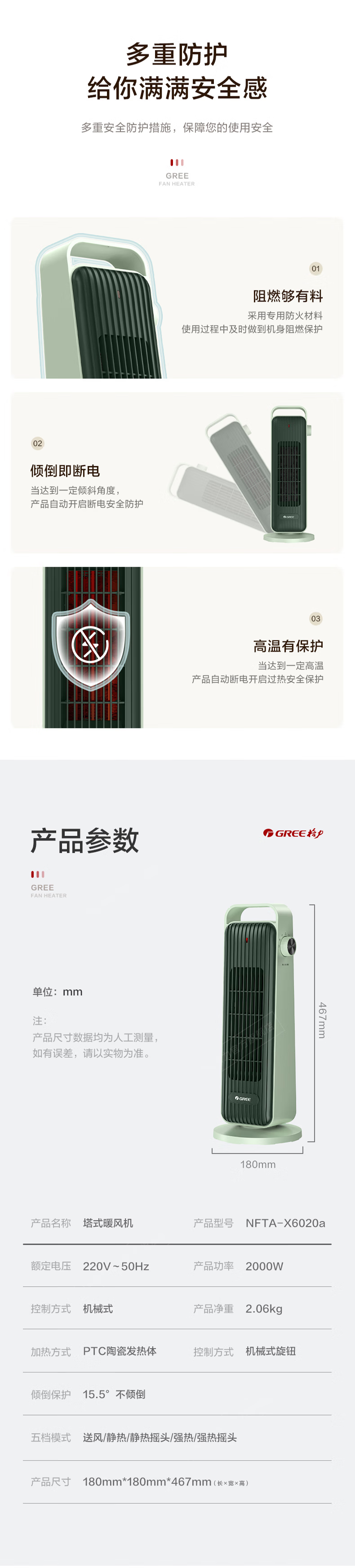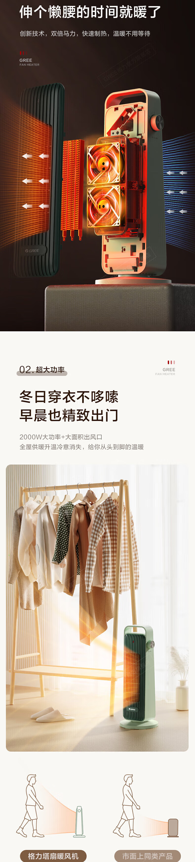 格力(GREE)取暖器家用暖风机立式电暖器定时速热电暖气片客厅卧室摇头热风机 NTFG-X7022B【石墨烯AI语音款】