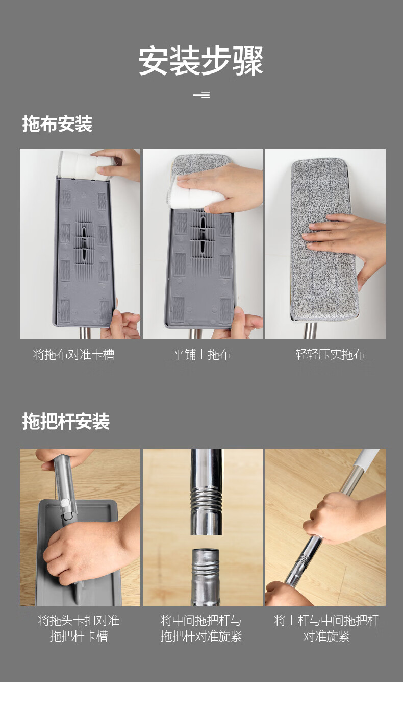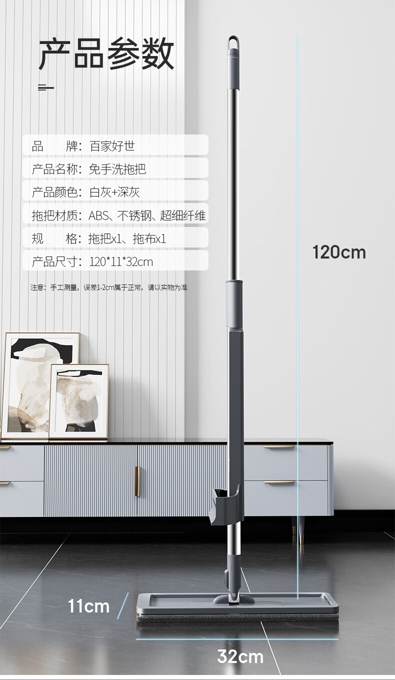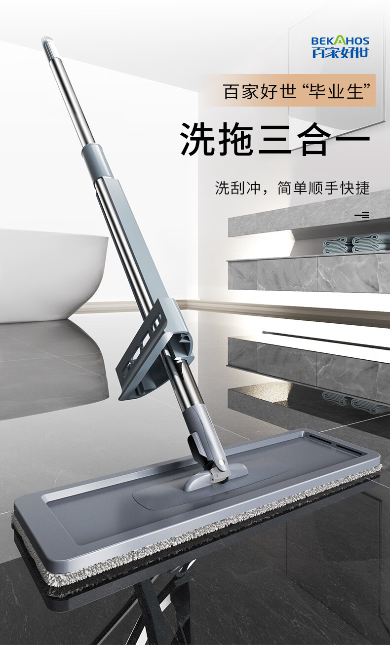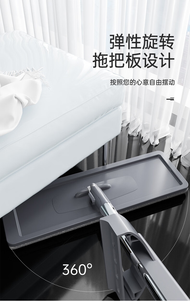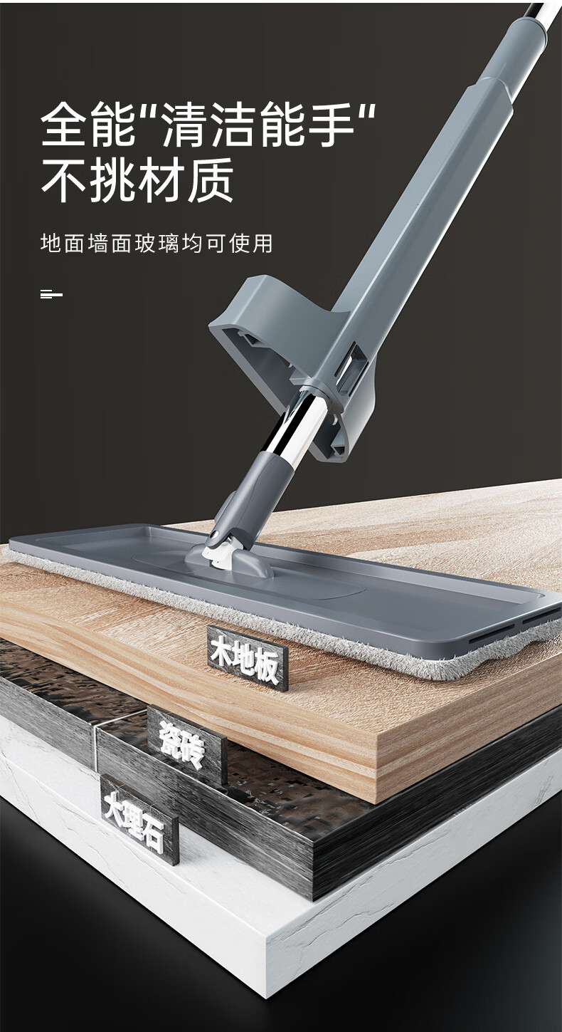 百家好世 平板拖把地板家用免手洗神器拖布头吸水擦地洗地懒人除尘通用 32cm底板平板拖把