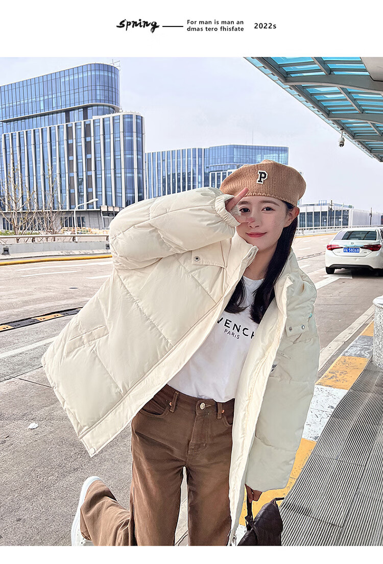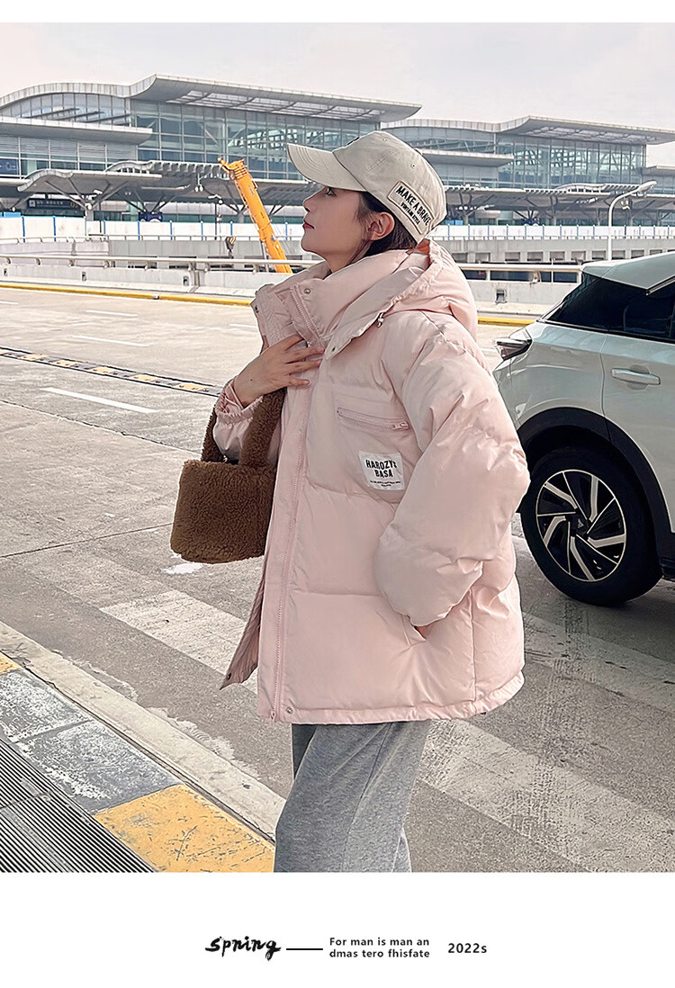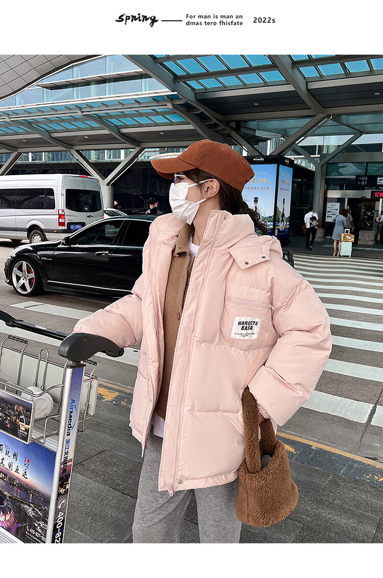 相伊恋人羽绒棉服女2025年新款冬季短款棉衣外套加厚棉袄小个子宽松面包服 粉红色【保暖透气 一件过冬】 L 码【建议125-145斤】