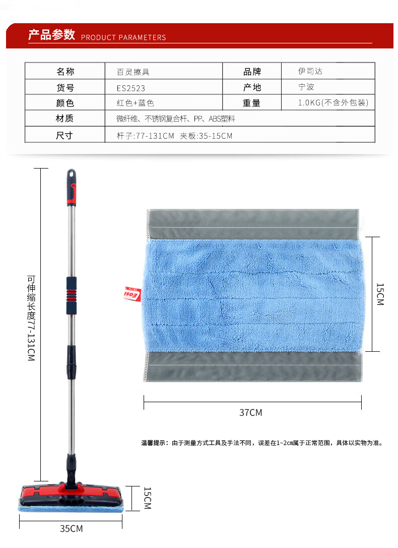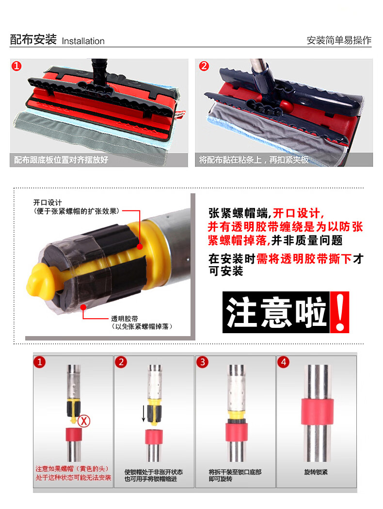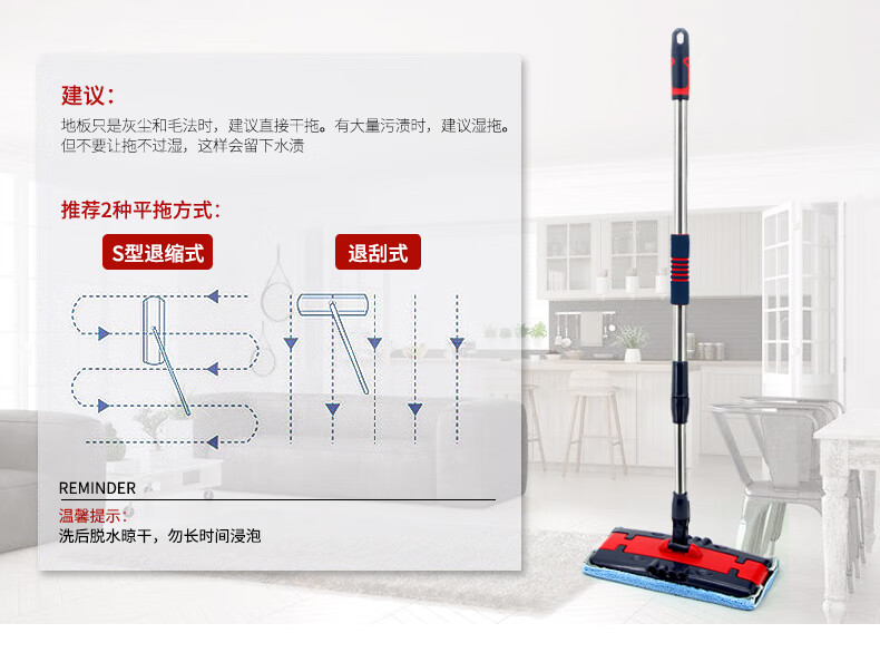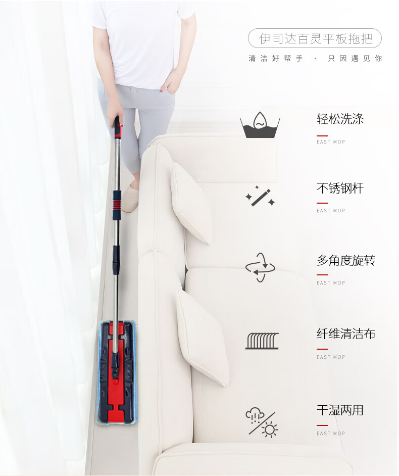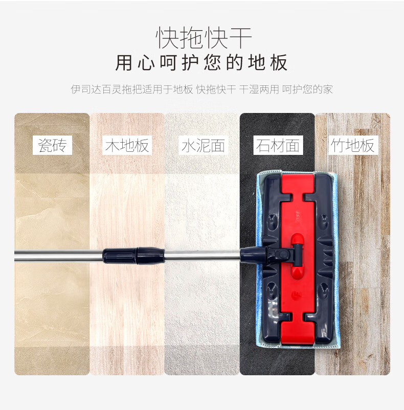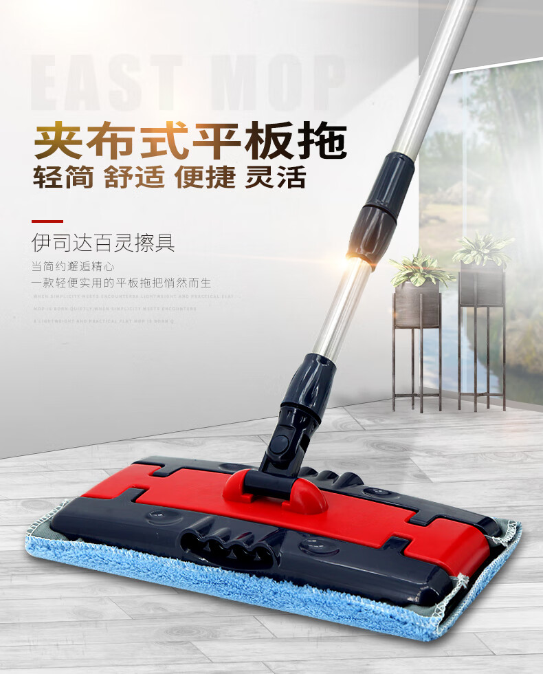 伊司达(EAST)拖把夹板式平板拖把木地板拖布墩布 可夹旧毛巾 一个装