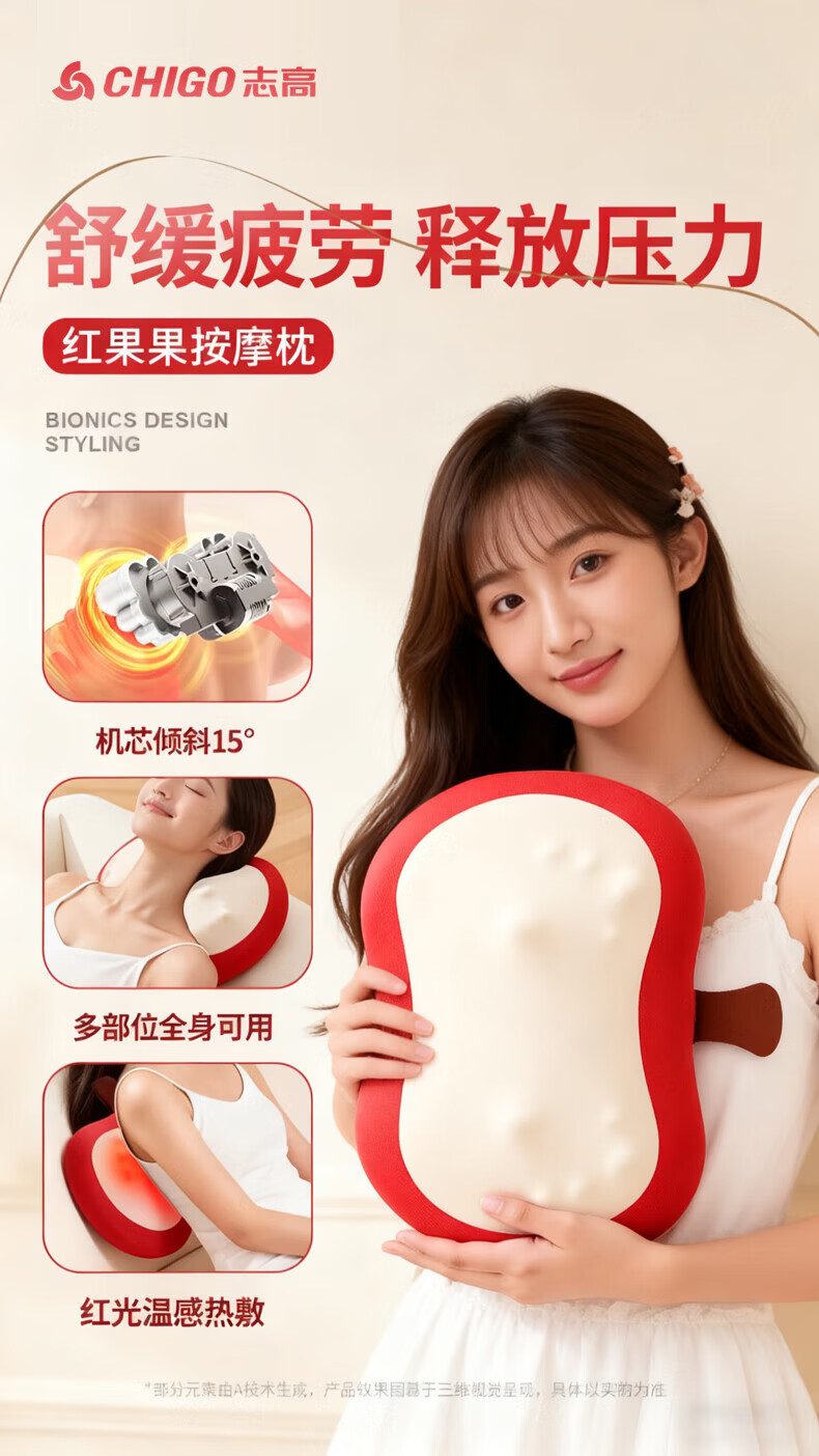 志高圣诞礼物颈椎按摩器全自动肩颈按摩枕头腰部按摩仪背部揉捏靠垫送父母长辈朋友礼品实用 绿色彩盒插电款【揉捏推拿+恒温加热】