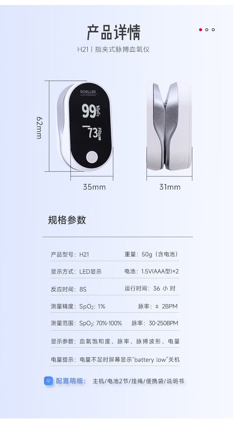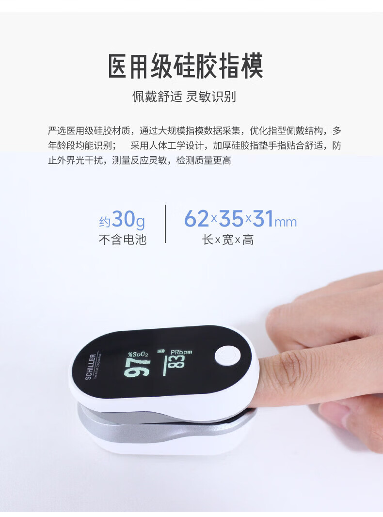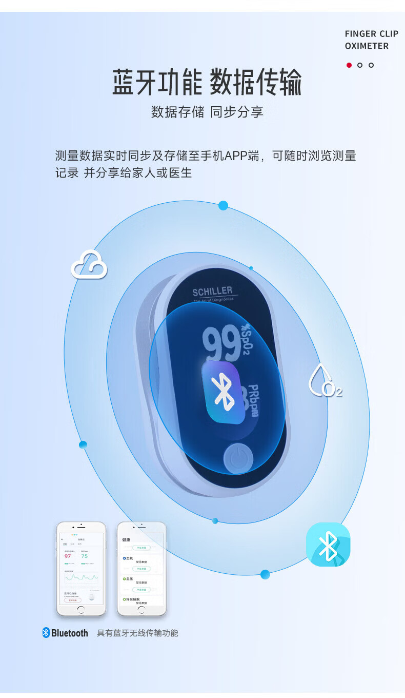 席勒指夹式脉搏血氧仪 脉搏心率 血氧仪家用医用便携血氧仪 华思H21【蓝牙传输】