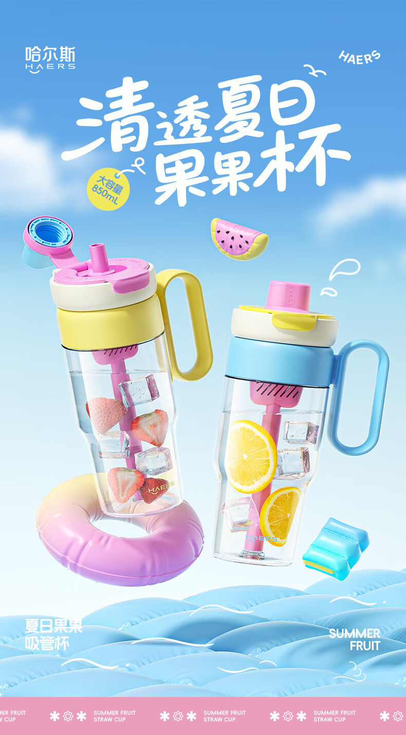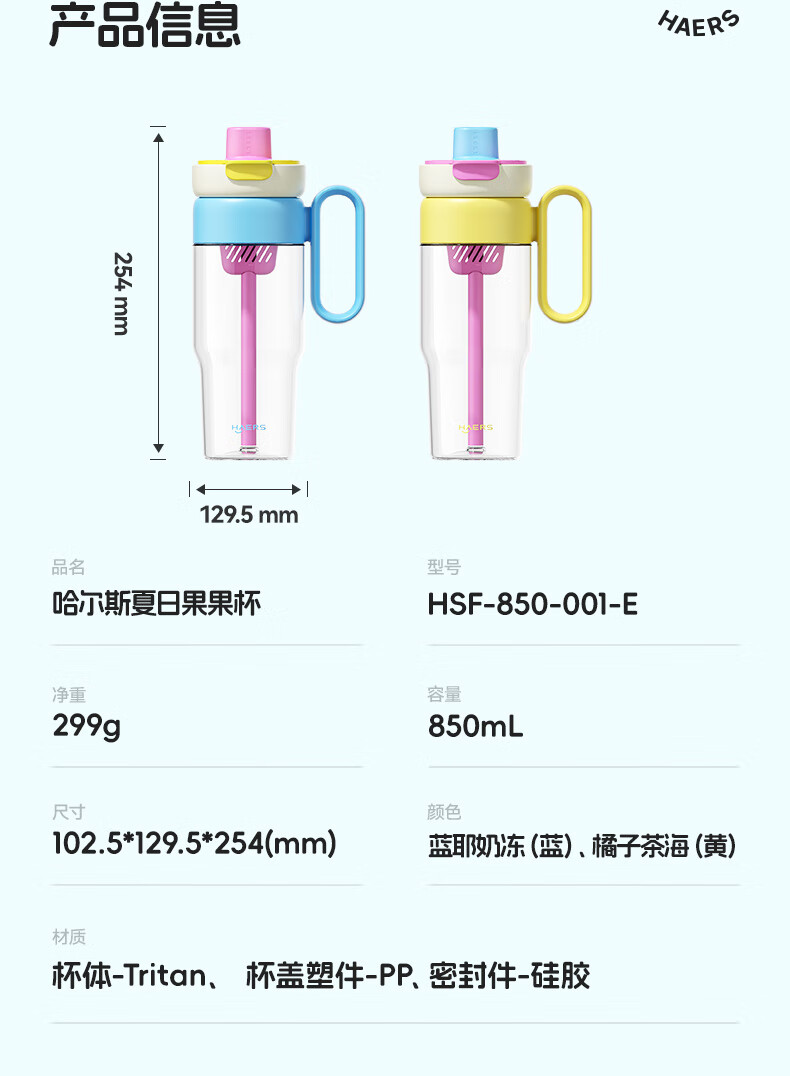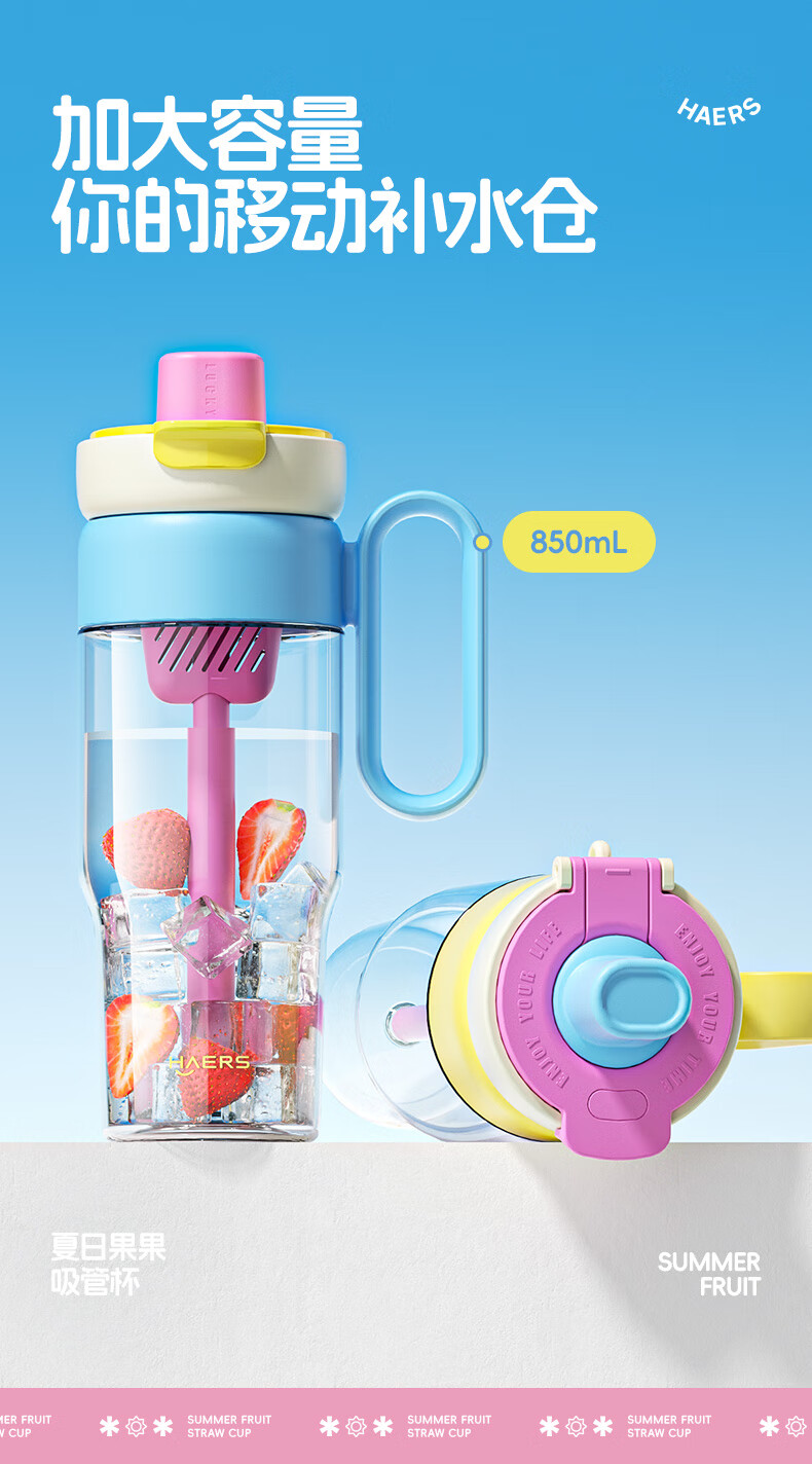 哈尔斯塑料杯耐高温食品级杯子泡茶水分离大容量高颜值tritan吸管杯女t 橘子茶海850ml