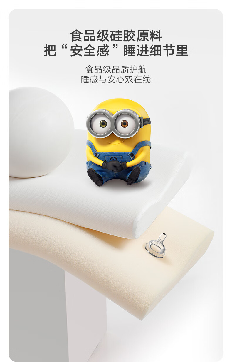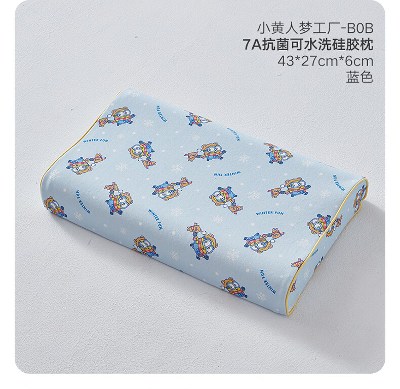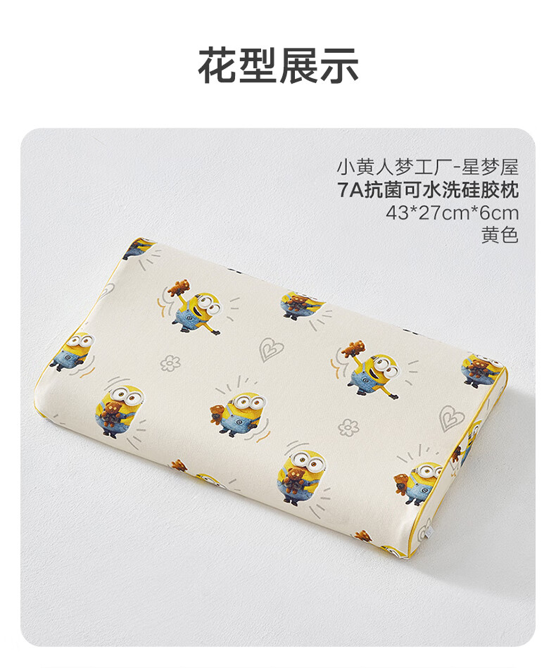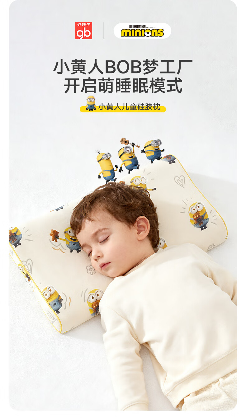 好孩子(gb)儿童枕头3-6岁可水洗护颈硅胶枕芯小黄人枕套7A抗菌枕头礼盒装