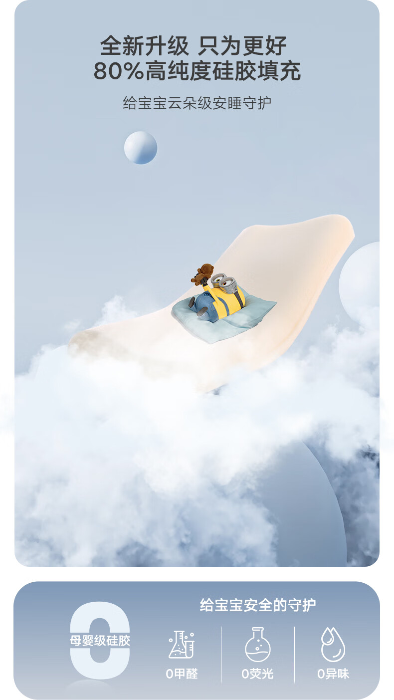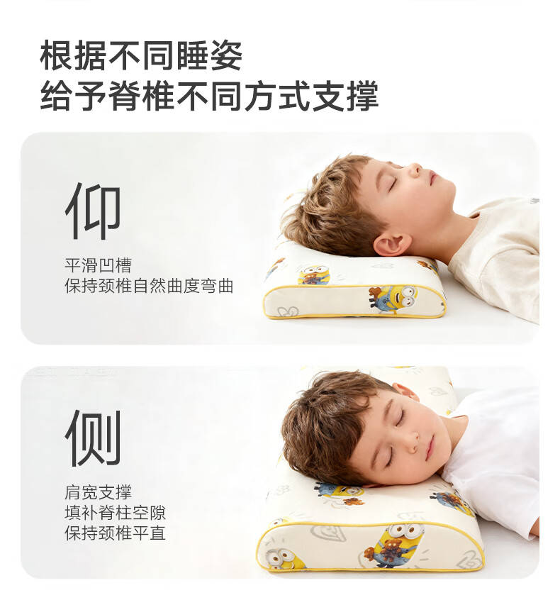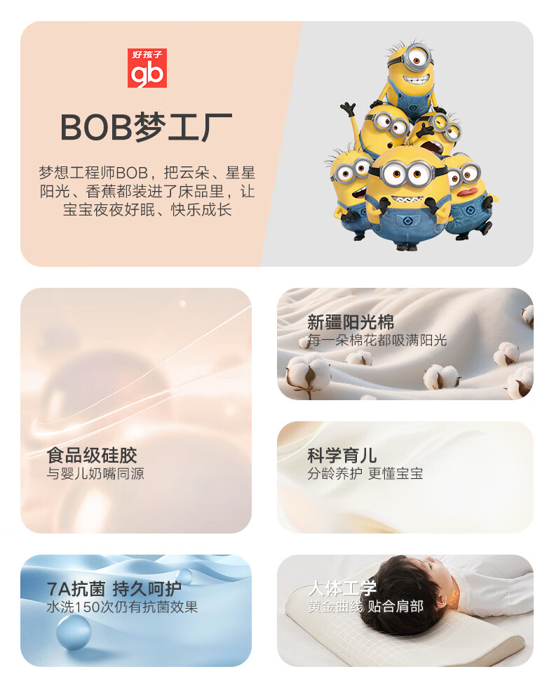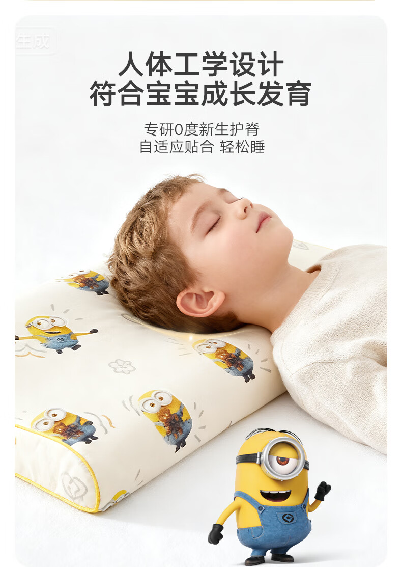 好孩子(gb)儿童枕头3-6岁可水洗护颈硅胶枕芯小黄人枕套7A抗菌枕头礼盒装