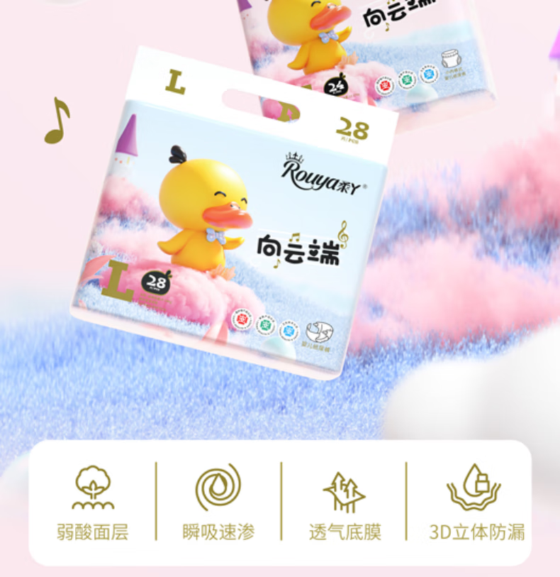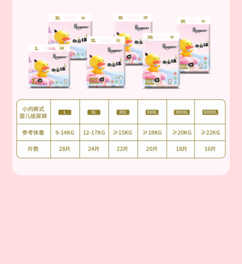 柔丫向云端拉拉裤XXL码22片弱酸温和亲肤超薄柔软透气干爽尿不湿