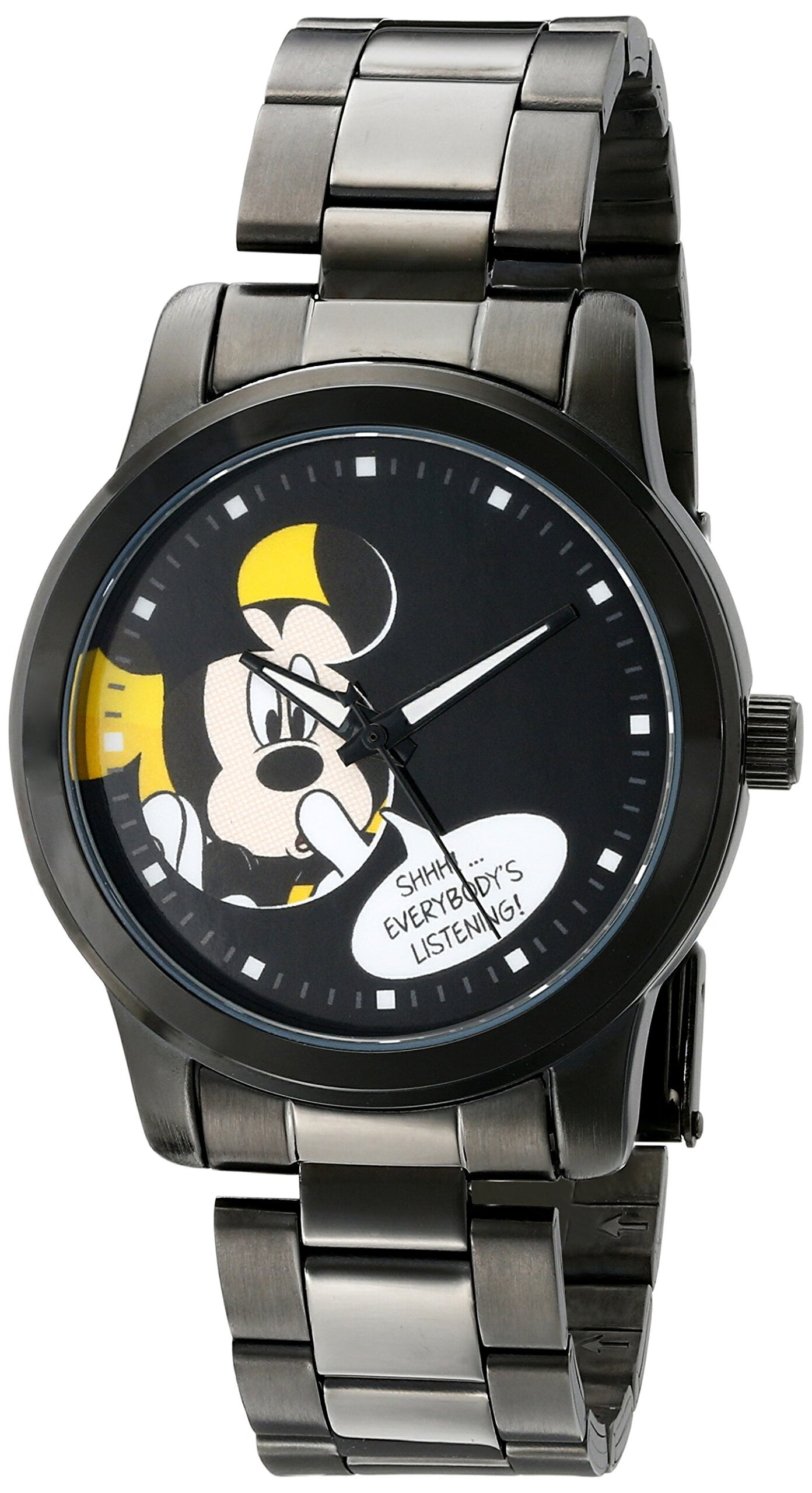 迪士尼(Disney) 米奇老鼠男士手表 日本石英机芯 38mm表盘 防水运动 黑色、黑色金属